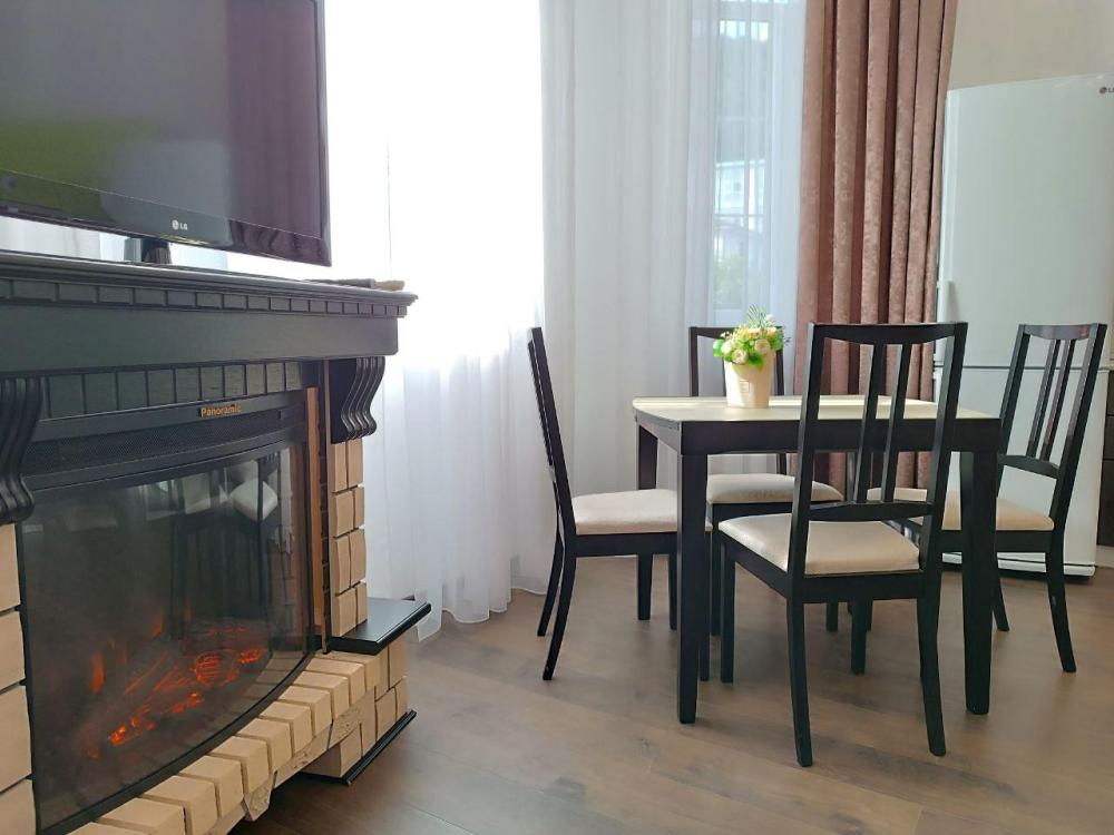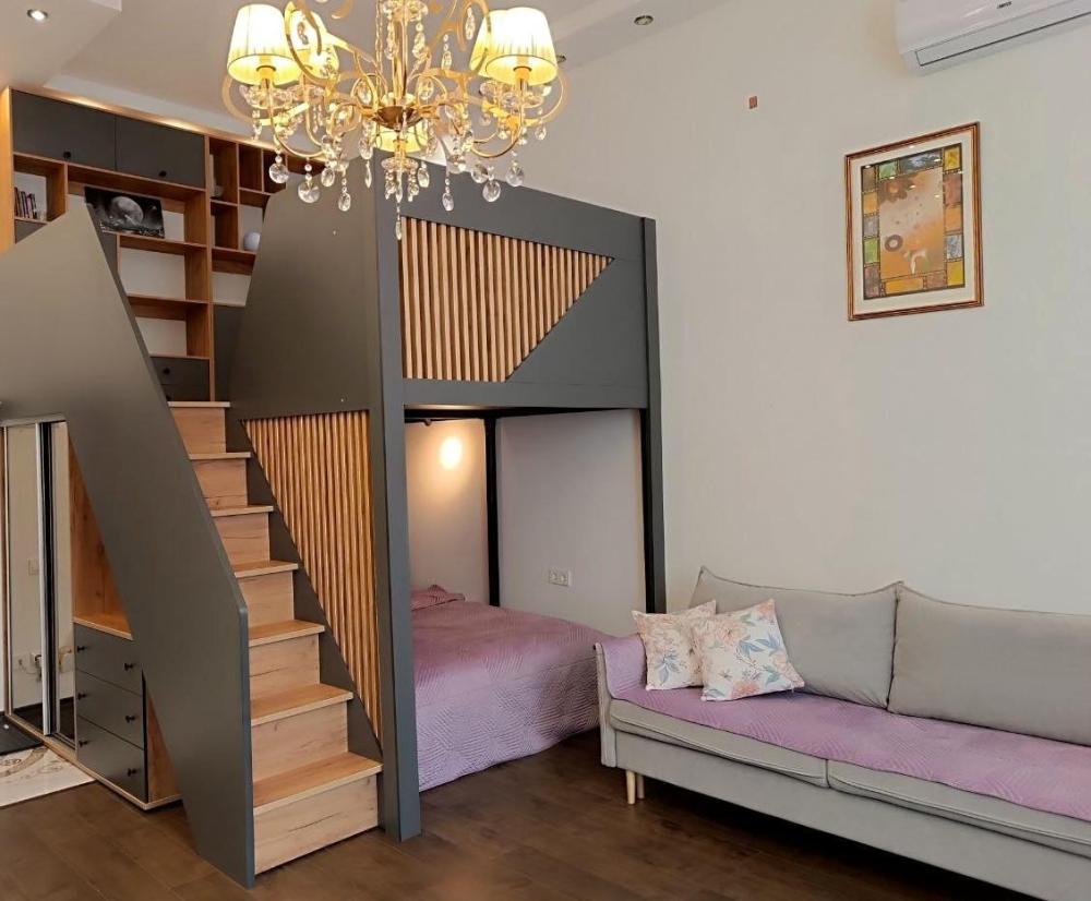 Продуманный интерьер для комфортного проживания. В квартире: двуспальная кровать, уютный диван у биокамина, полноценная кухня со всей необходимой техникой и стильной обеденной группой, уединенная и вдохновляющая рабочая зона на мезонине, санузел с душевой кабиной.
