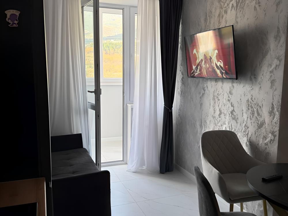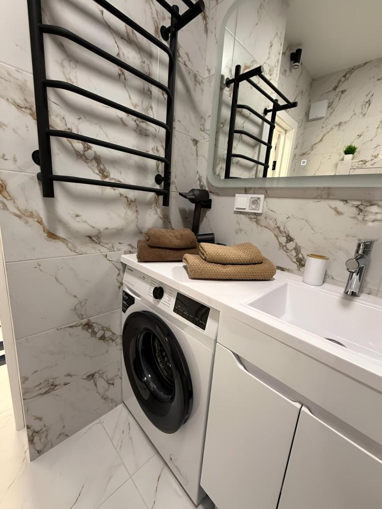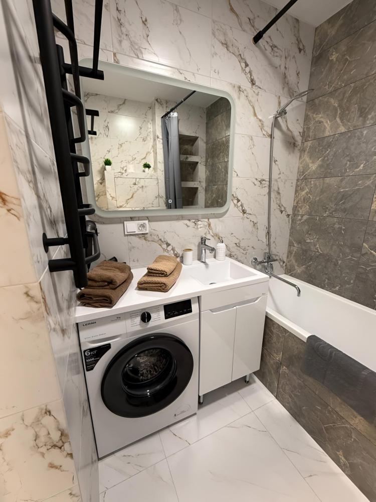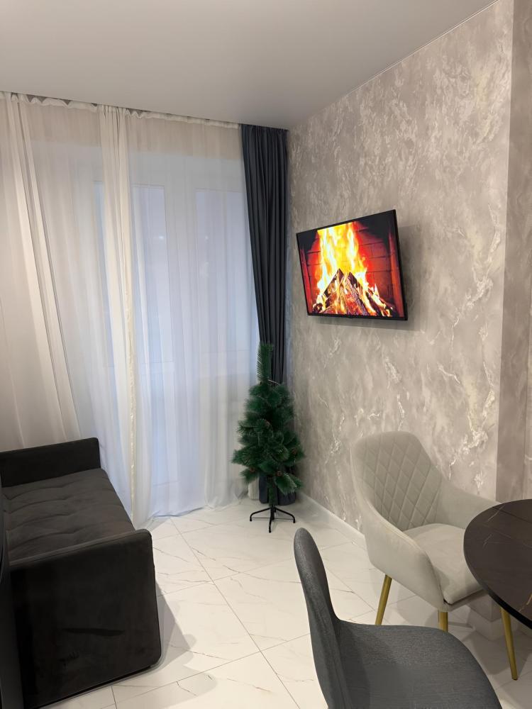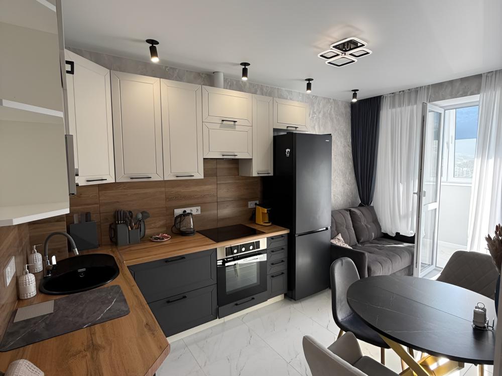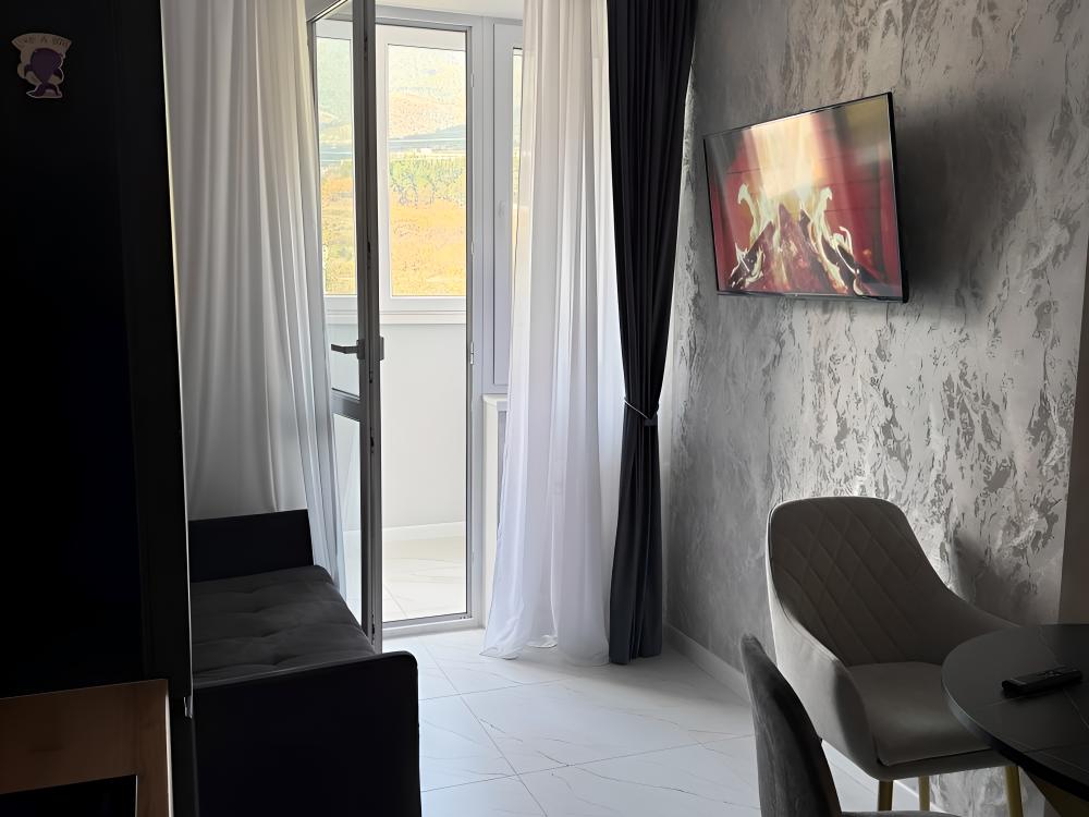 Два раскладных дивана. Полностью оборудованная кухня с техникой: холодильник, плита, микроволновая печь, чайник, посуда, обеденная зона. Телевизор, кондиционер, скоростной беспроводной интернет. Ванная комната с душем, стиральная машина, гигиенические принадлежности. Предоставляется постельное белье и полотенца.