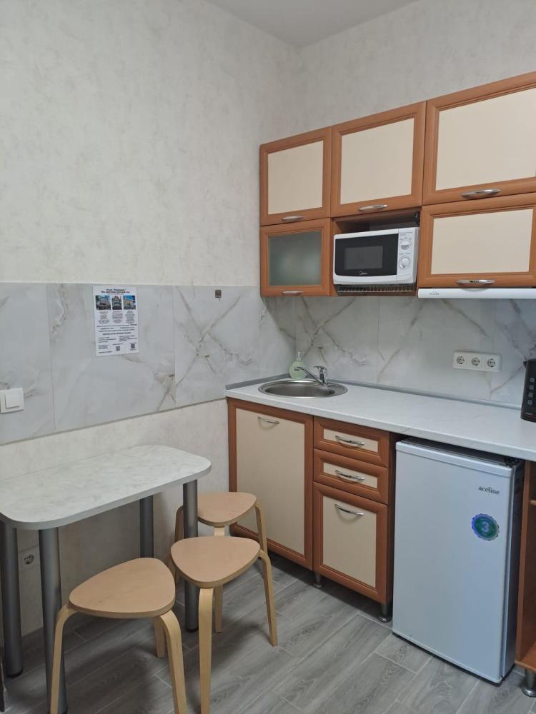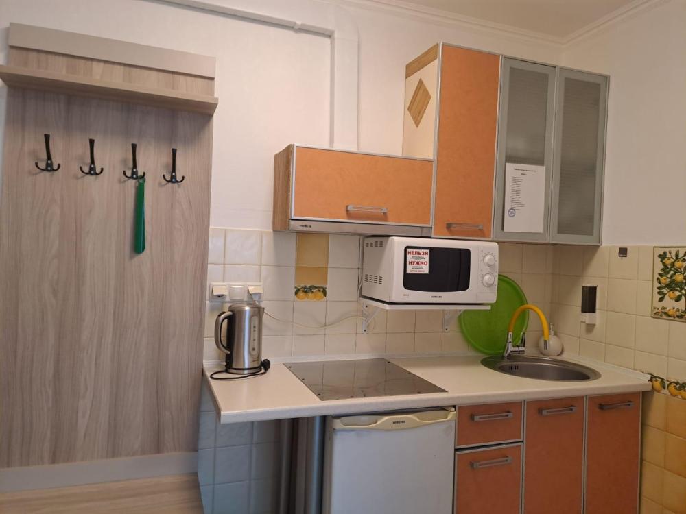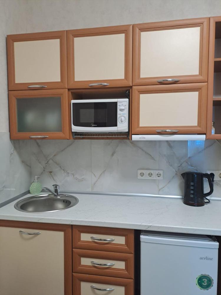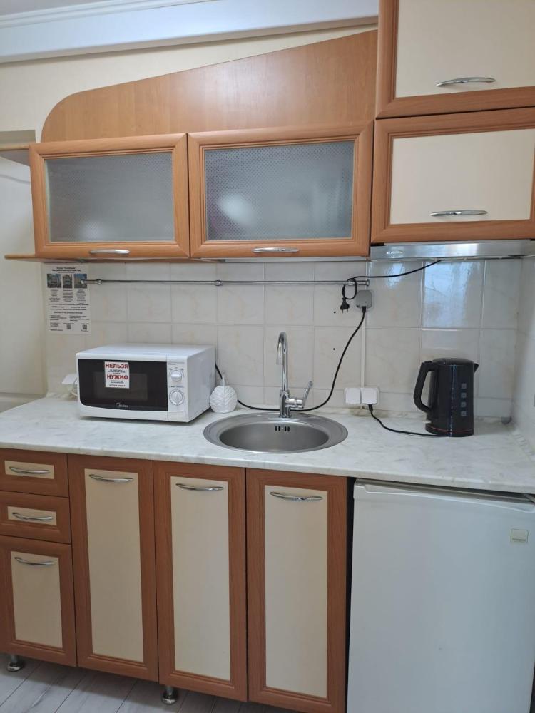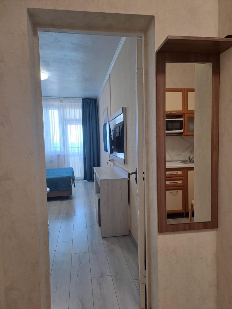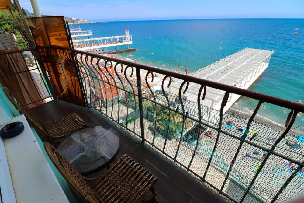Однокомнатные апартаменты с балконом и видом на море, в которых могут проживать до 3-х гостей. В распоряжении гостей 1 комната двуспальной кроватью, кресло-кроватью, ванная комната с душем, туалет. К услугам гостей: одноразовые средства личной гигиены, фен, постельное белье, полотенца, широкоформатный телевизор с кабельными каналами, трюмо с зеркалом, шкаф, кондиционер, автономное отоплением, wi-fi. В апартаментах есть мини-кухня: стол, табуретки, эл. чайник, микроволновая печь, холодильник, столовые приборы. Есть балкон со столом и стульями с видом на море. Апартаменты находятся рядом с Массандровским пляжем. В пешей доступности кафе и рестораны, супермаркет, продуктовые магазины, овощные лавки.