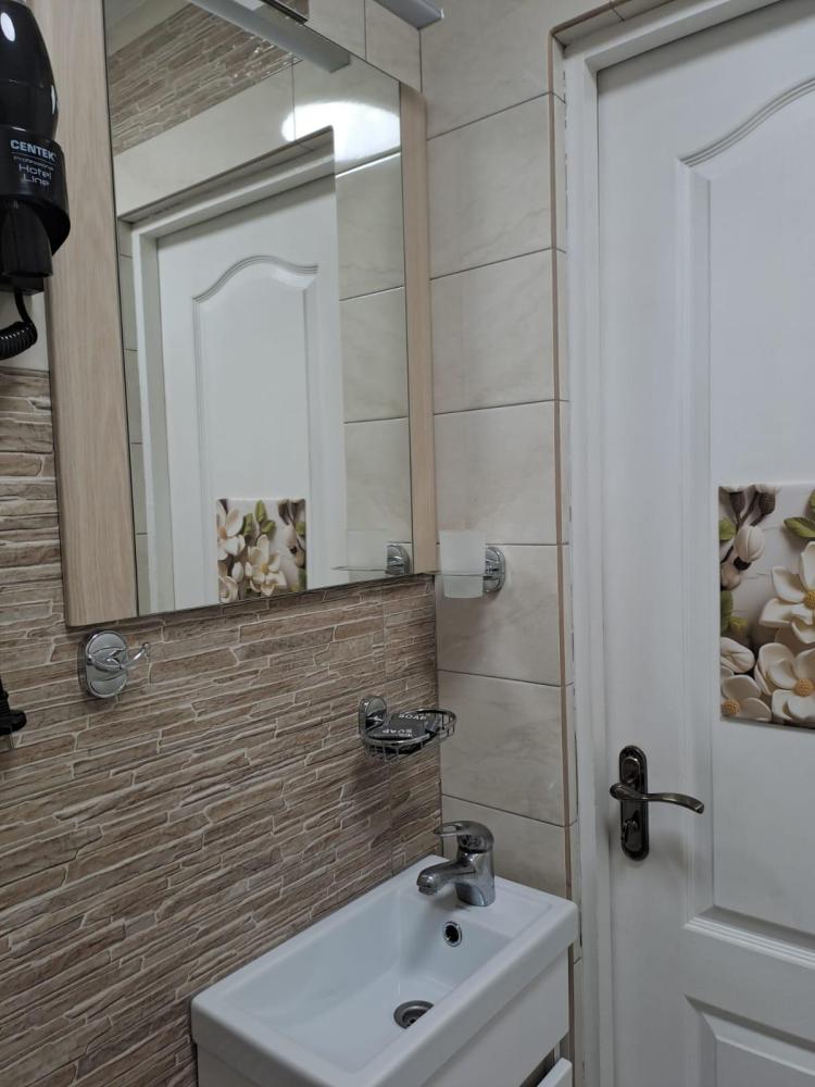 Двухкомнатные апартаменты с балконом и видом на море, в которых могут проживать 4 гостя +1 доп. место. В распоряжении гостей 2 комнаты, ванная комната с душем, туалет. К услугам гостей: двуспальная кровать с прикроватной тумбой, диван-кровать на 2 места и кресло-кровать на 1 место, фен, полотенца, одноразовые средства личной гигиены, трюмо с зеркалом, журнальный столик, постельное белье, 2 телевизора с плоским экраном и кабельными каналами, шкаф, 2 кондиционера, автономное отопление, wi-fi. В апартаментах есть мини-кухня: выдвижной обеденный столик, табуретки, эл. чайник, микроволновая печь, холодильник, столовые приборы. Есть балкон со столом и стульями с видом на море. Апартаменты находятся рядом с Массандровским пляжем. В пешей доступности кафе и рестораны, супермаркет, продуктовые магазины, овощные лавки.