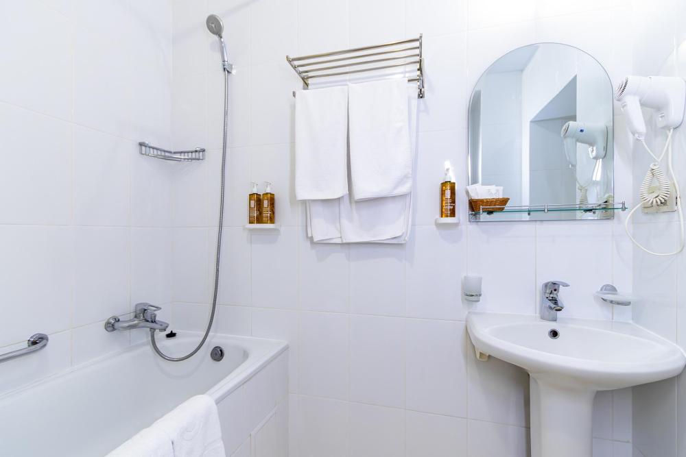 Однокомнатный номер 1 категории. В номере 1 двуспальная или 2 односпальные кровати, санузел с душем или ванной. Led TV, мини-холодильник, кондиционер, сейф, фен, телефон, халаты (предоставляются за дополнительную стоимость). Номера без балкона. Вид на северную сторону.