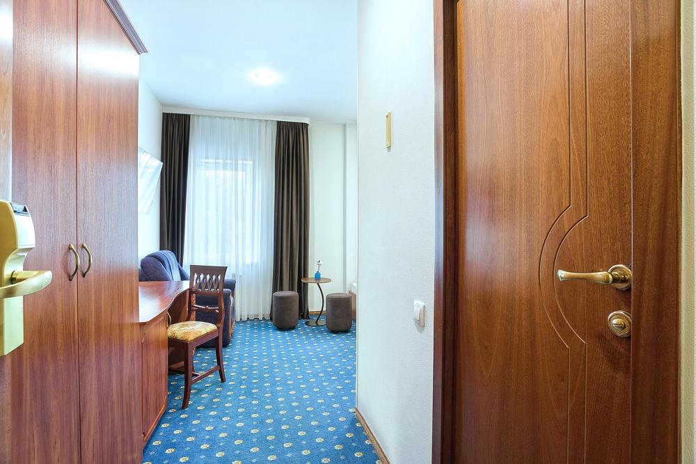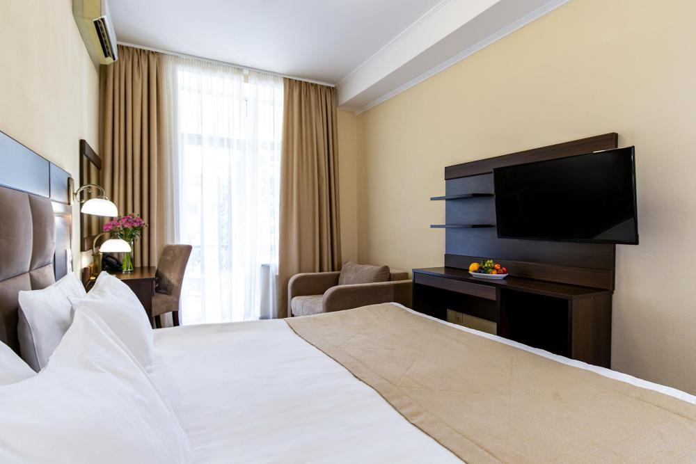 Однокомнатный номер 1 категории. В номере 1 двуспальная или 2 односпальные кровати и санузел с ванной. Led TV, мини-холодильник, кондиционер, сейф, фен, телефон, чайная станция, халат и тапочки. Для большего комфорта номер дополняют кресло или диван. Номер без балкона.