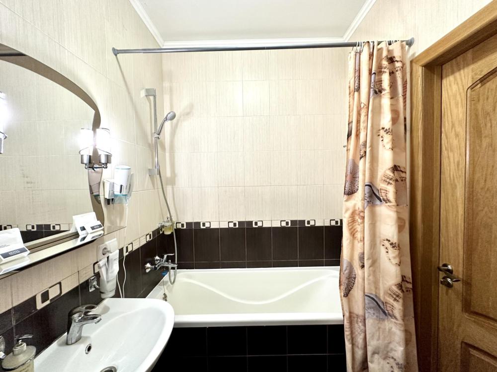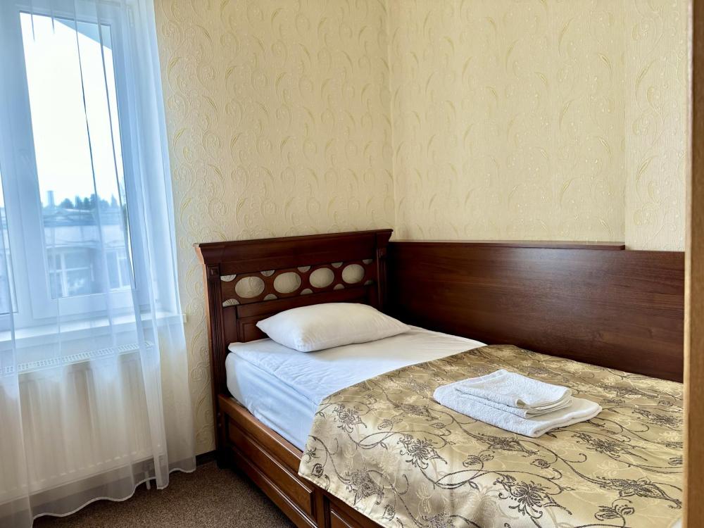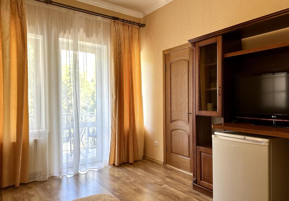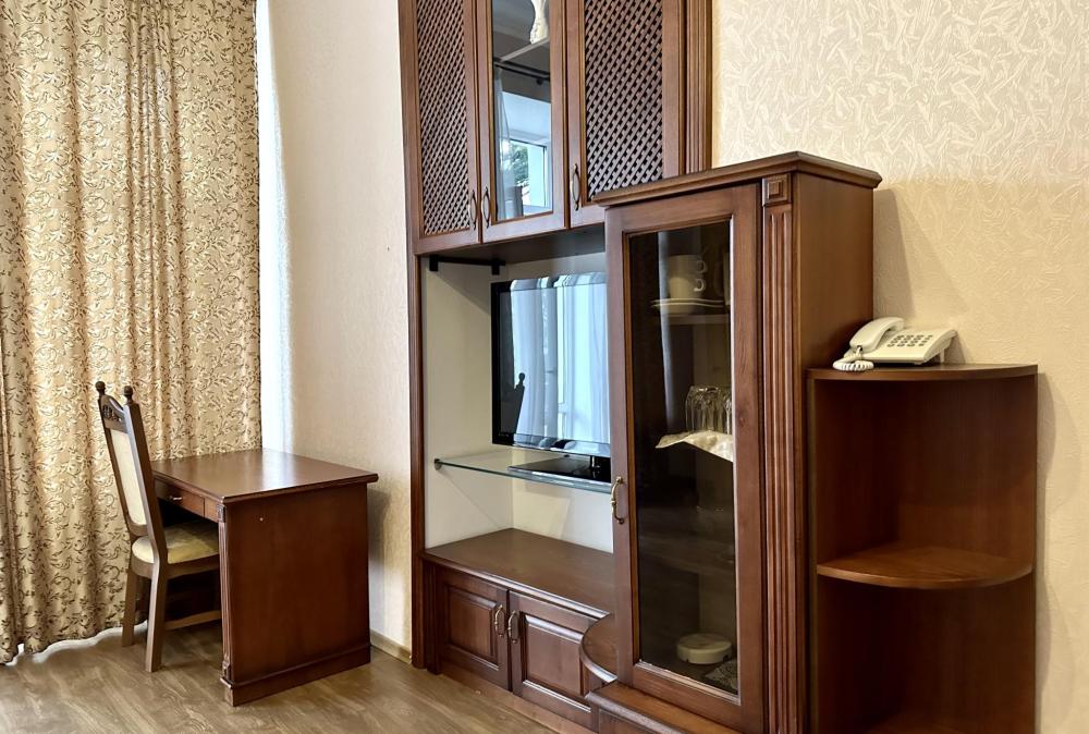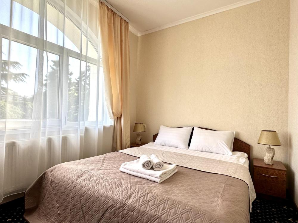 Однокомнатные номера с одной двуспальной кроватью и балконом. В номере комплект мебели, постельное белье, полотенца, санузел с душем.