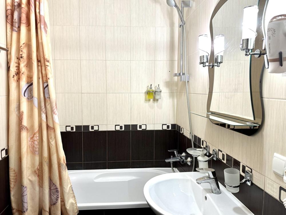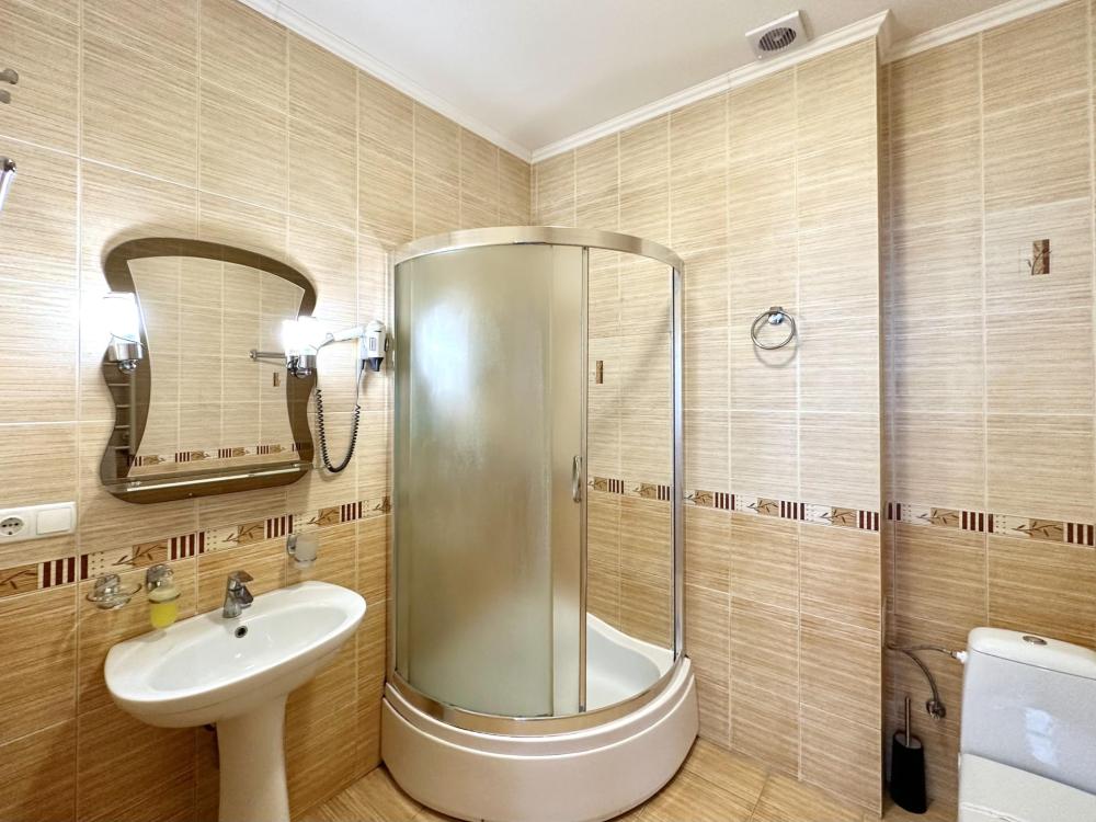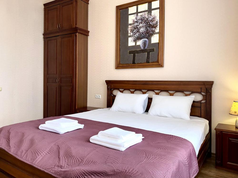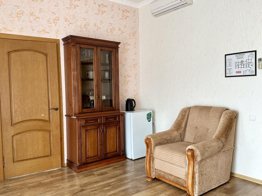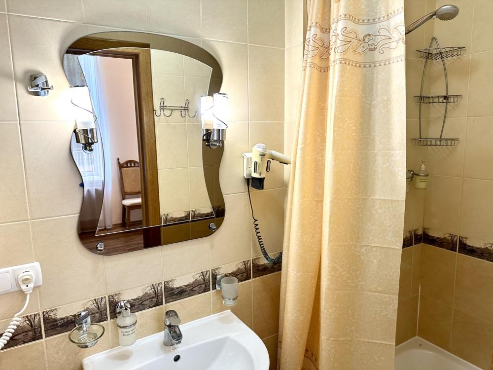 Однокомнатные номера с одной двуспальной кроватью и балконом. В номере комплект мебели, постельное белье, полотенца, санузел с душем.
