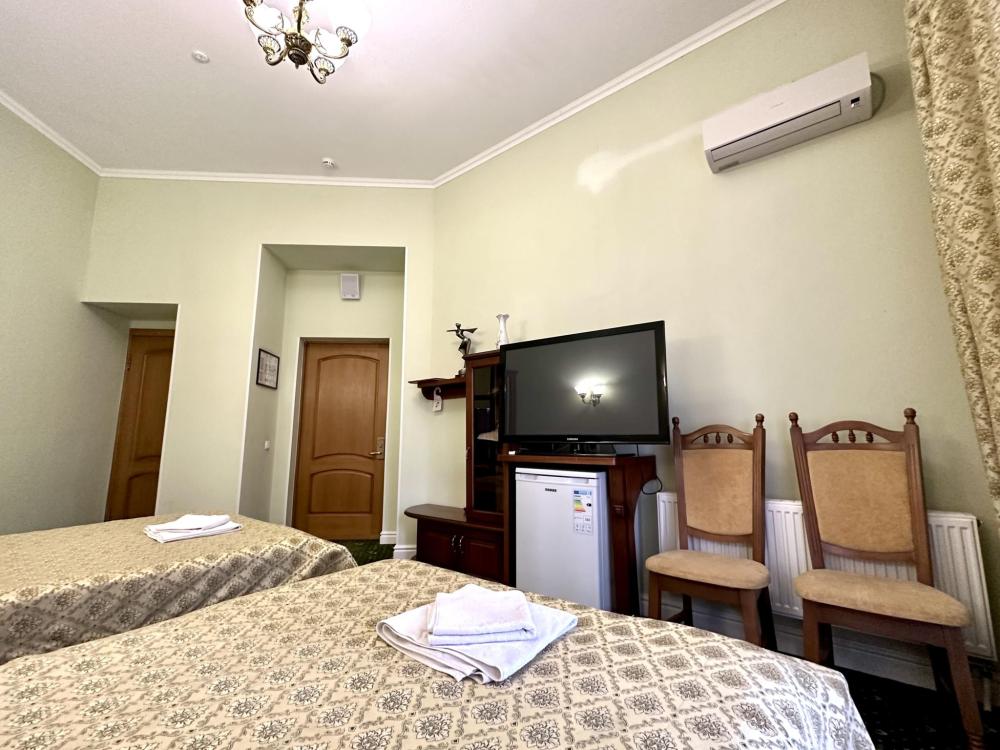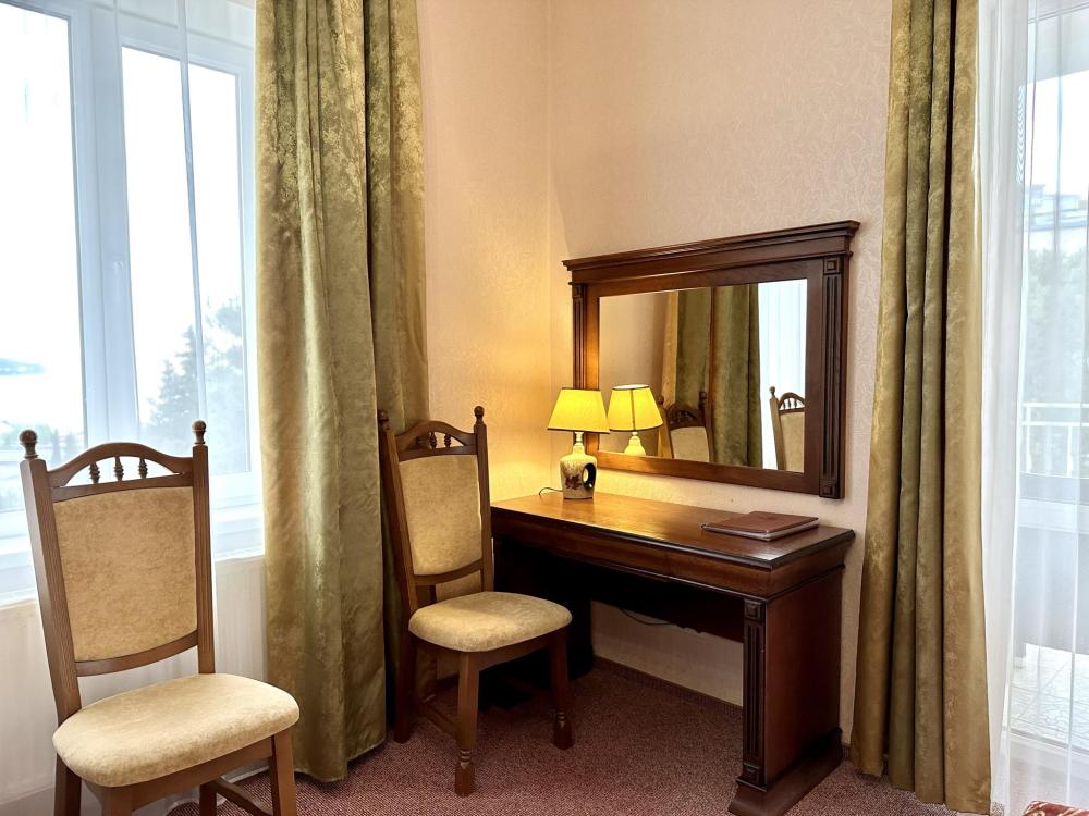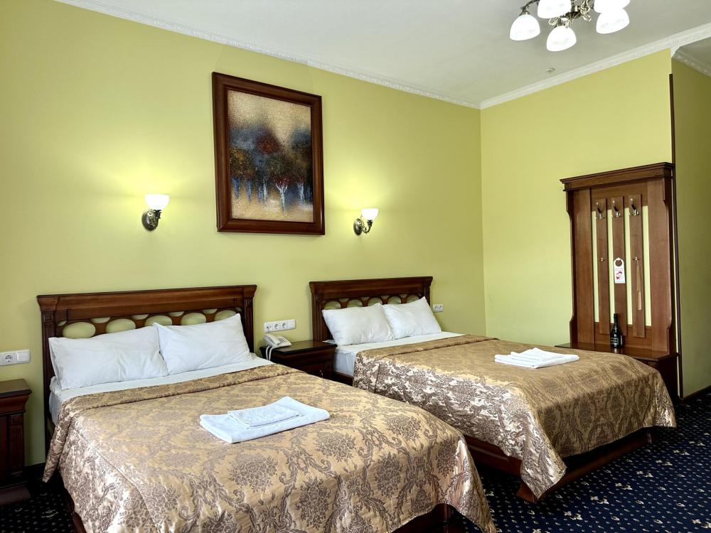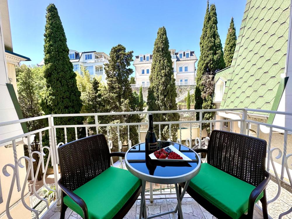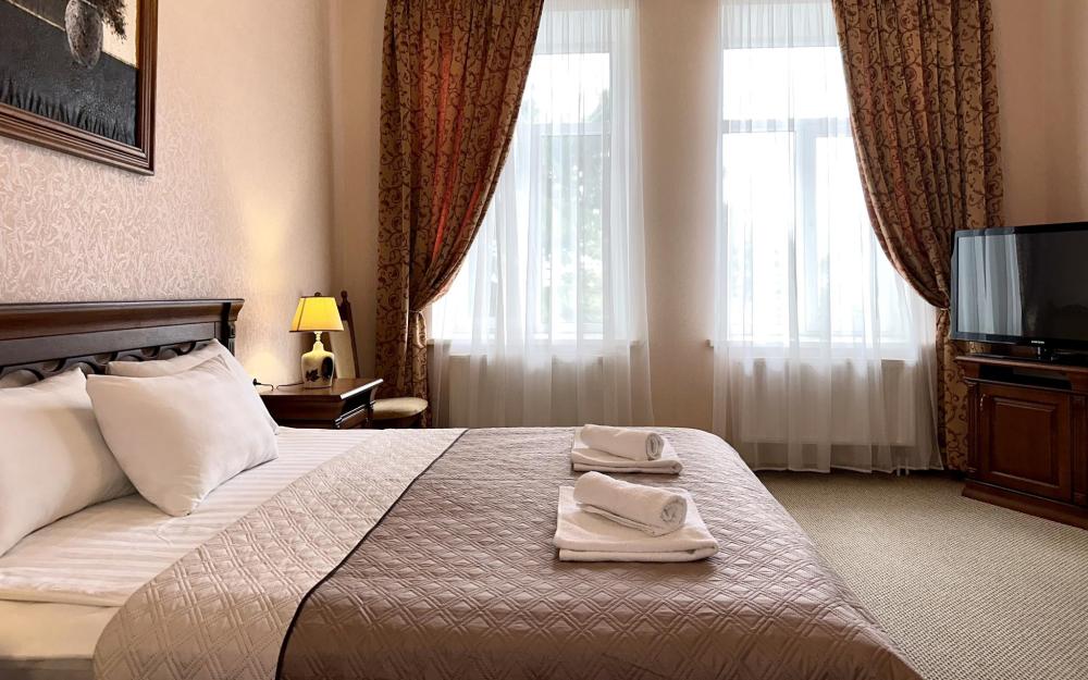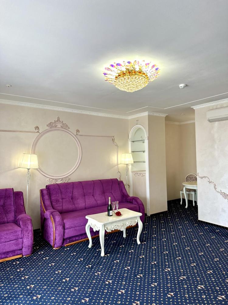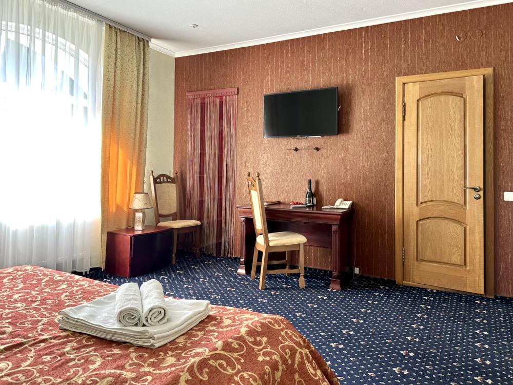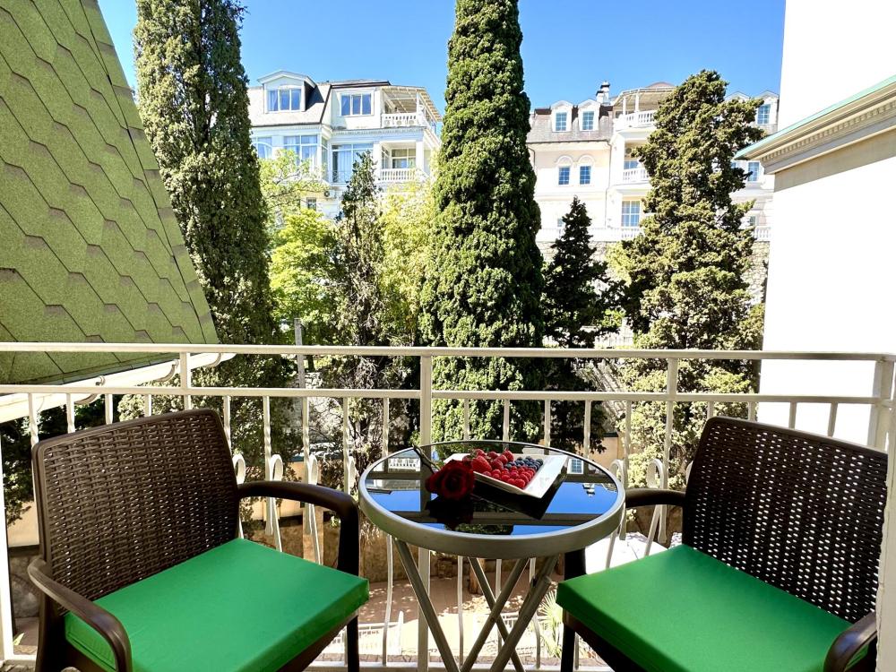 Номер в классическом стиле. В номере есть: wi-fi, дополнительное место — кровать, кресло-кровать или диван, телевизор с плоским экраном, кондиционер, халат, фен, тапочки, косметический набор для душа, холодильник, мини-бар, пляжные полотенца, чайник, чайный набор.
