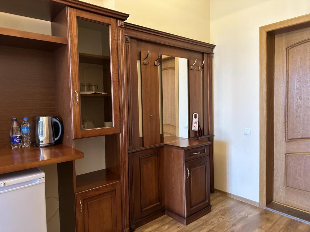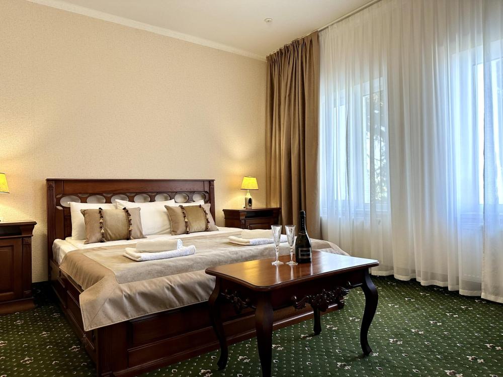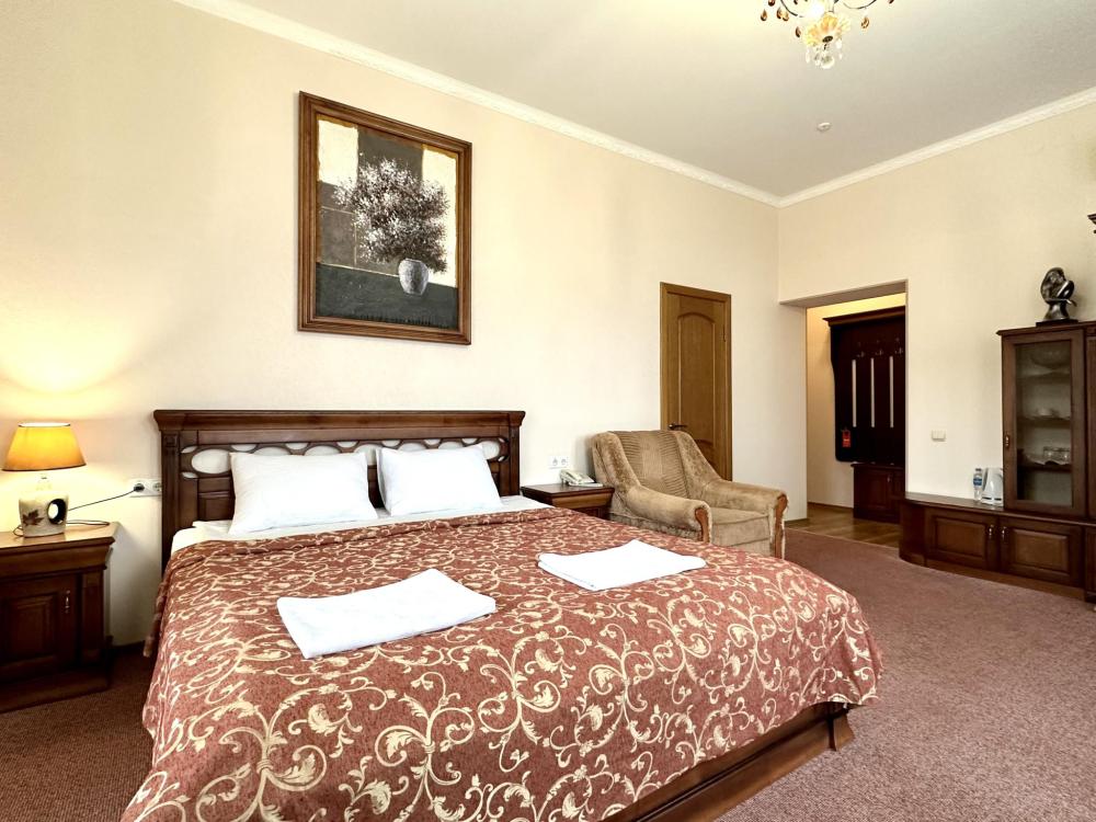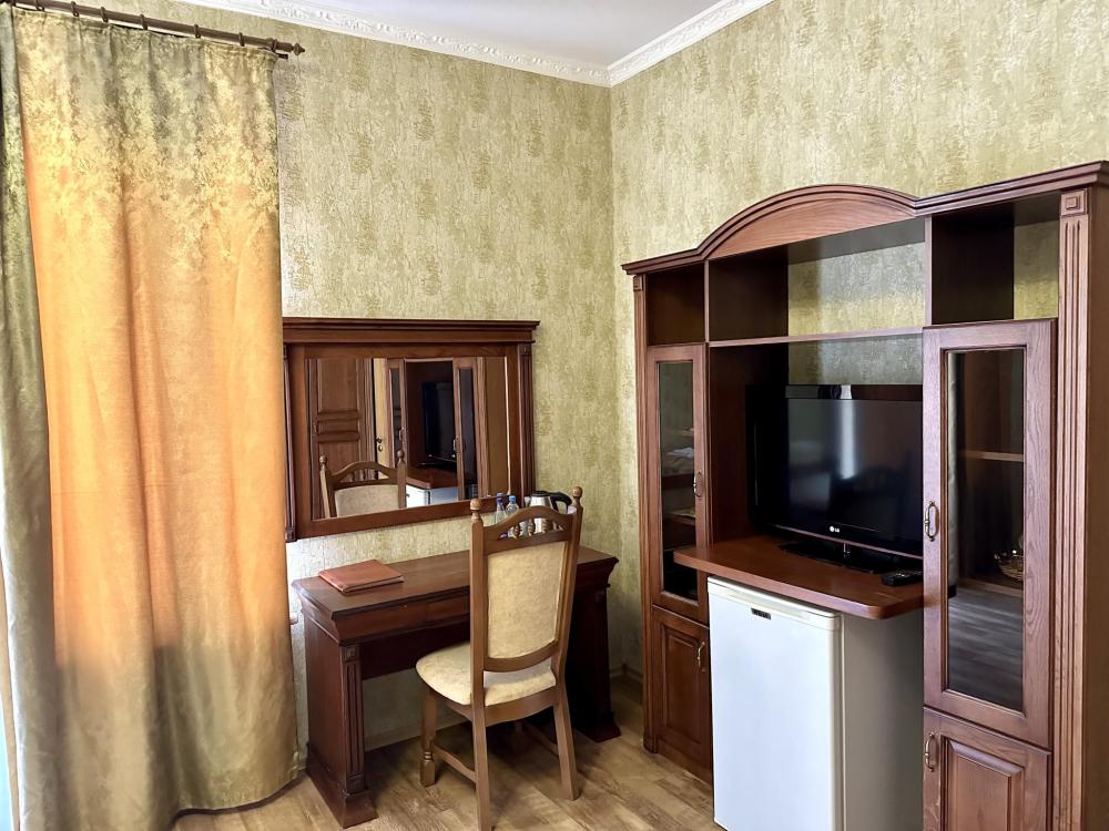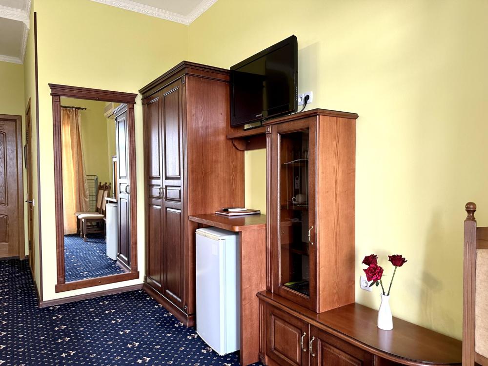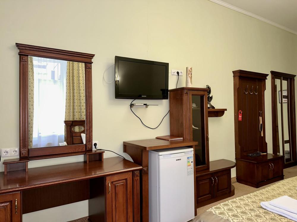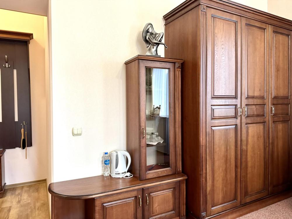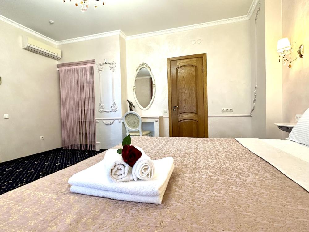 Номер в классическом стиле. В номере есть: wi-fi, дополнительное место — кровать, кресло-кровать или диван, телевизор с плоским экраном, кондиционер, халат, фен, тапочки, косметический набор для душа, холодильник, мини-бар, пляжные полотенца, чайник, чайный набор.