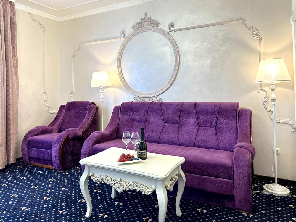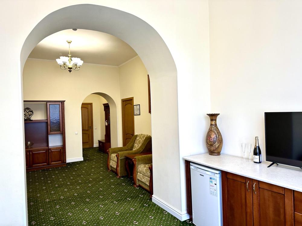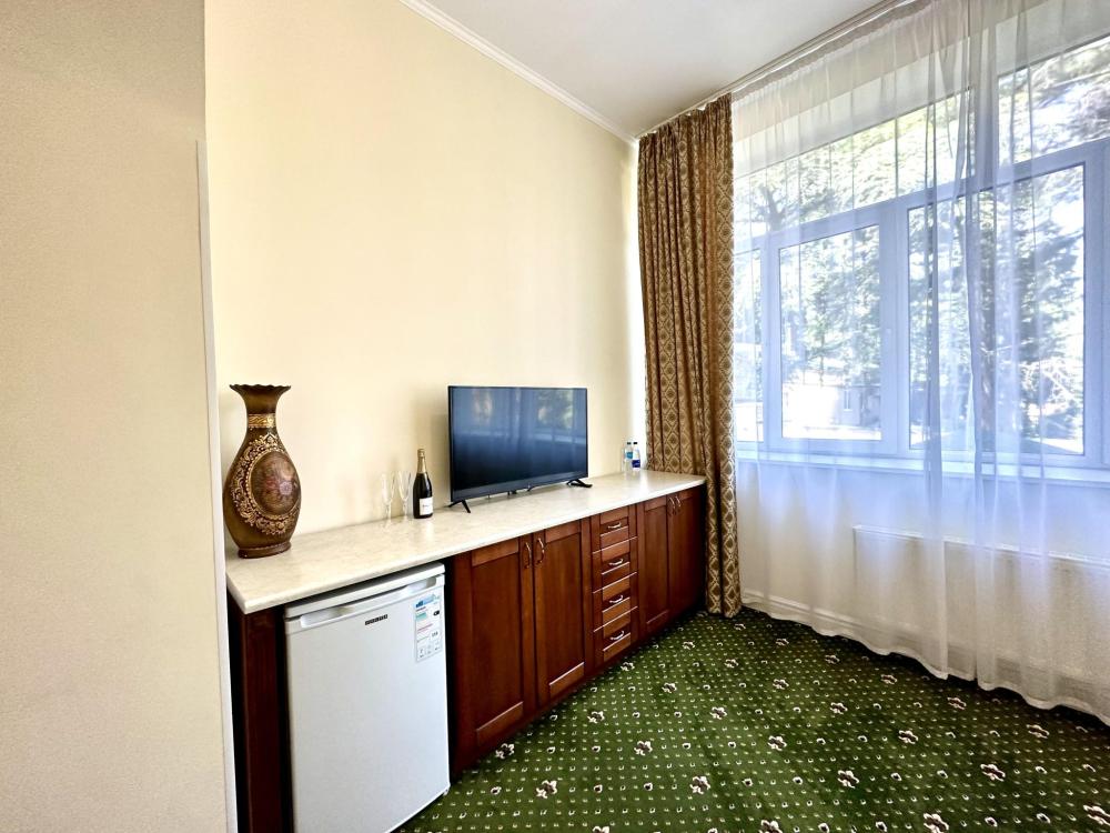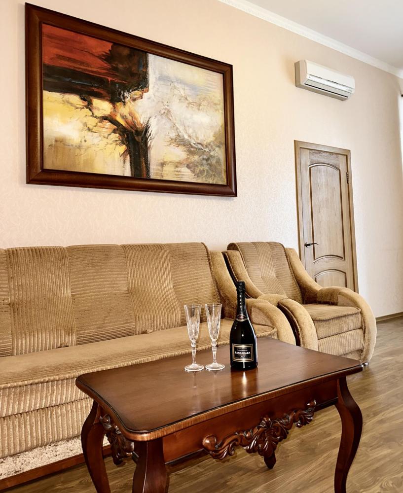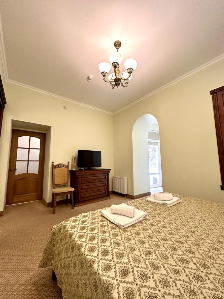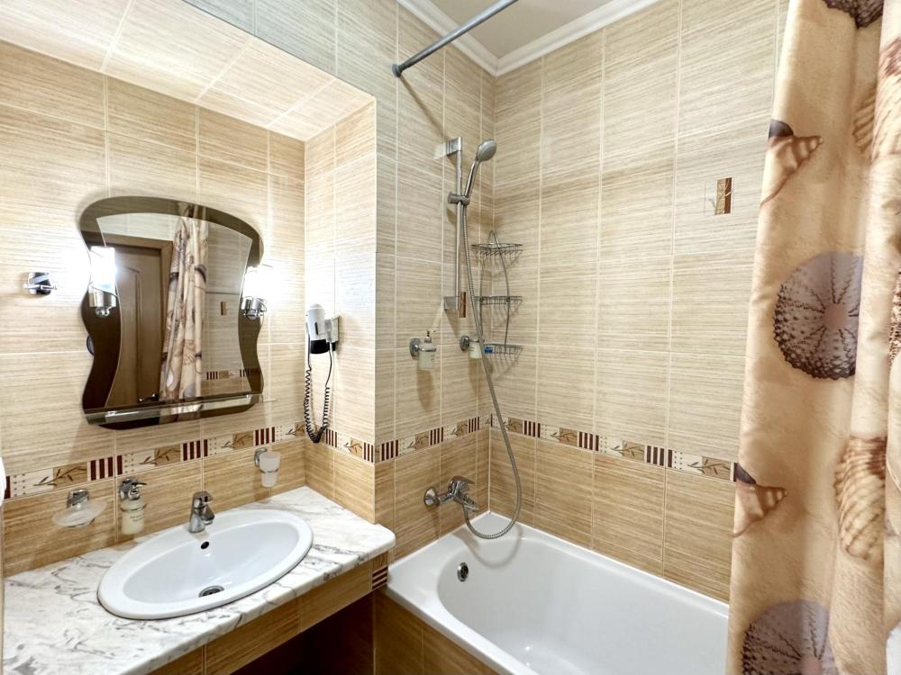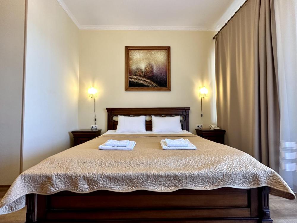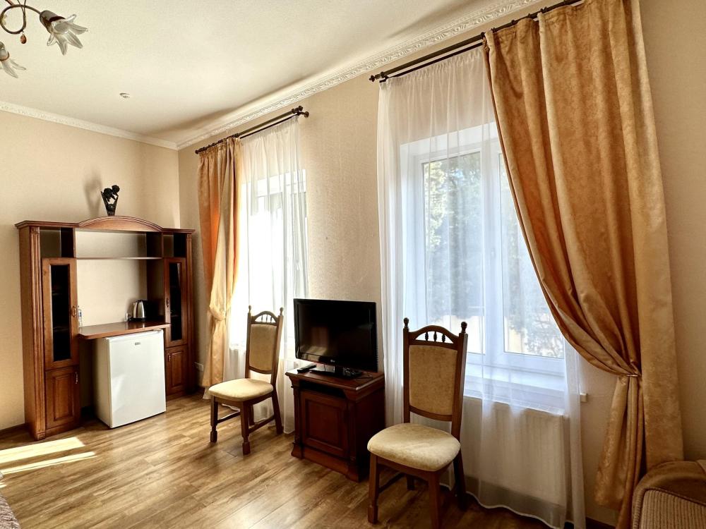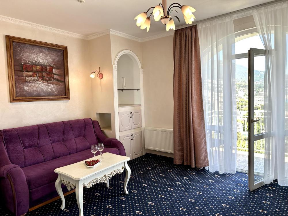 Номер в классическом стиле. В номере есть: wi-fi, дополнительное место — кровать, кресло-кровать или диван, телевизор с плоским экраном, кондиционер, халат, фен, тапочки, косметический набор для душа, холодильник, мини-бар, пляжные полотенца, чайник, чайный набор.