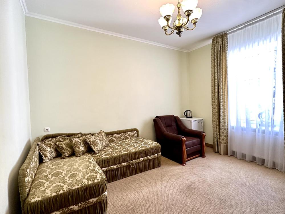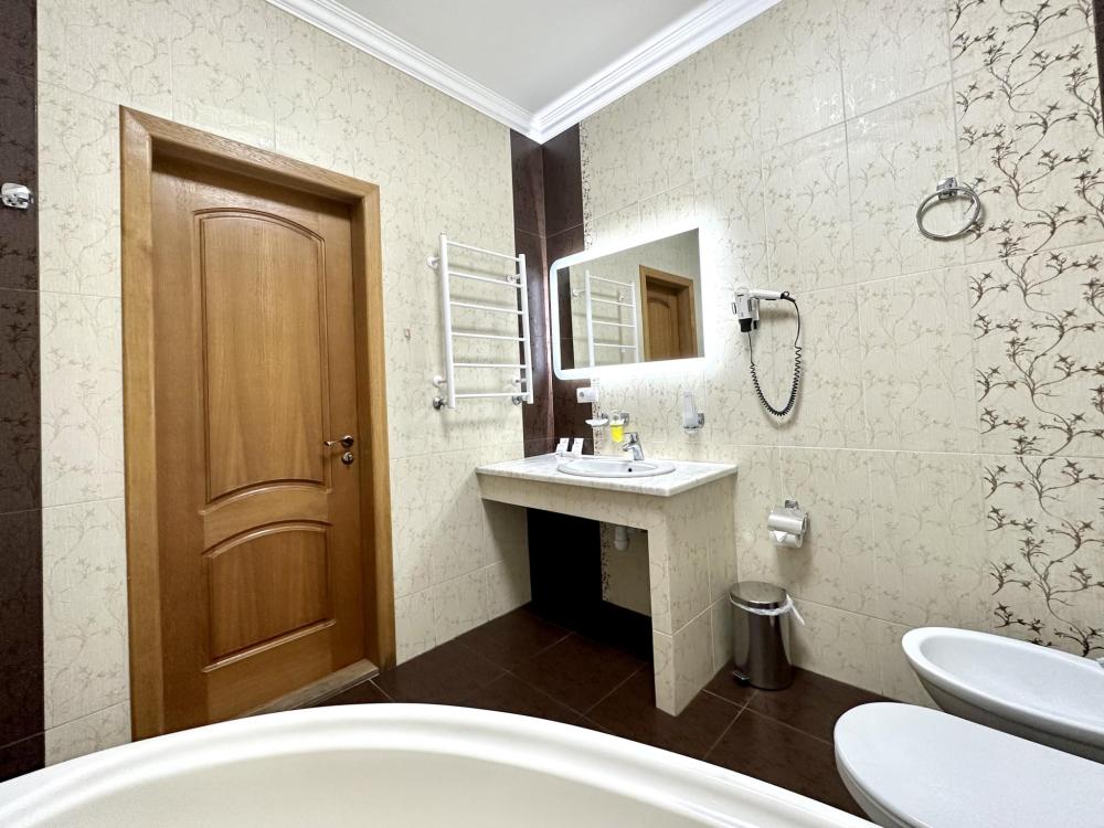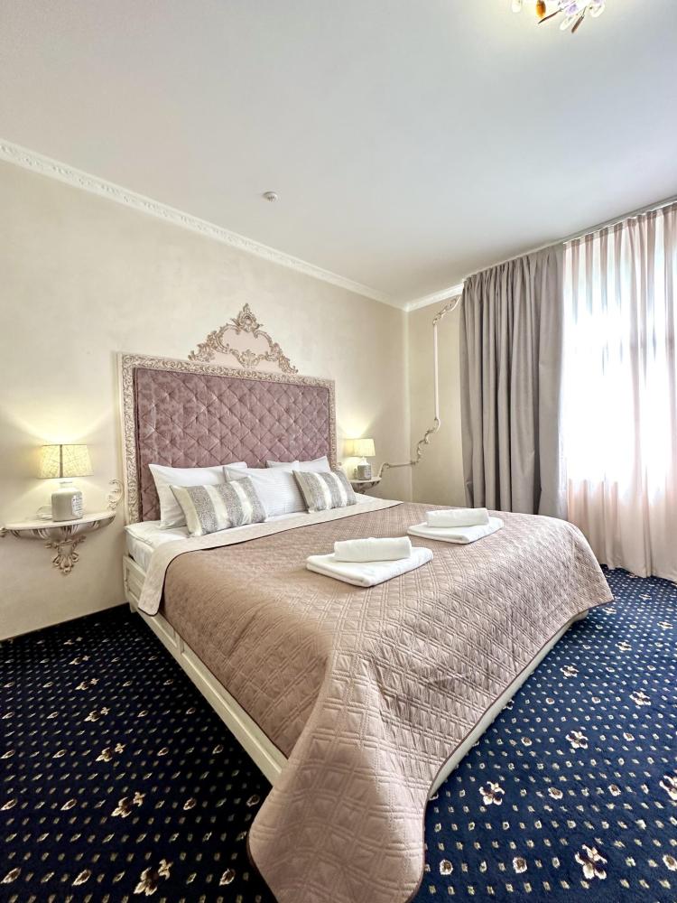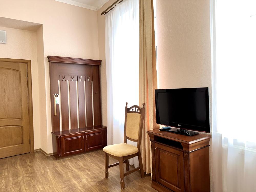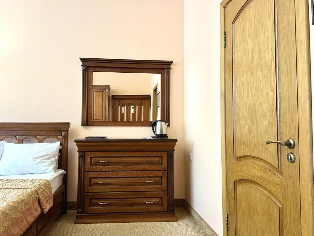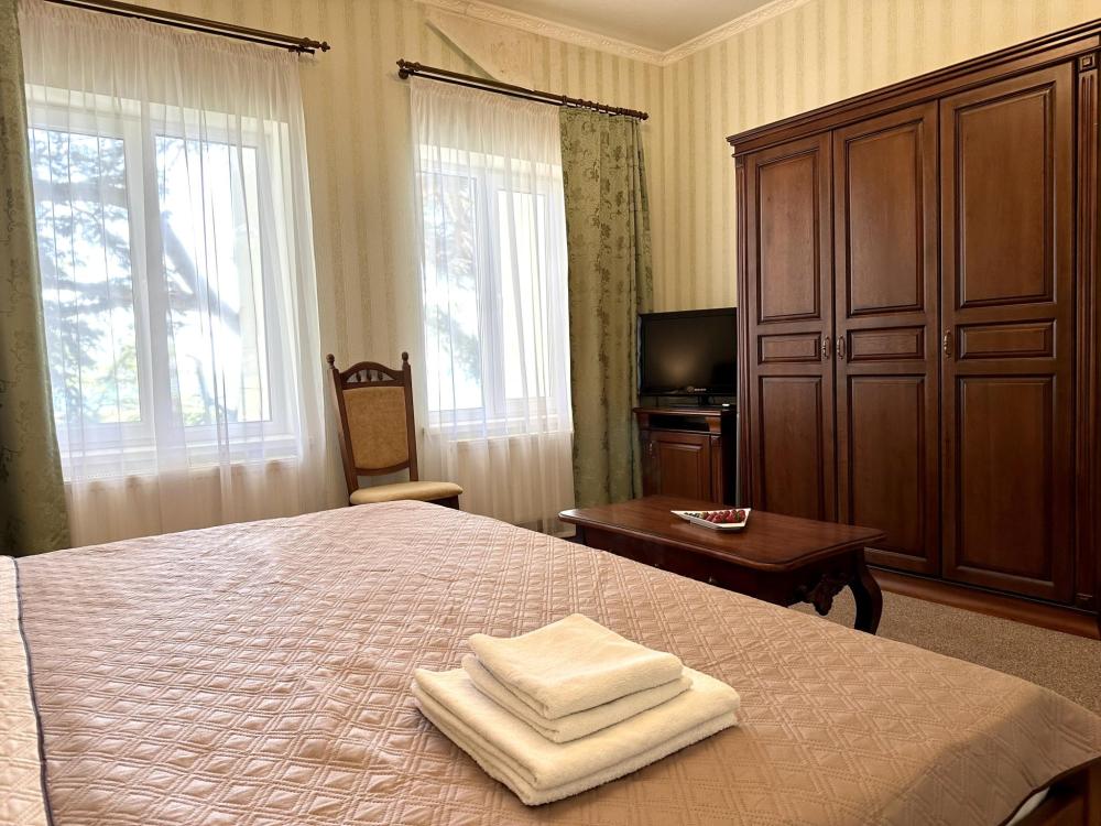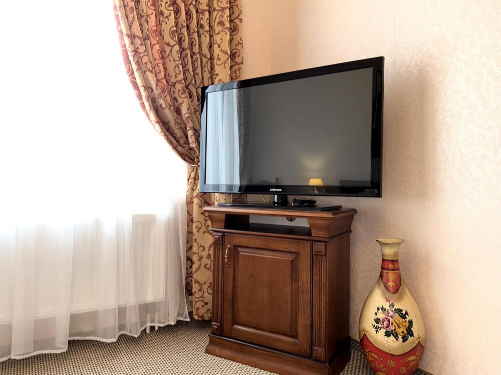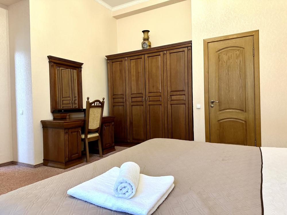 Номер в классическом стиле. В номере есть: wi-fi, дополнительное место — кровать, кресло-кровать или диван, телевизор с плоским экраном, кондиционер, халат, фен, тапочки, косметический набор для душа, холодильник, мини-бар, пляжные полотенца, чайник, чайный набор.