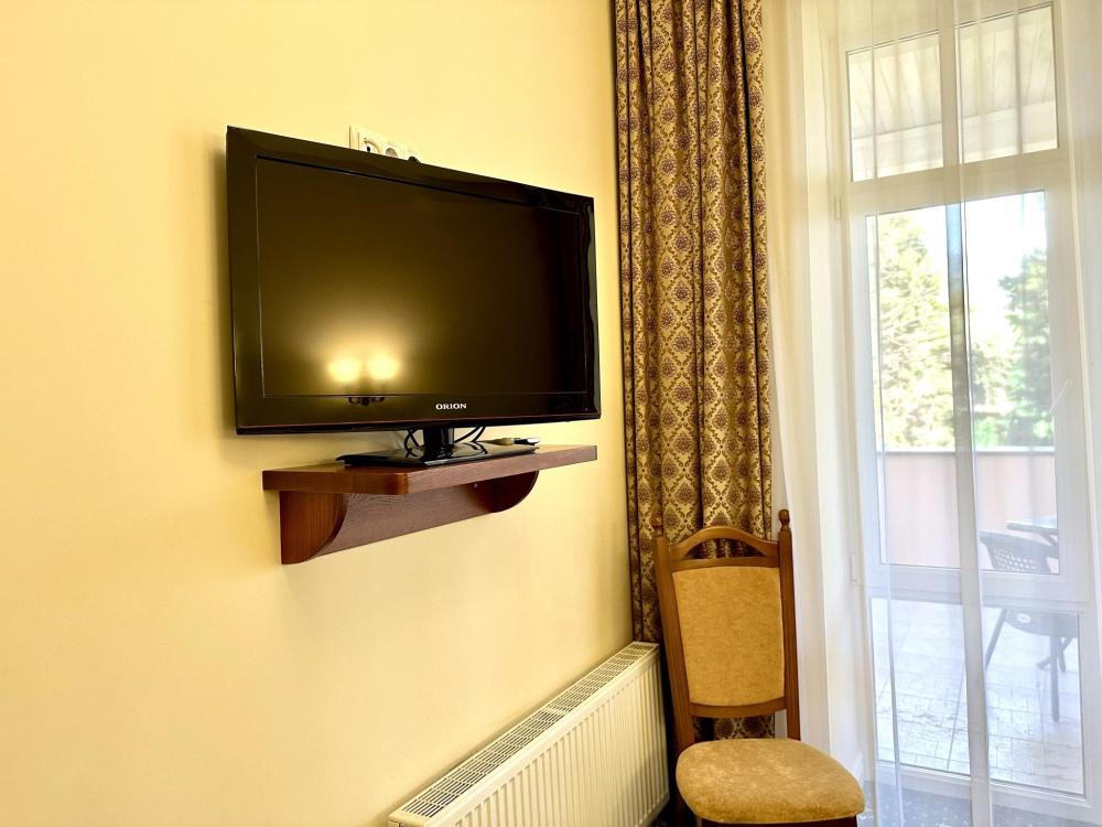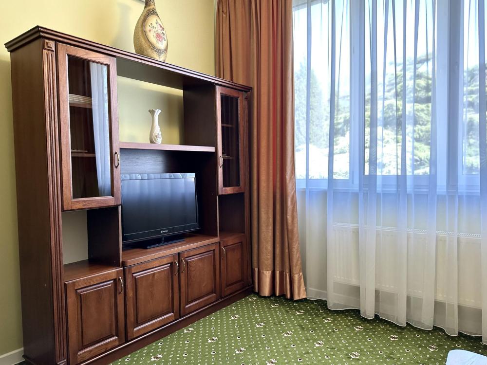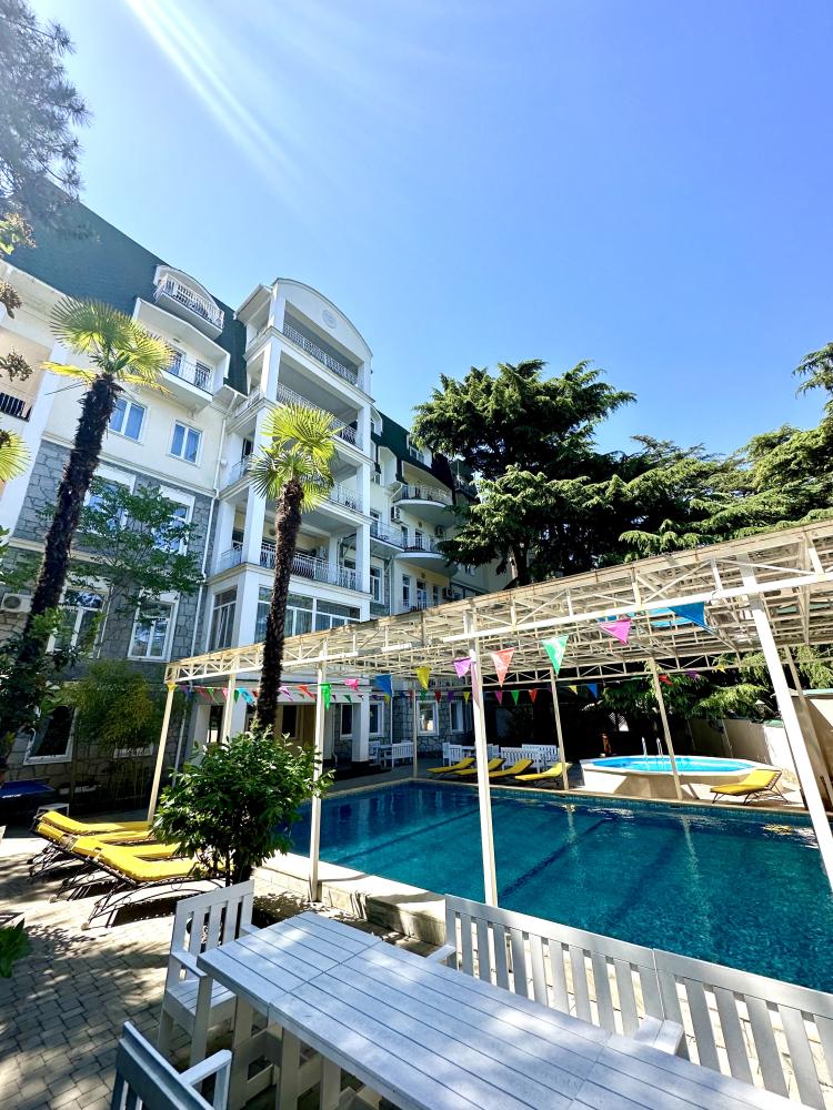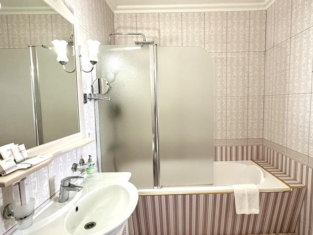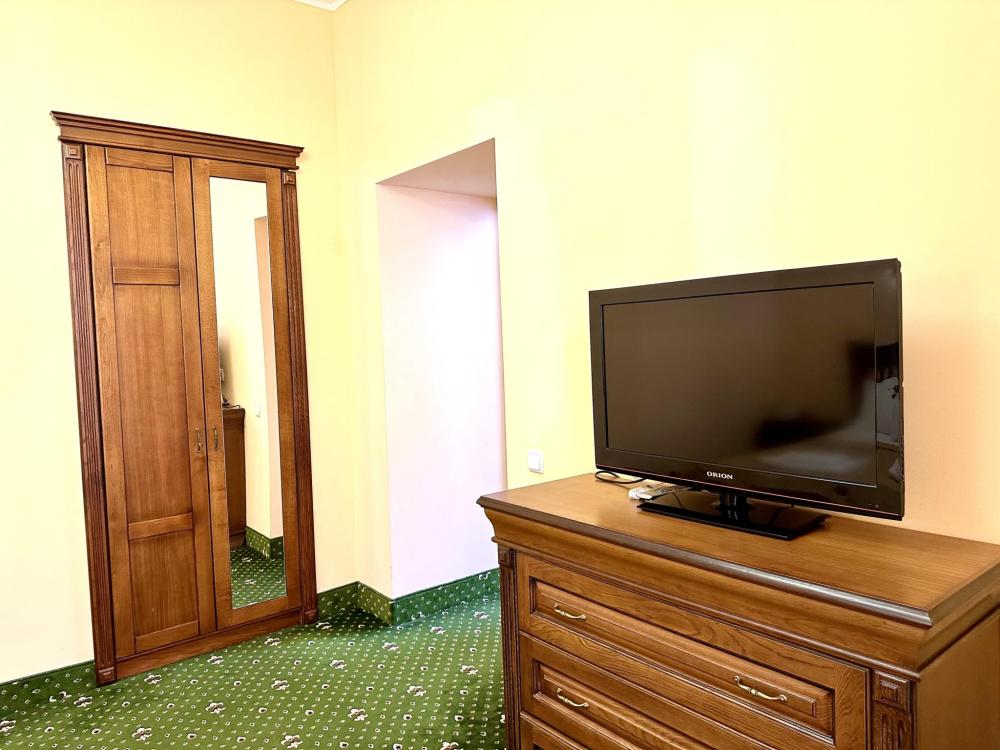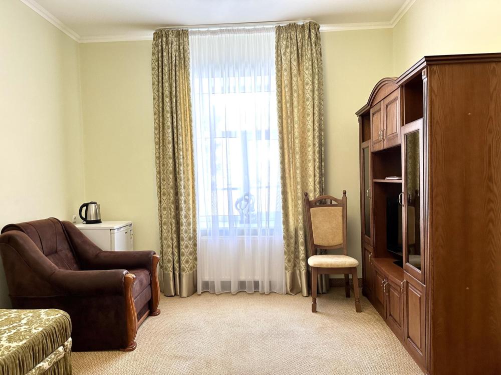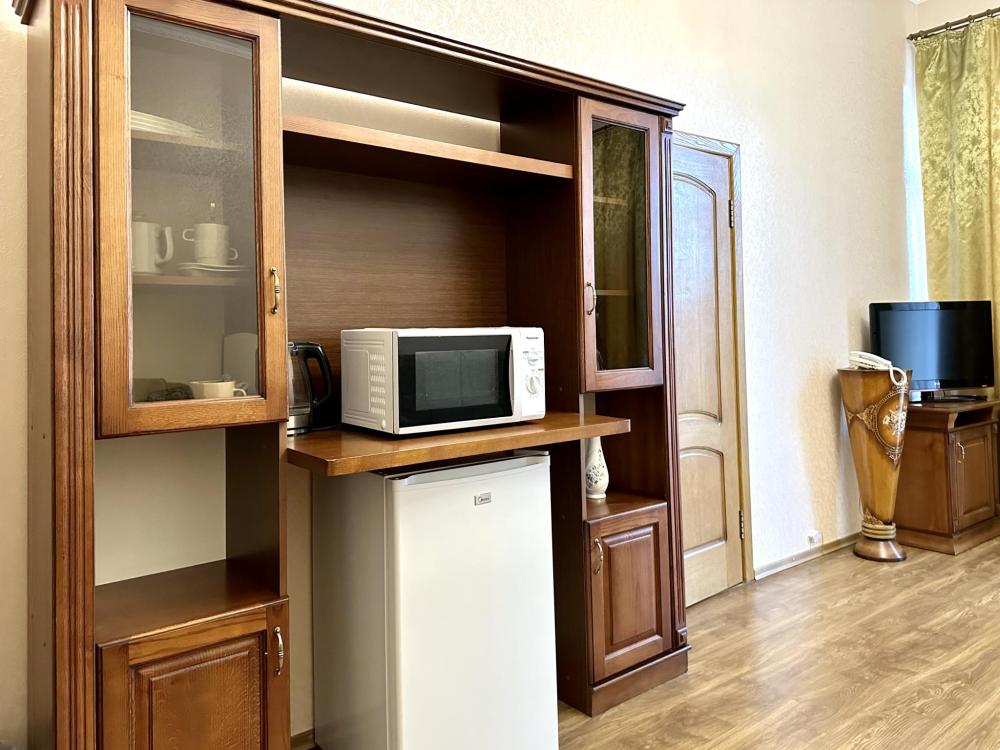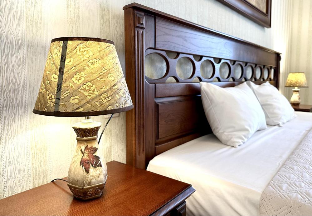 Номер в классическом стиле. В номере есть: wi-fi, дополнительное место — кровать, кресло-кровать или диван, телевизор с плоским экраном, кондиционер, халат, фен, тапочки, косметический набор для душа, холодильник, мини-бар, пляжные полотенца, чайник, чайный набор.