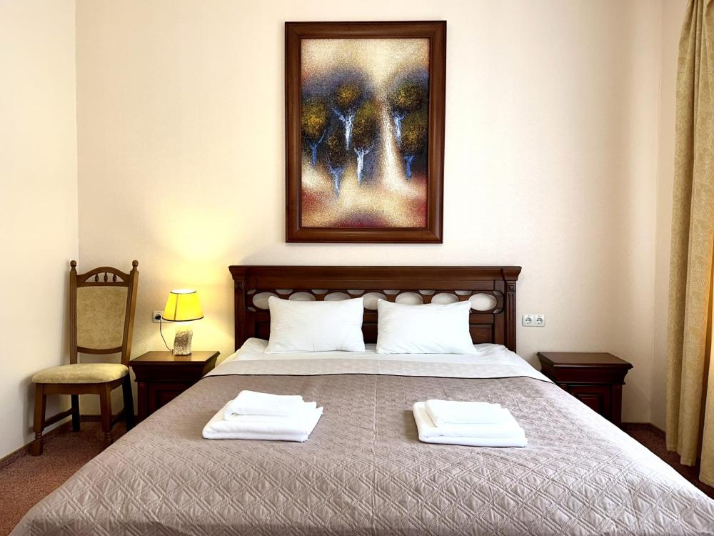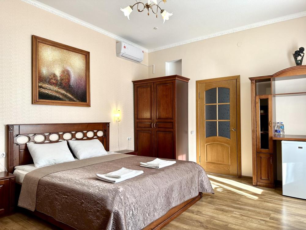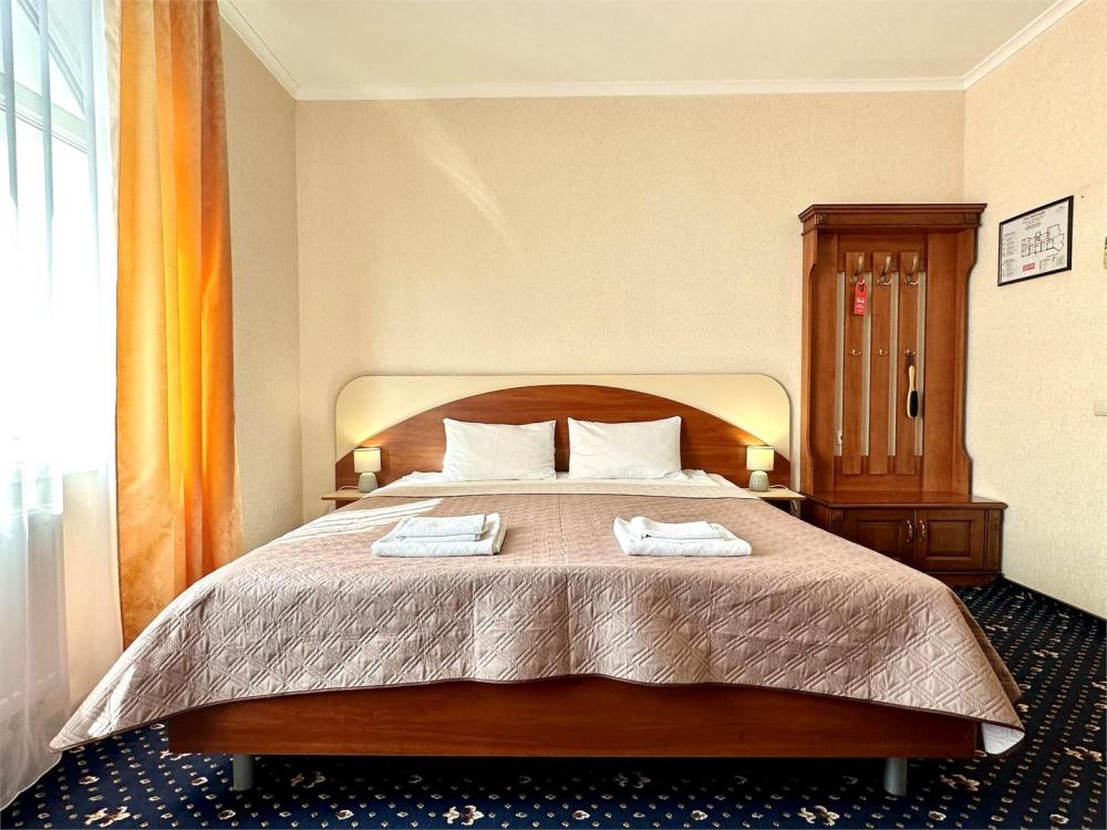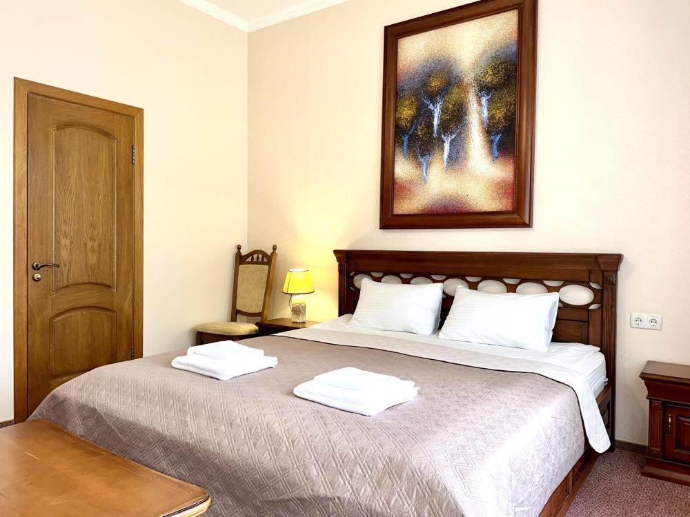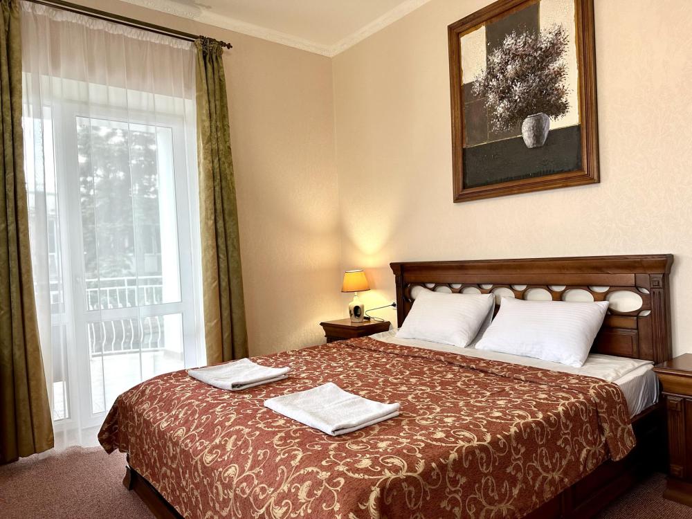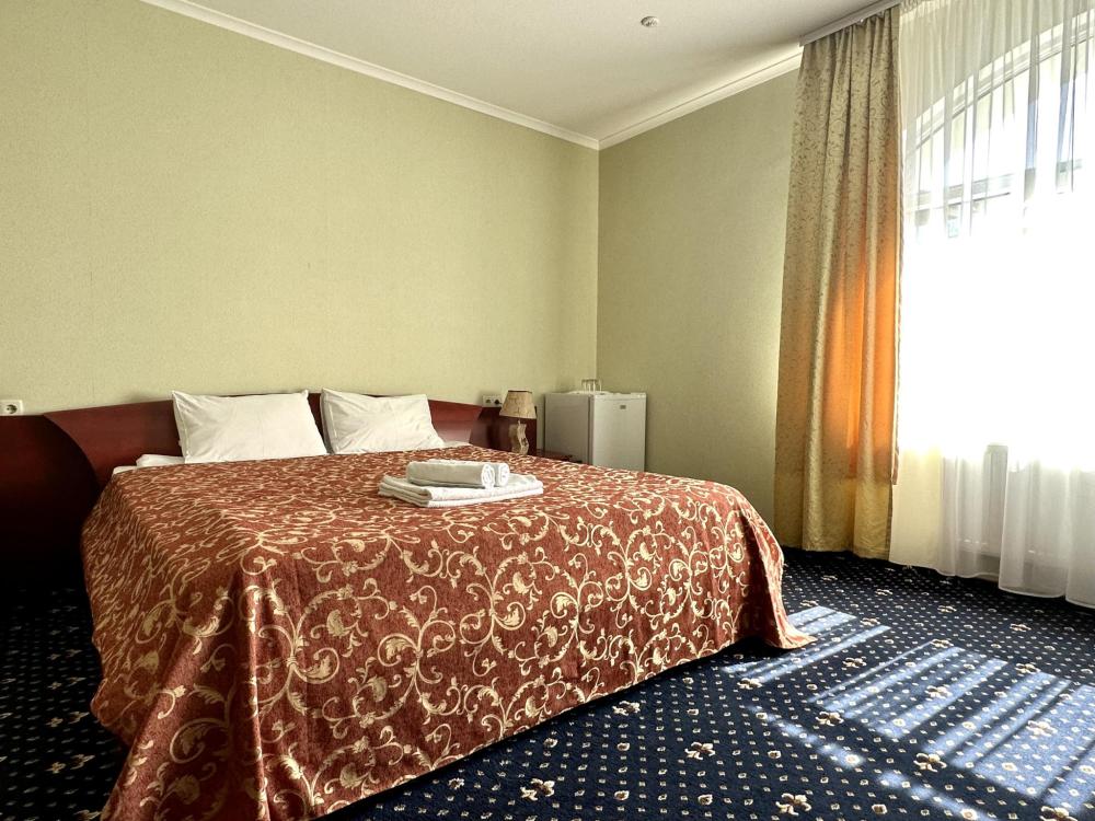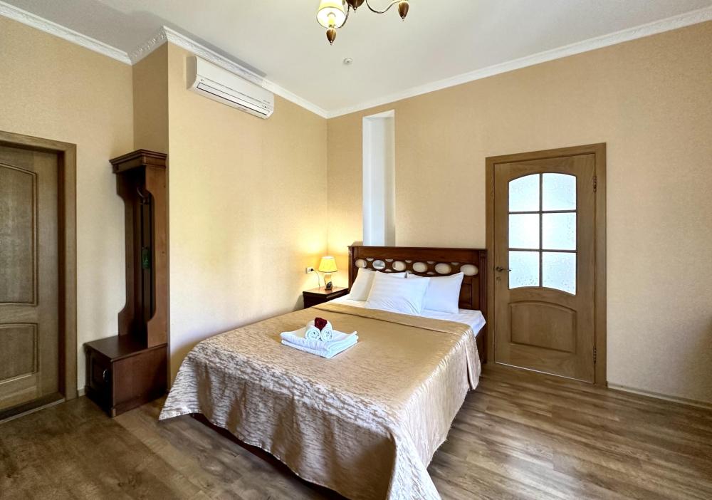 Однокомнатные номера с одной двуспальной кроватью. В номере комплект мебели, постельное белье, полотенца, санузел с душем.