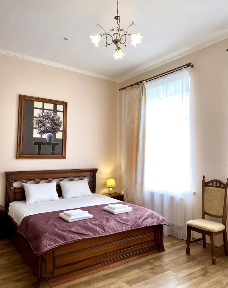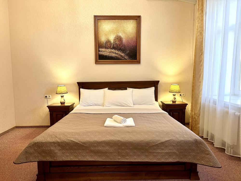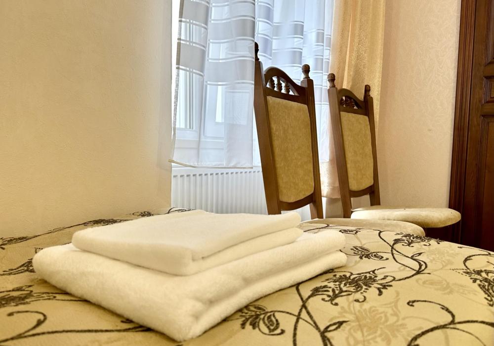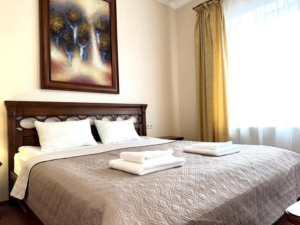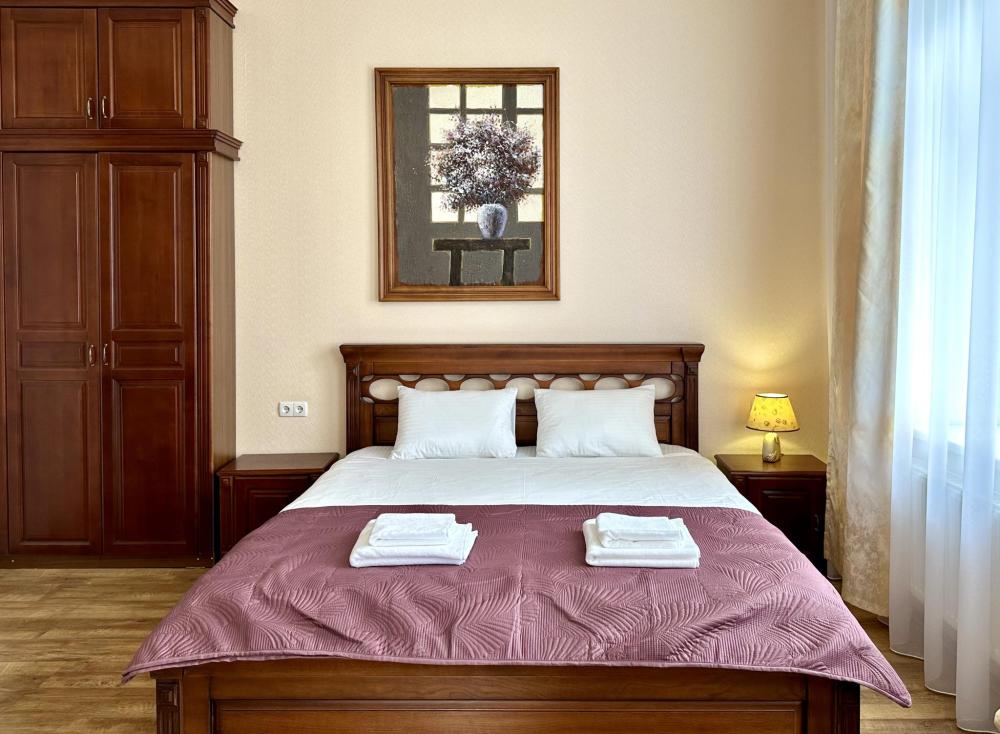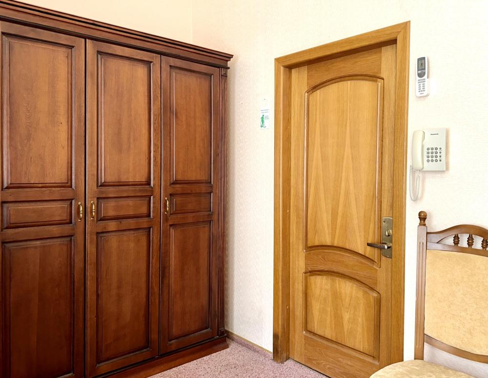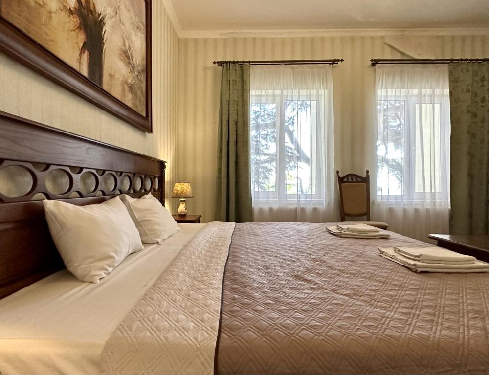 Однокомнатные номера с одной двуспальной кроватью. В номере комплект мебели, постельное белье, полотенца, санузел с душем.