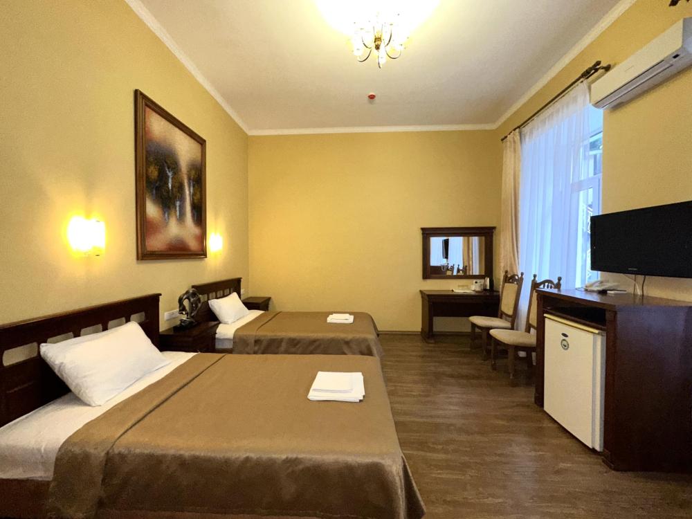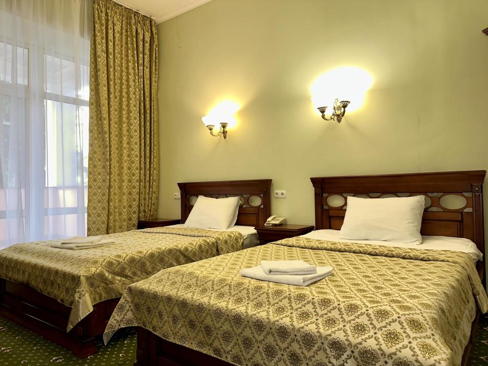 Однокомнатный номер, который рассчитан на одноместное или двухместное проживание, оформлен в классическом стиле площадью с двумя односпальными кроватями. Без возможности дополнительного места. В номере есть: wi-fi, телевизор с плоским экраном, кондиционер, душ/ванная, фен, тапочки, косметический набор для душа, холодильник, мини-бар, пляжные полотенца, чайник, чайный набор.
