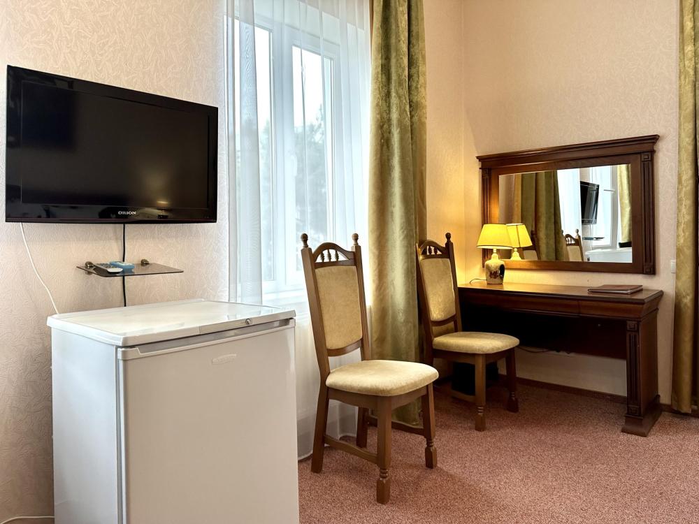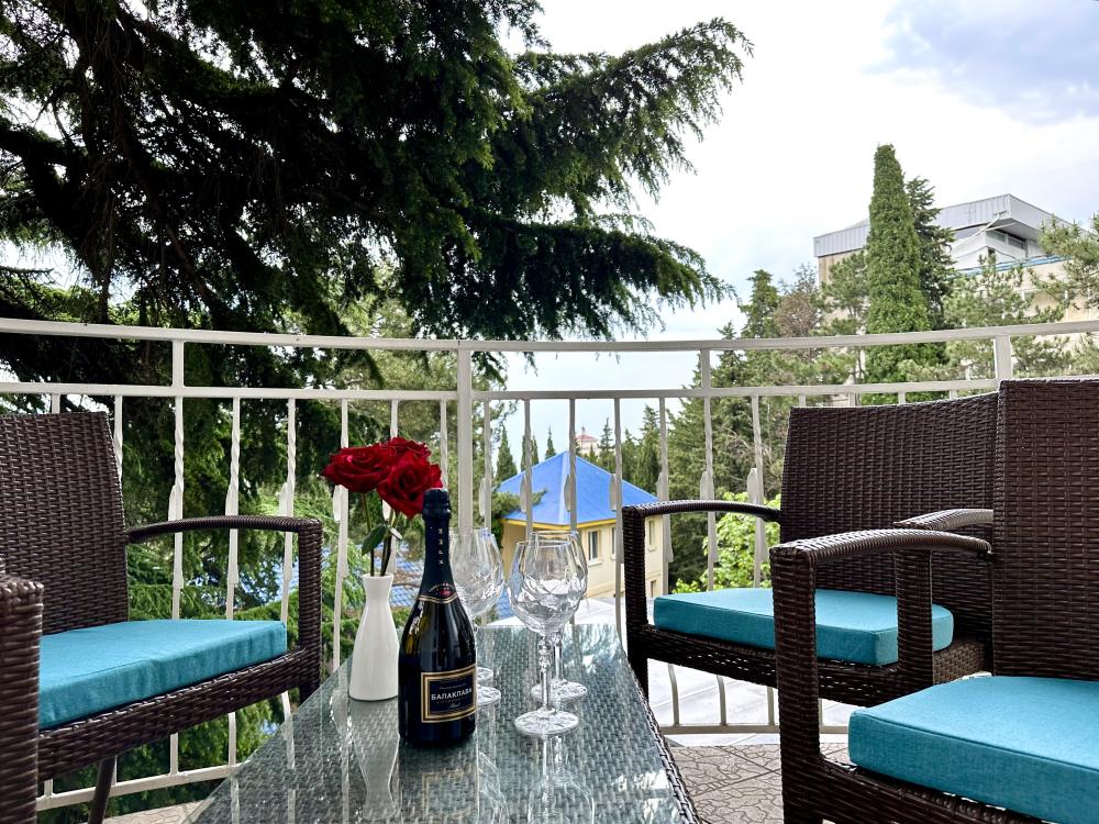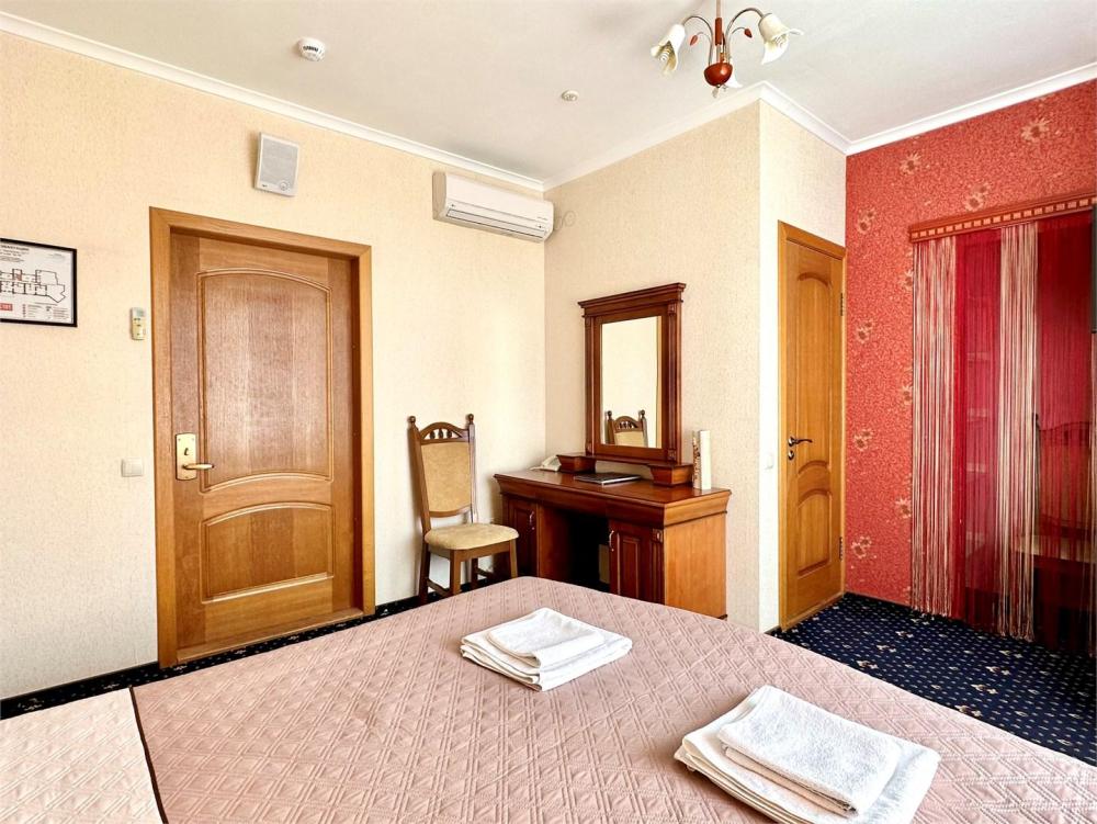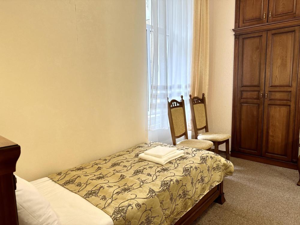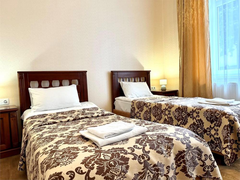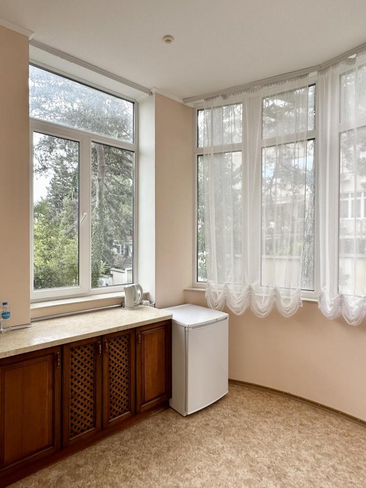 Однокомнатные номера с двумя полутораспальными кроватью и балконом. В номере комплект мебели, постельное белье, полотенца, санузел с душем.