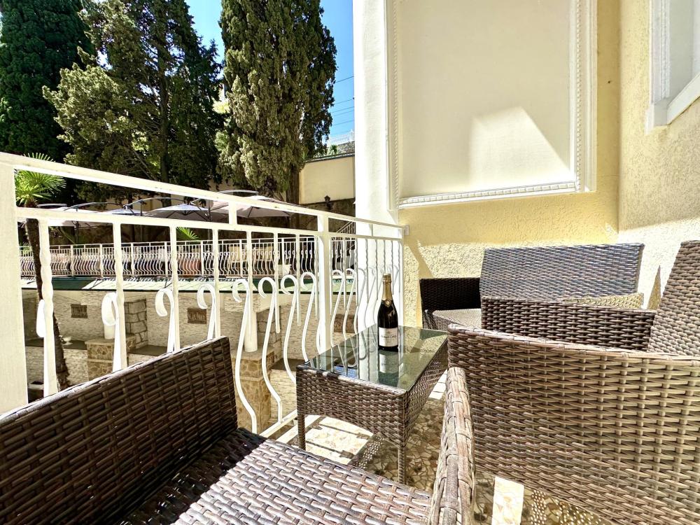 Двухкомнатный номер с большой меблированной террасой и удобным размещением для больших компаний. В номере есть: wi-fi, халат, телефон, дополнительные места — диван, кресла, телевизор с плоским экраном, кондиционер, душ/ванная, фен, тапочки, косметический набор для душа, холодильник, пляжные полотенца, чайник, чайный набор, терраса, балконная мебель, посуда, сушилка для белья