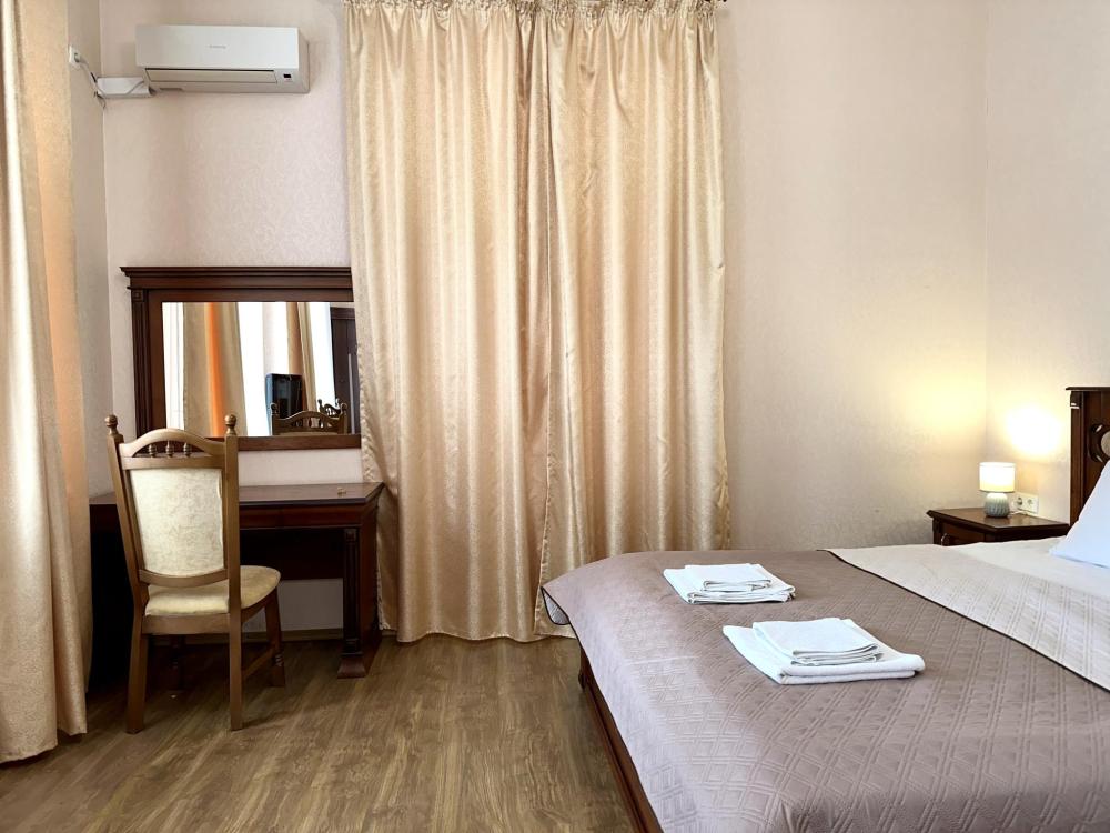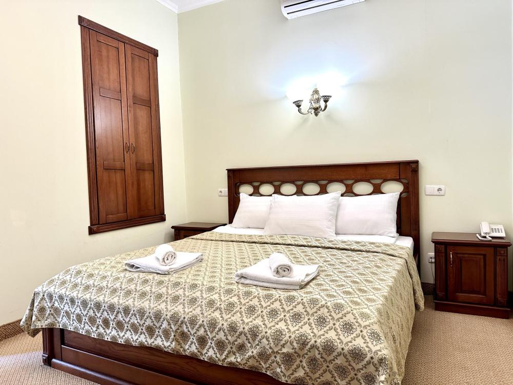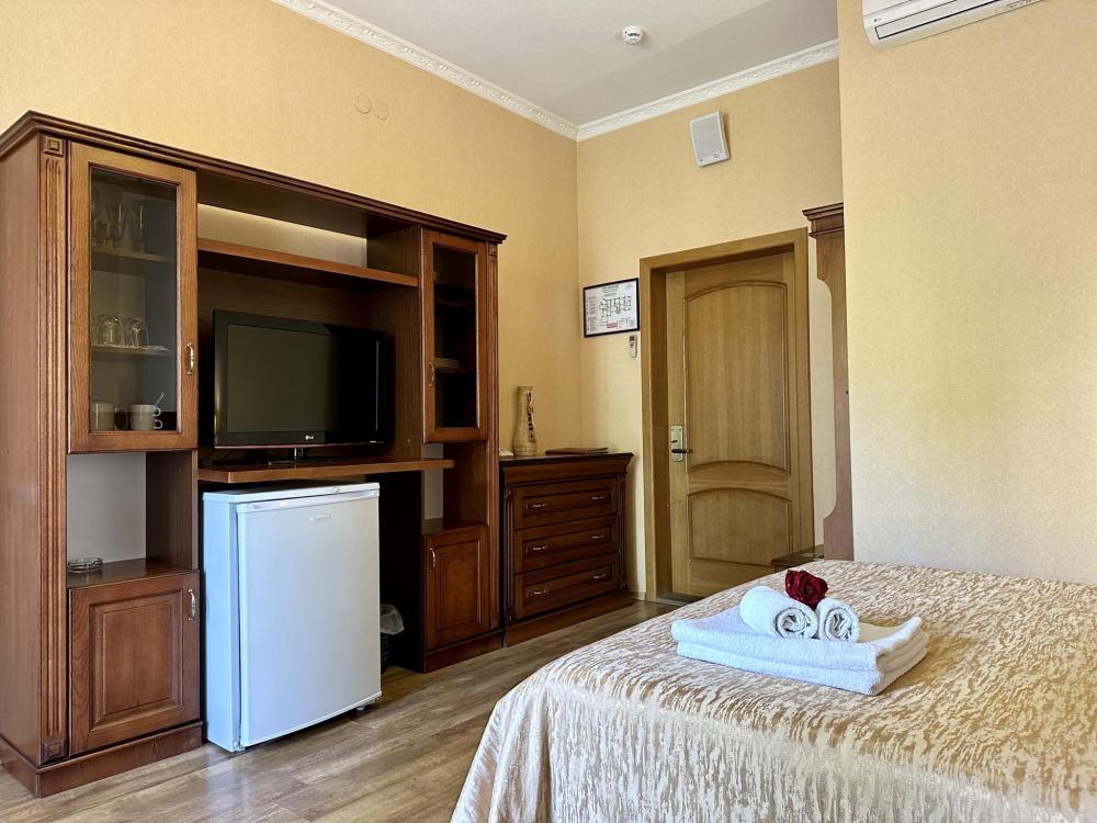 Однокомнатный номер, который рассчитан на одноместное или двухместное проживание, оформлен в классическом стиле площадью с одной двуспальной кроватью. Без возможности дополнительного места. В номере есть: wi-fi, телевизор с плоским экраном, кондиционер, душ/ванная, фен, тапочки, косметический набор для душа, холодильник, мини-бар, пляжные полотенца, чайник, чайный набор.