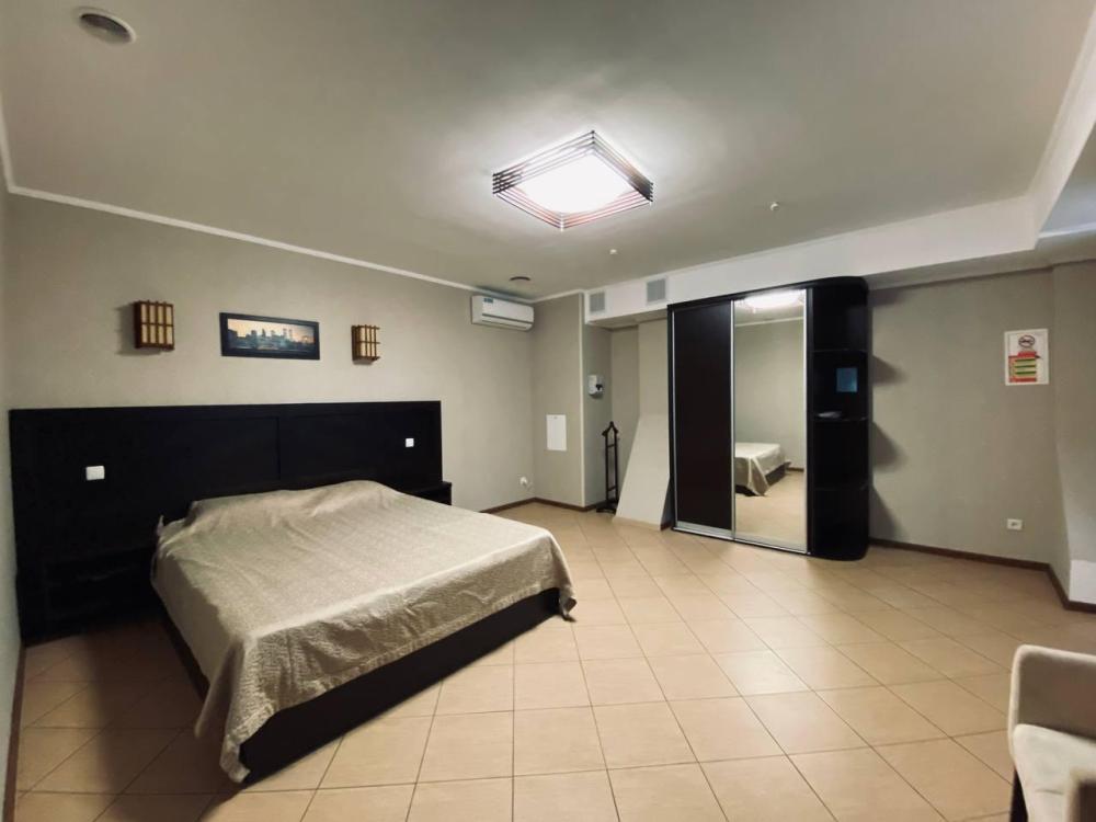 Роскошный номер в классическом стиле общей площадью 100 м2. Двухкомнатный номер с большим залом. Оборудование: две двуспальные кровати, холодильник, кондиционер, санузел с душевой кабиной, три LED-телевизора, сейф. Два номера в разном стиле.