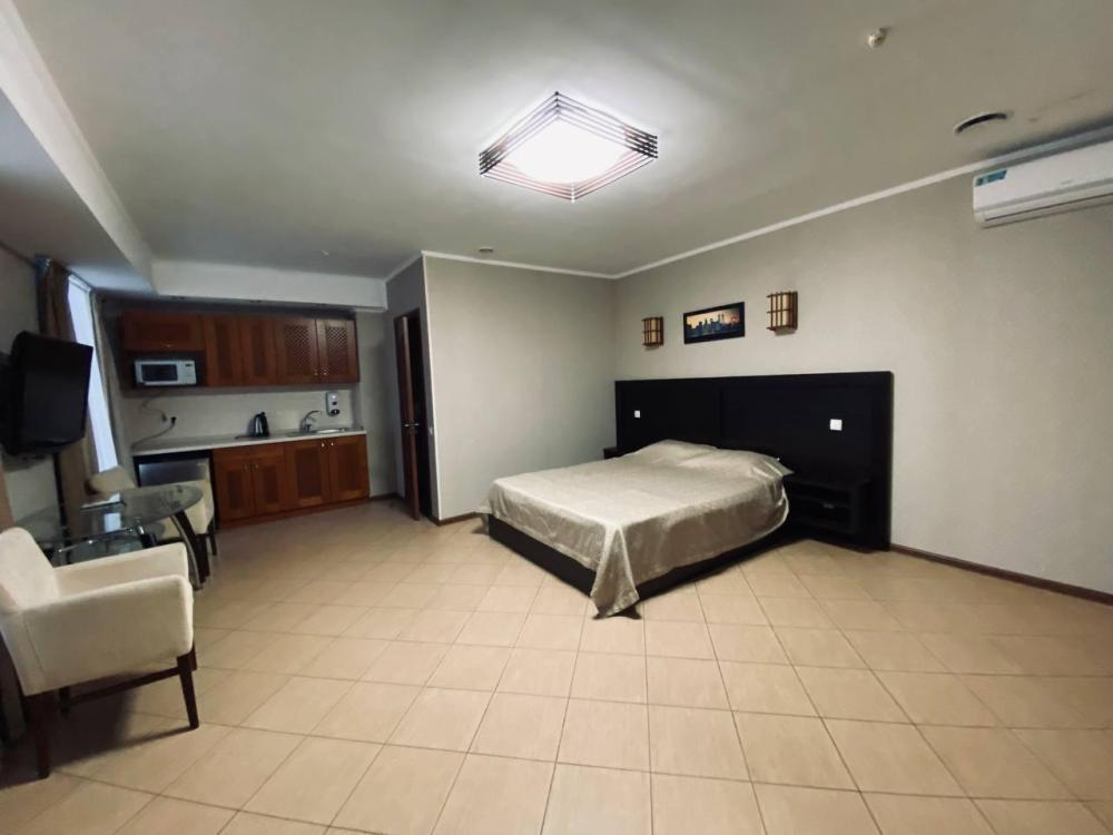Однокомнатная просторная студия площадью 40 - 50 м2. В данной категории представлены номера с видом на горы и большим балконом. В номере одна двуспальная кровать, санузел с душем или ванной, мини-кухня (за дополнительную плату). Led TV, мини-холодильник, кондиционер, сейф, фен, халаты (предоставляются за дополнительную стоимость).