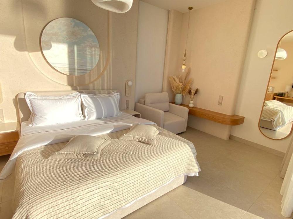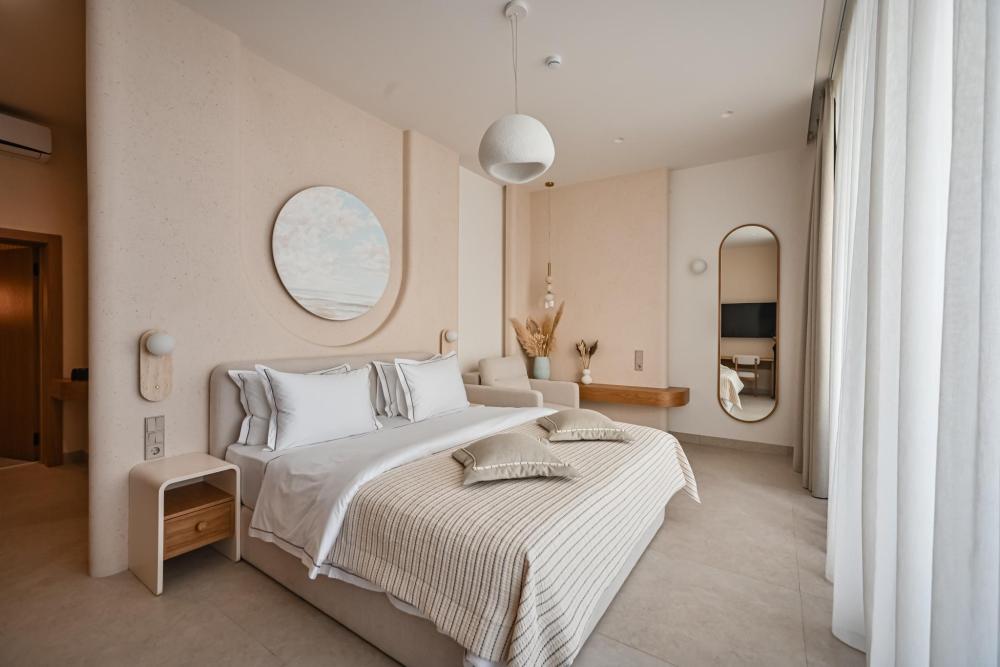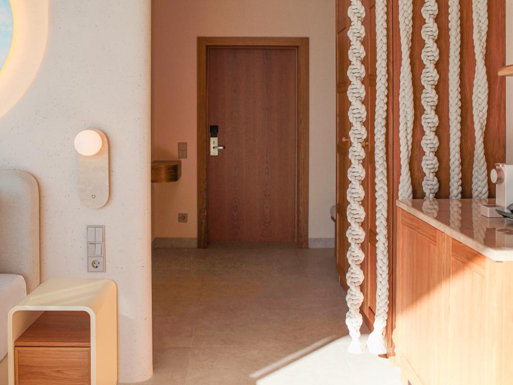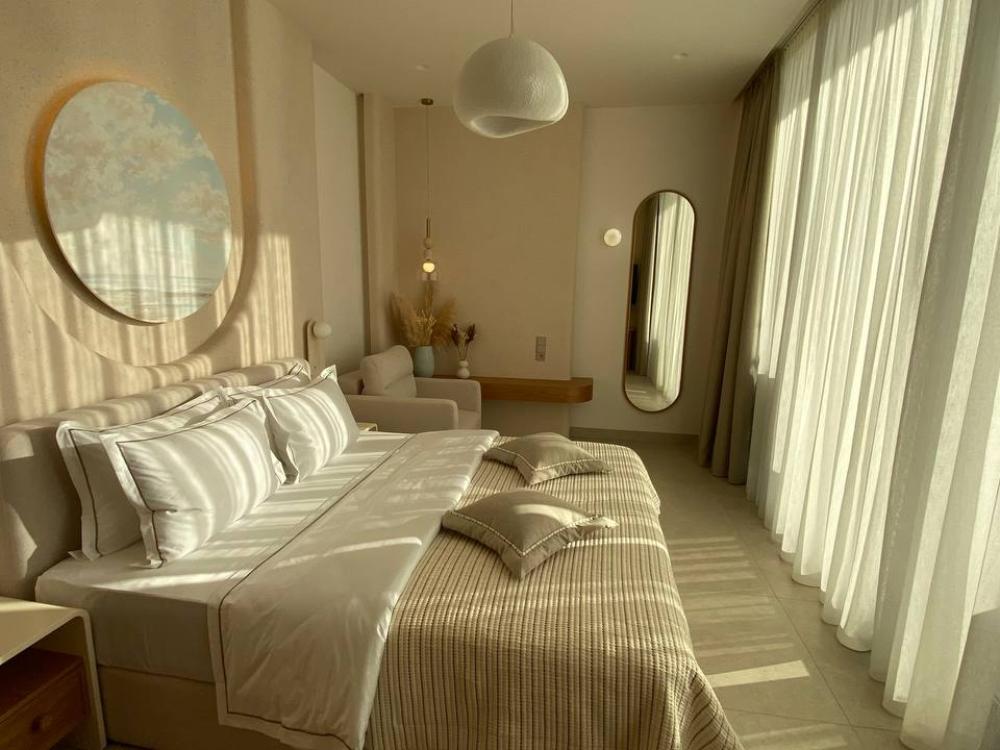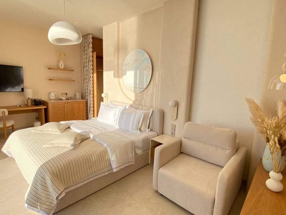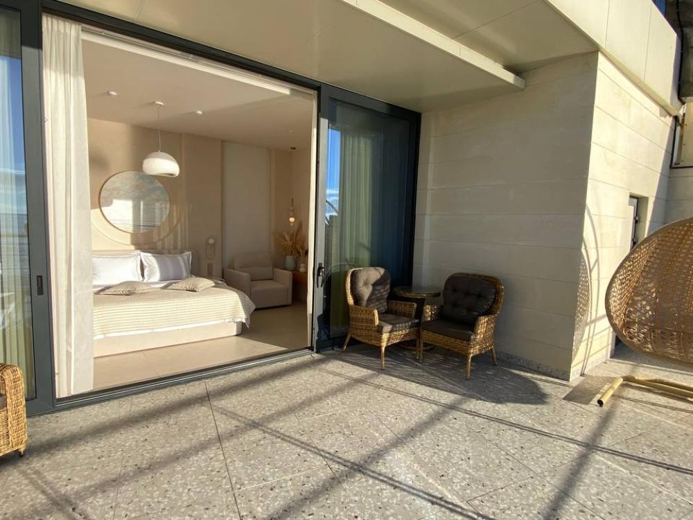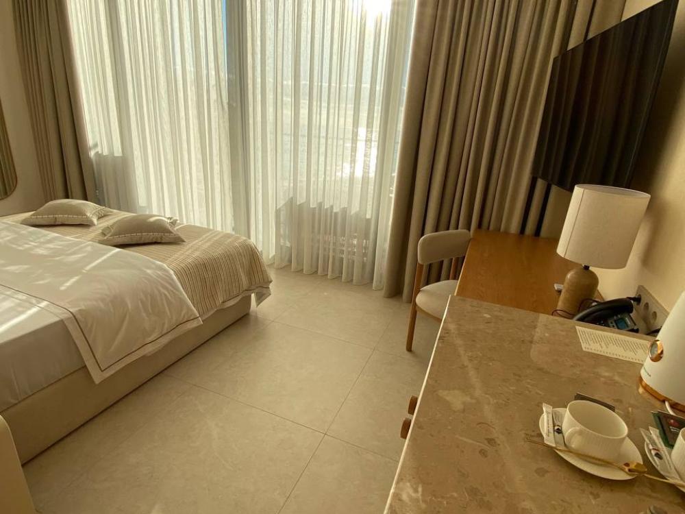 Для тех, кто хочет быть ближе к морю — буквально. Из собственной террасы открывается прямой выход к воде, а лёгкий морской бриз становится частью пространства. Здесь приятно начинать день прогулкой вдоль берега и ощущать, что море — почти твоё личное. Просторный номер площадью 21,3 м² рассчитан на двоих и оснащён всем необходимым: большая двуспальная кровать 180×200 см, телевизор, мини-бар, кофемашина, письменный стол, настольная лампа и отдельная гардеробная, добавляющая комфорта. Кондиционер и тёплый пол обеспечивают уют в любую погоду. На террасе — шезлонги, кресла, столик и пляжные полотенца, чтобы можно было отдыхать у воды, не покидая номер. В ванной — душ, зеркало с подсветкой, фен, весы, наборы для ухода и текстиль для каждого гостя. Ежедневная уборка поддерживает чистоту, полотенца меняются раз в два дня или по запросу, постельное бельё — каждые три дня.