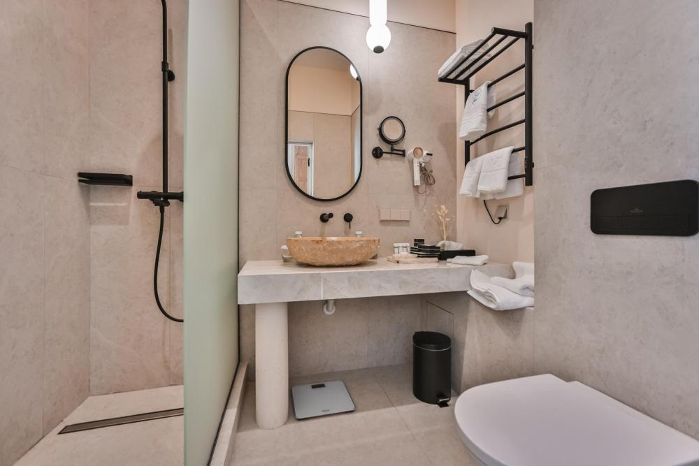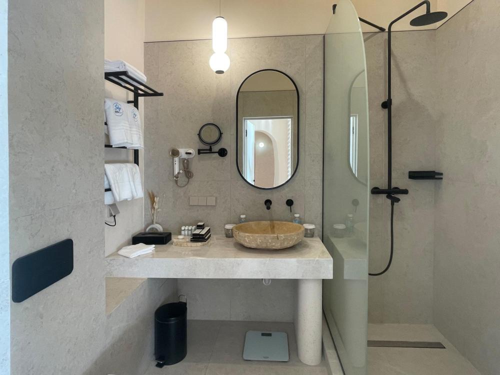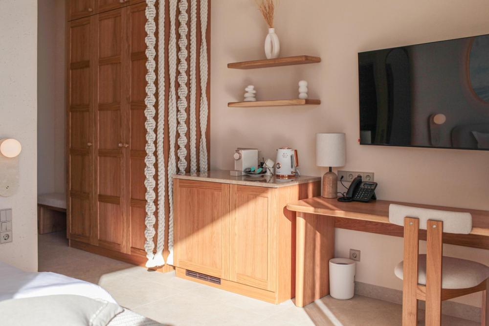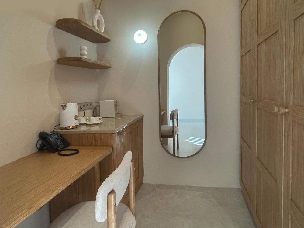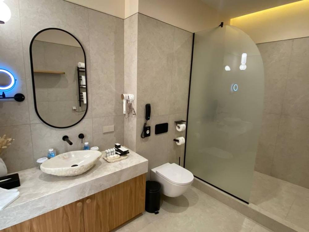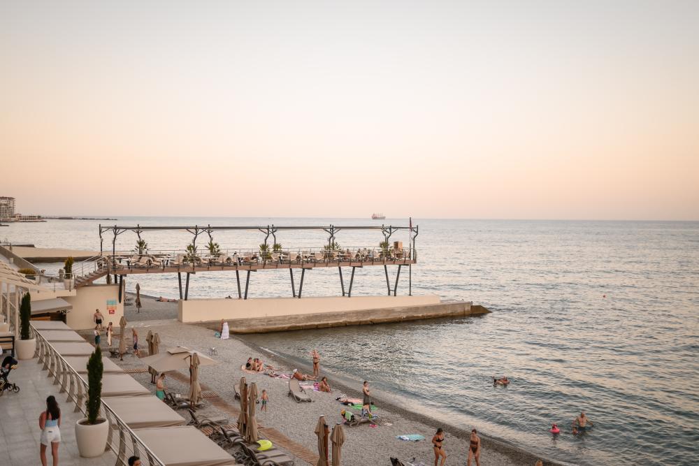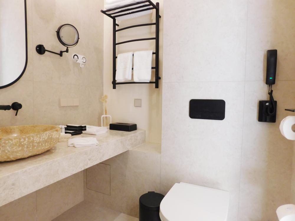 Для тех, кто хочет быть ближе к морю — буквально. Из собственной террасы открывается прямой выход к воде, а лёгкий морской бриз становится частью пространства. Здесь приятно начинать день прогулкой вдоль берега и ощущать, что море — почти твоё личное. Просторный номер площадью 21,3 м² рассчитан на двоих и оснащён всем необходимым: большая двуспальная кровать 180×200 см, телевизор, мини-бар, кофемашина, письменный стол, настольная лампа и отдельная гардеробная, добавляющая комфорта. Кондиционер и тёплый пол обеспечивают уют в любую погоду. На террасе — шезлонги, кресла, столик и пляжные полотенца, чтобы можно было отдыхать у воды, не покидая номер. В ванной — душ, зеркало с подсветкой, фен, весы, наборы для ухода и текстиль для каждого гостя. Ежедневная уборка поддерживает чистоту, полотенца меняются раз в два дня или по запросу, постельное бельё — каждые три дня.