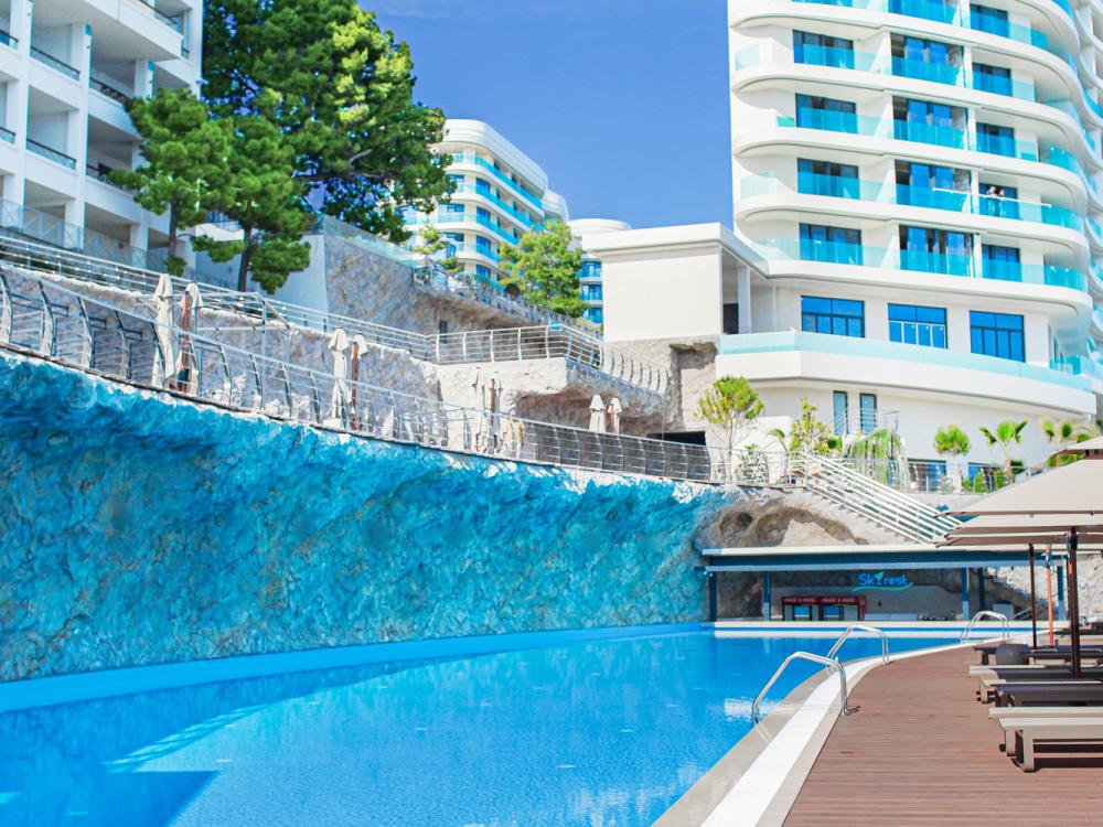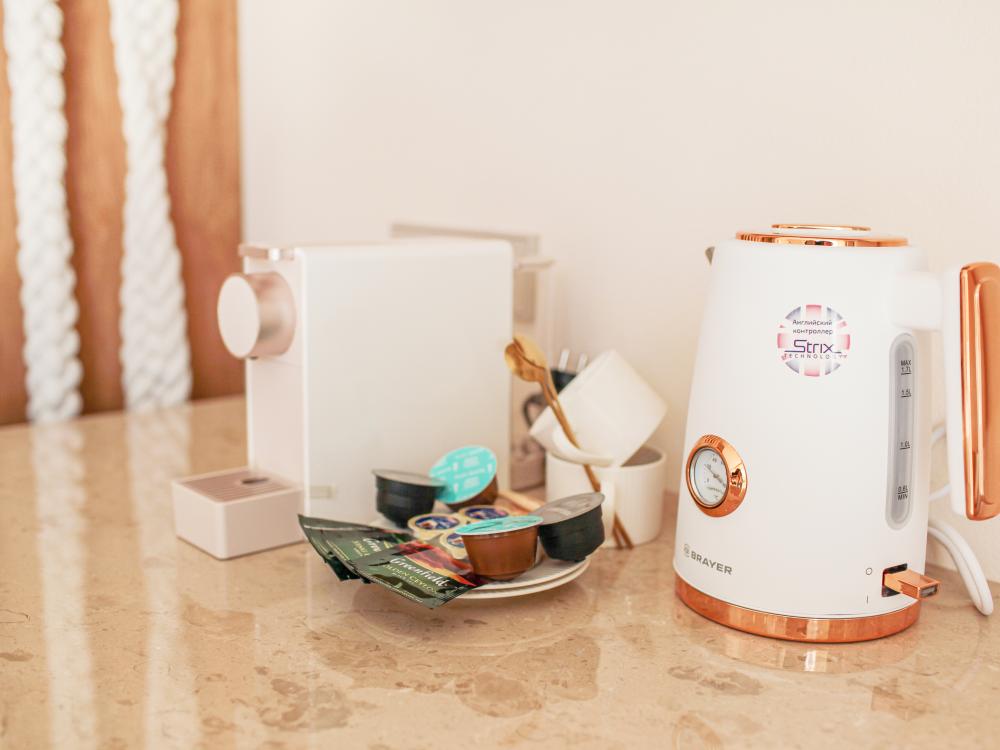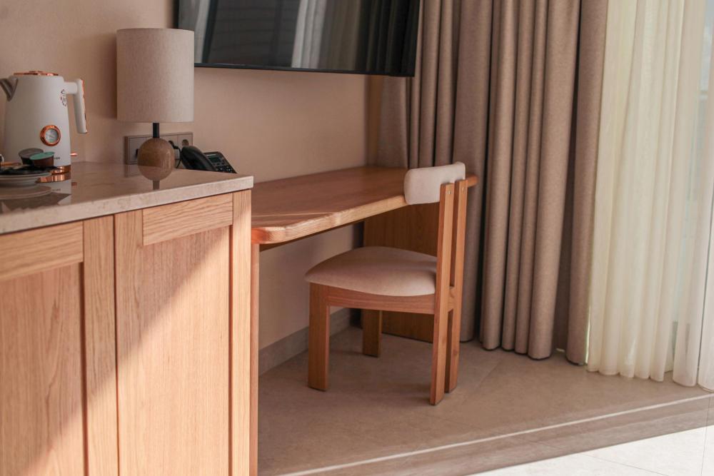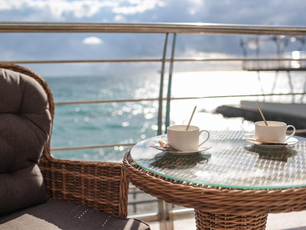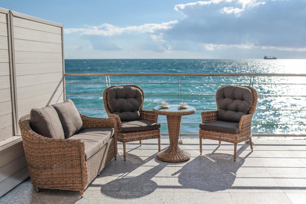 Этот номер создан для тех, кто ценит тишину, свет и утро с видом на море. Здесь всё продумано для отдыха вдвоём: просторная двуспальная кровать 180×200 см, терраса с креслами и шезлонгами, где можно проводить время с чашкой кофе, слушая дыхание волн у горизонта. Площадь номера — от 15,6 до 17,9 м², что позволяет сохранить чувство пространства без лишних деталей. Внутри — телевизор, мини-бар, капсульная кофемашина, чайные пары, письменный стол и настольная лампа. Комфорт поддерживают кондиционер и тёплый пол. В ванной комнате — душ, зеркало с подсветкой, фен, весы и наборы для ухода: зубной, бритвенный и косметический, а также халаты, тапочки и полотенца для каждого гостя. Ежедневно проводится уборка, полотенца меняются раз в два дня или по запросу, постельное бельё — каждые три дня. В распоряжении гостей — бесплатный Wi-Fi, парковка, прачечная, салон красоты Sky Beauty и обслуживание в номер. Всё, что нужно, рядом, ничего лишнего — только море, свет и покой.