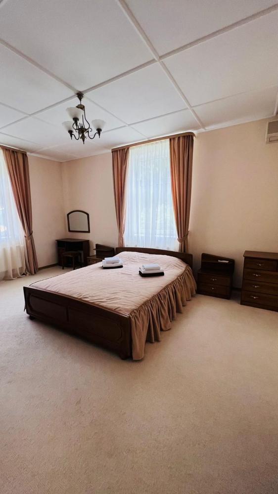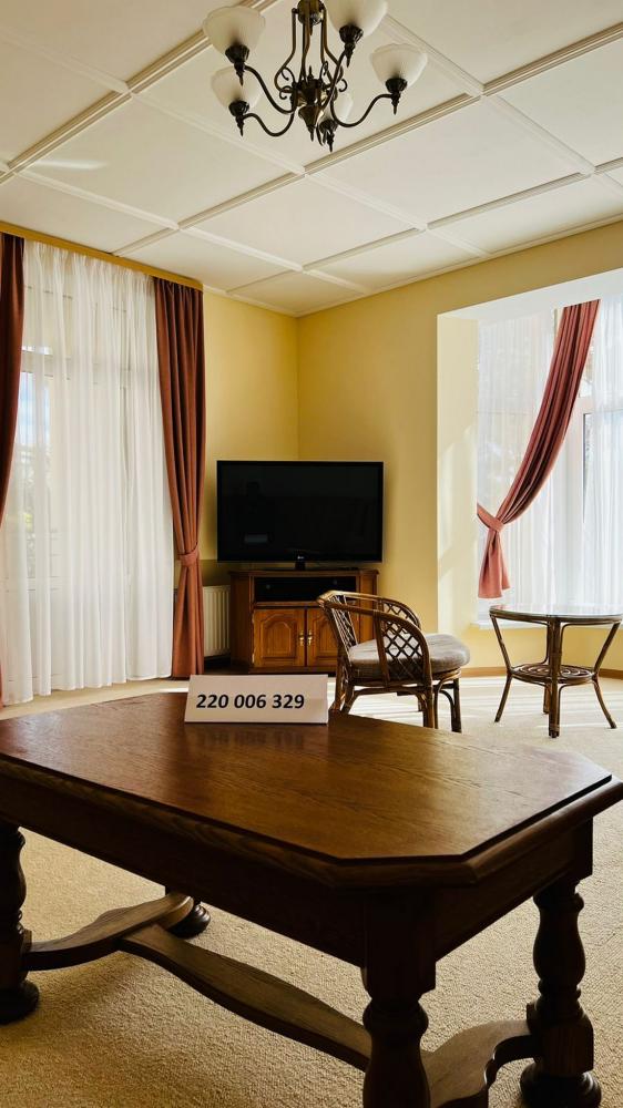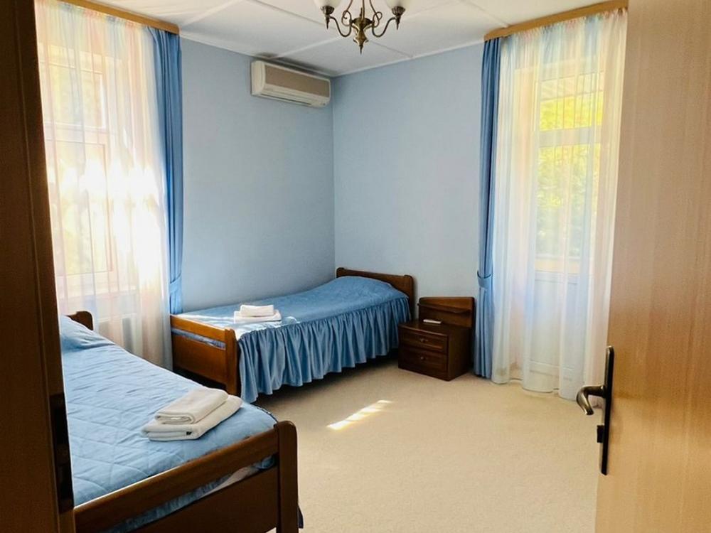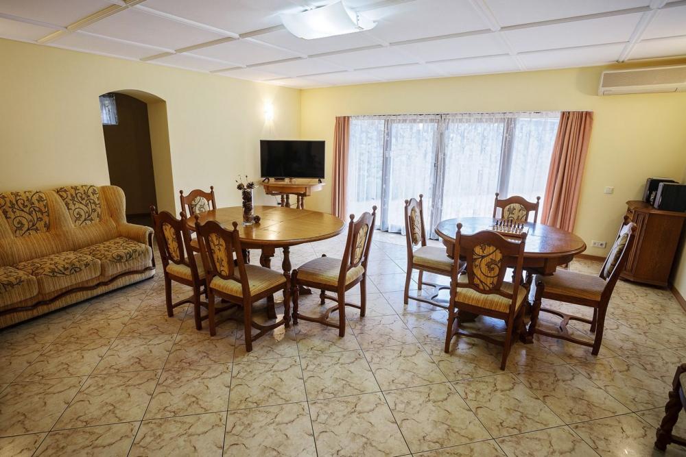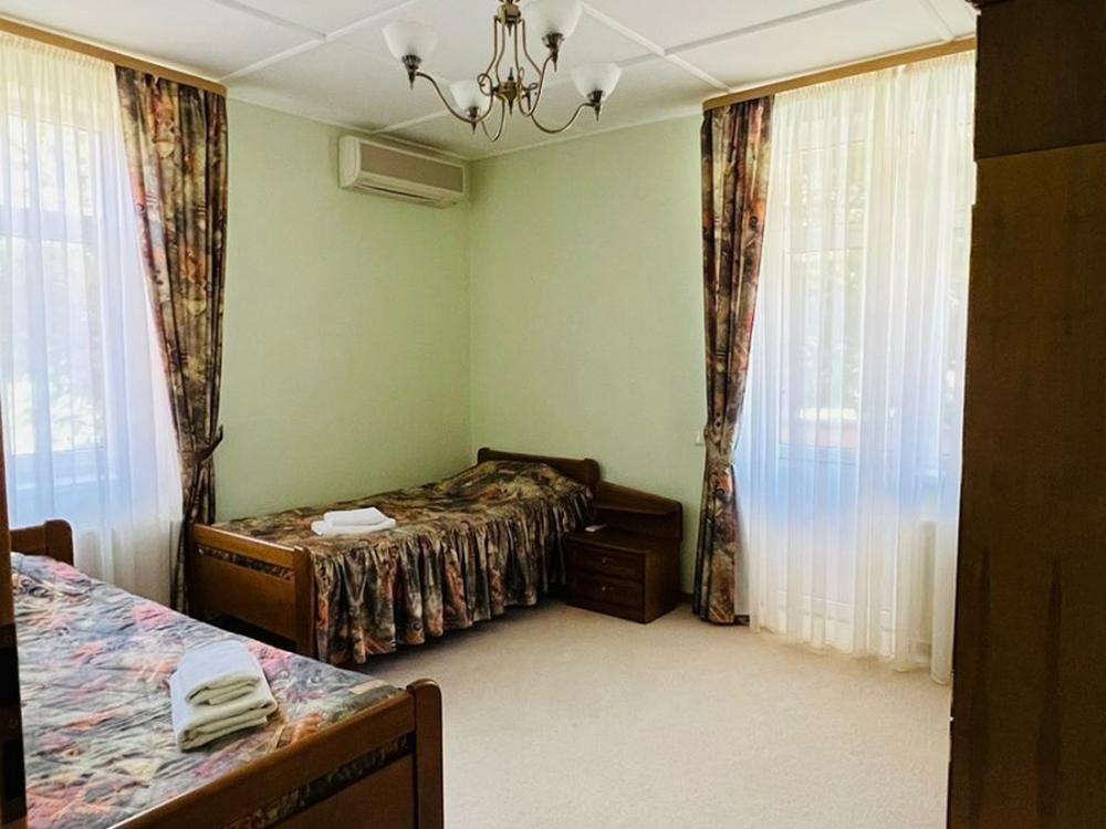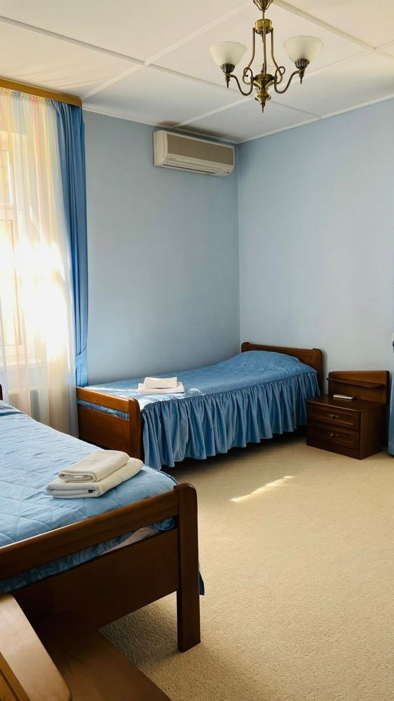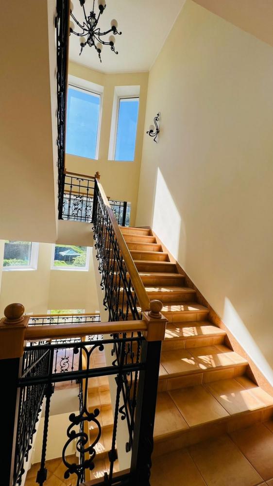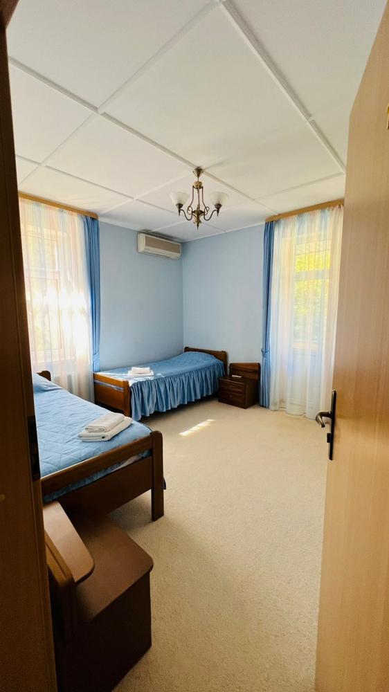 Максимальное количество гостей на вилле - 12 человек, дополнительно в залах расположены 2-х местные раскладные диваны. Вилла состоит из 3-х жилых этажей, каждый из которых располагает 2-мя спальнями с собственными санузлами, гостиной с плоским телевизором и раскладным диваном.