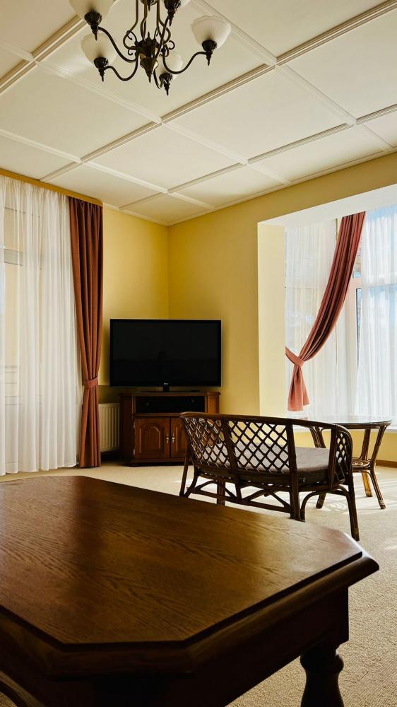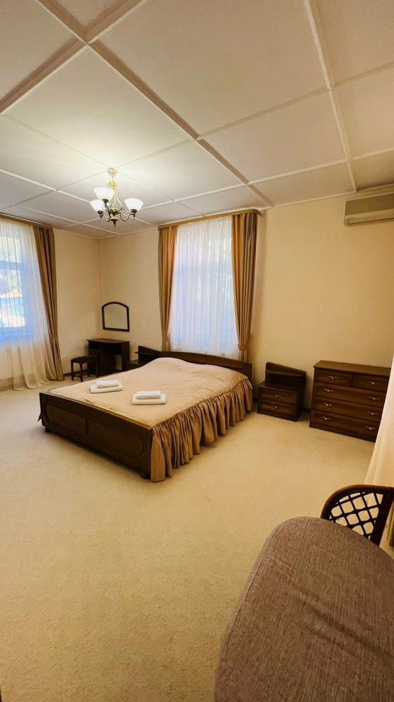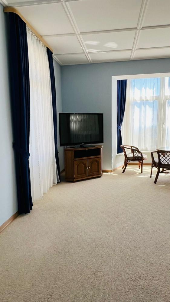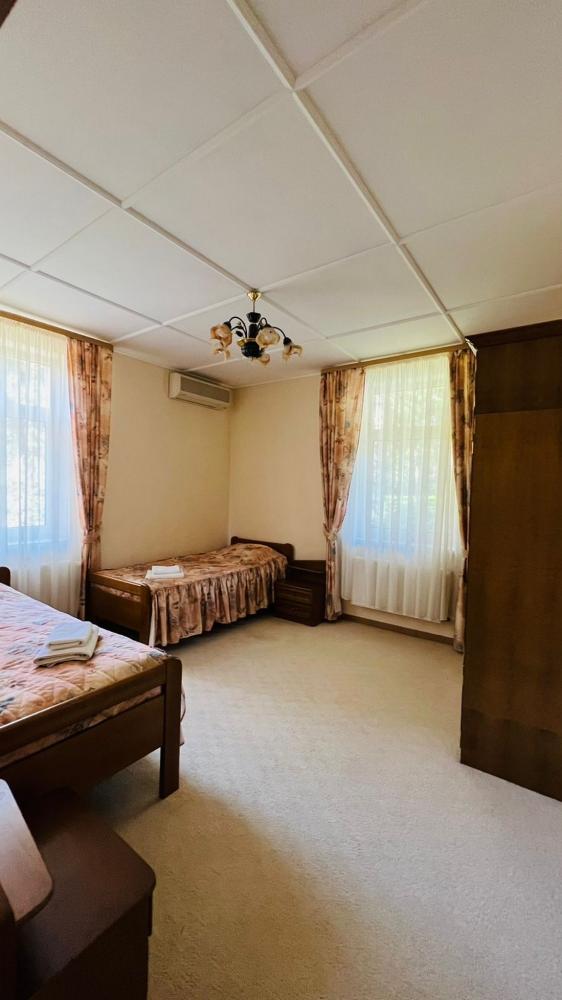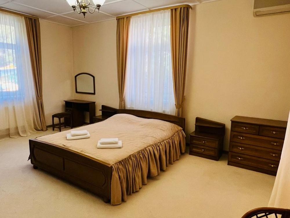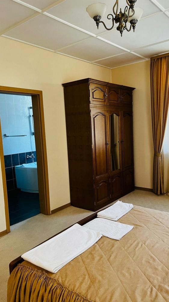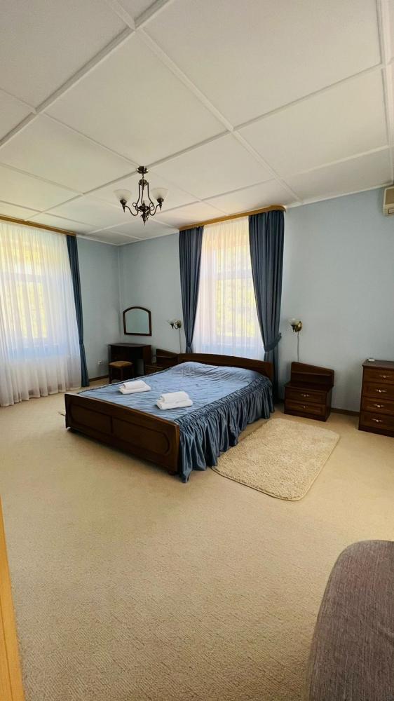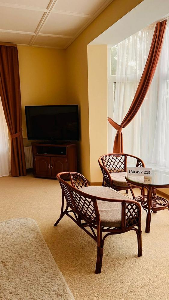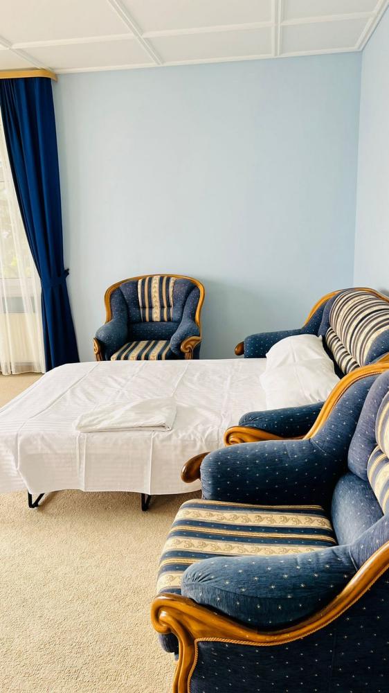 Максимальное количество гостей на вилле - 12 человек, дополнительно в залах расположены 2-х местные раскладные диваны. Вилла состоит из 3-х жилых этажей, каждый из которых располагает 2-мя спальнями с собственными санузлами, гостиной с плоским телевизором и раскладным диваном.