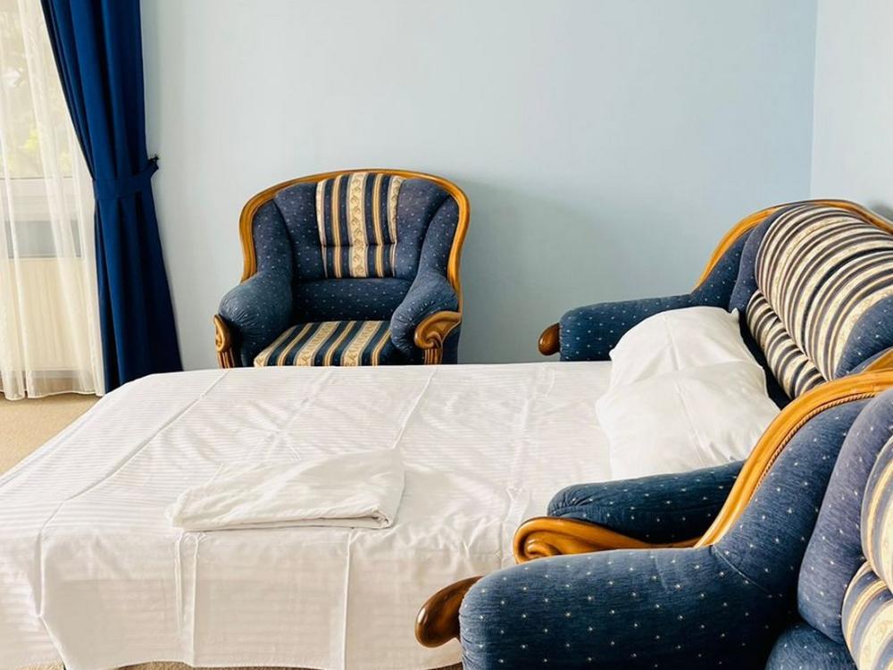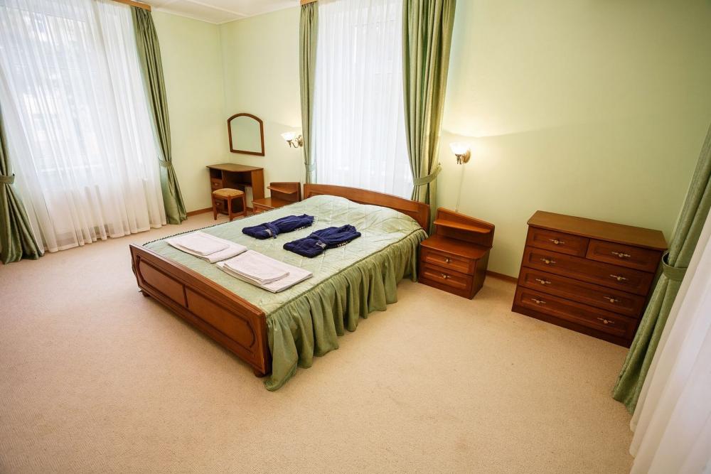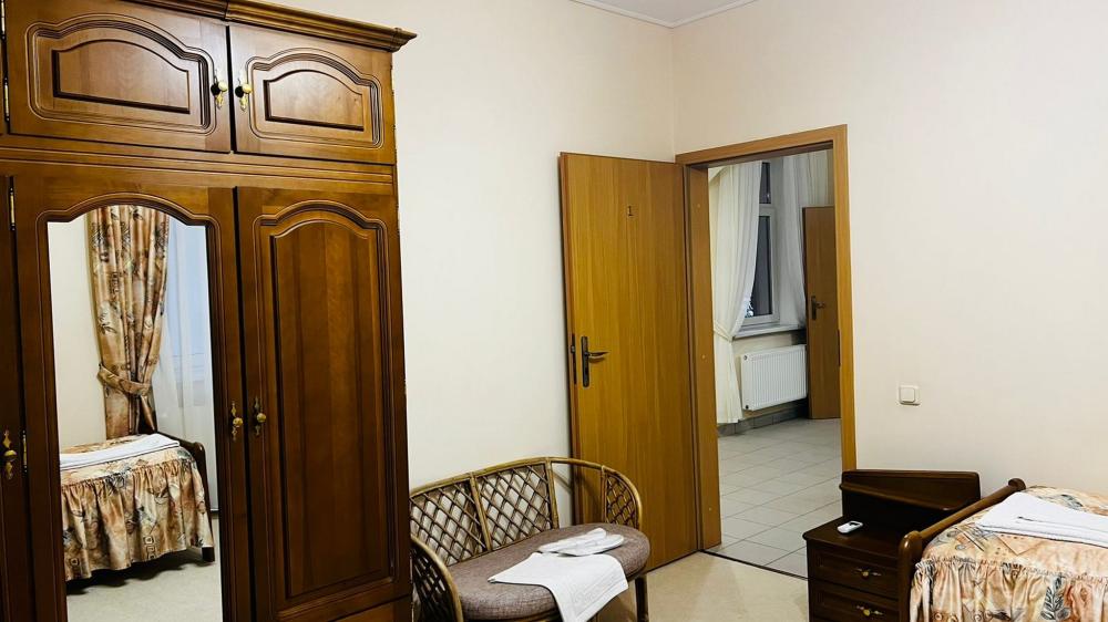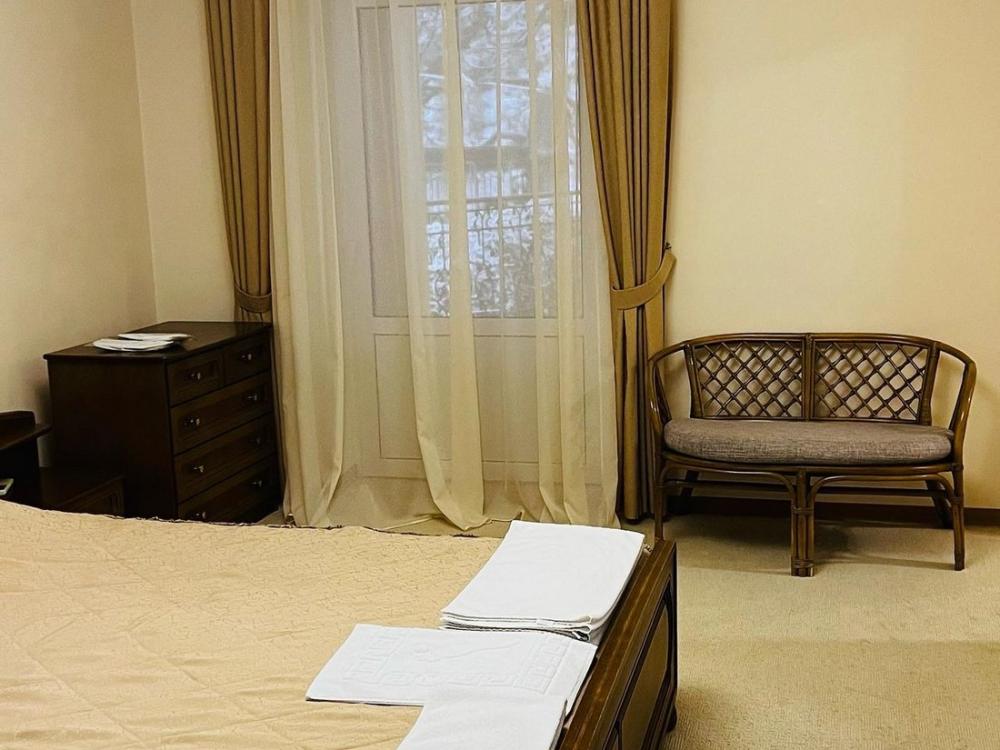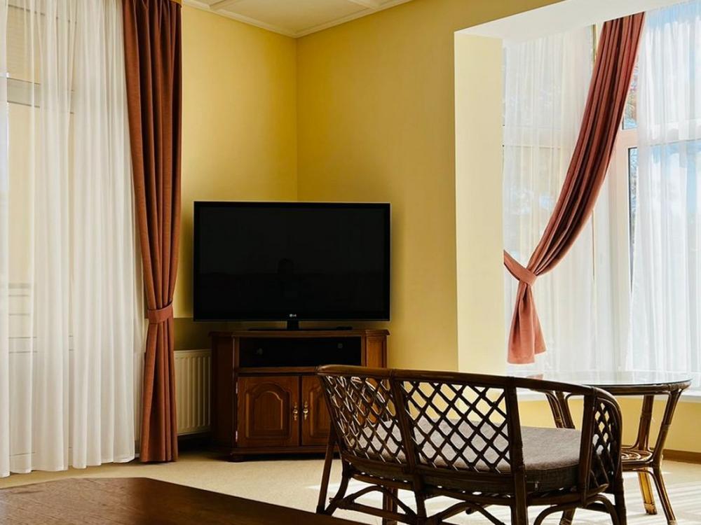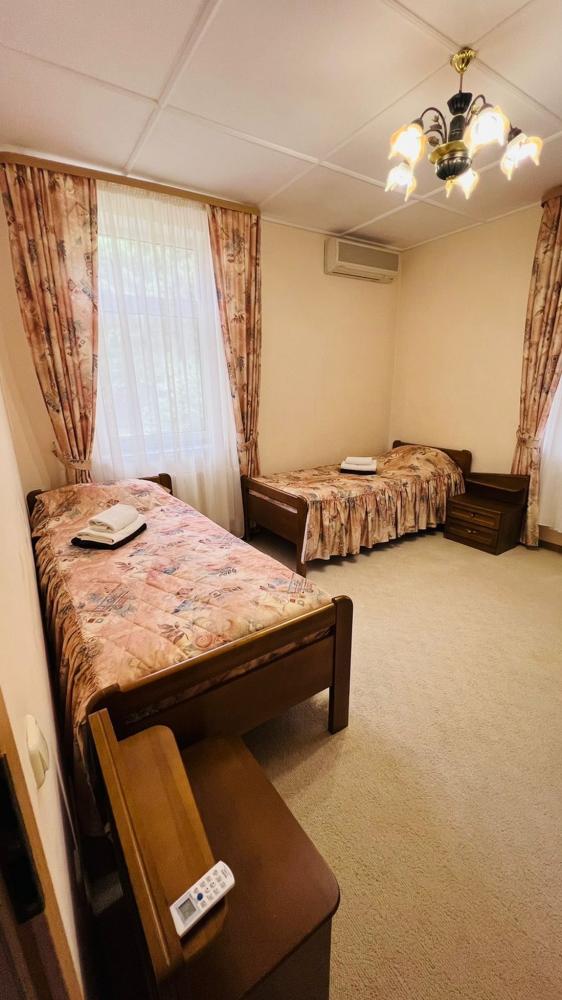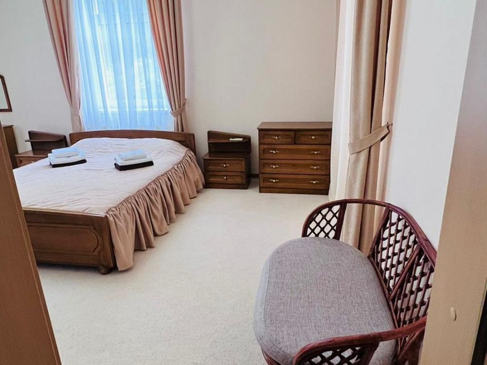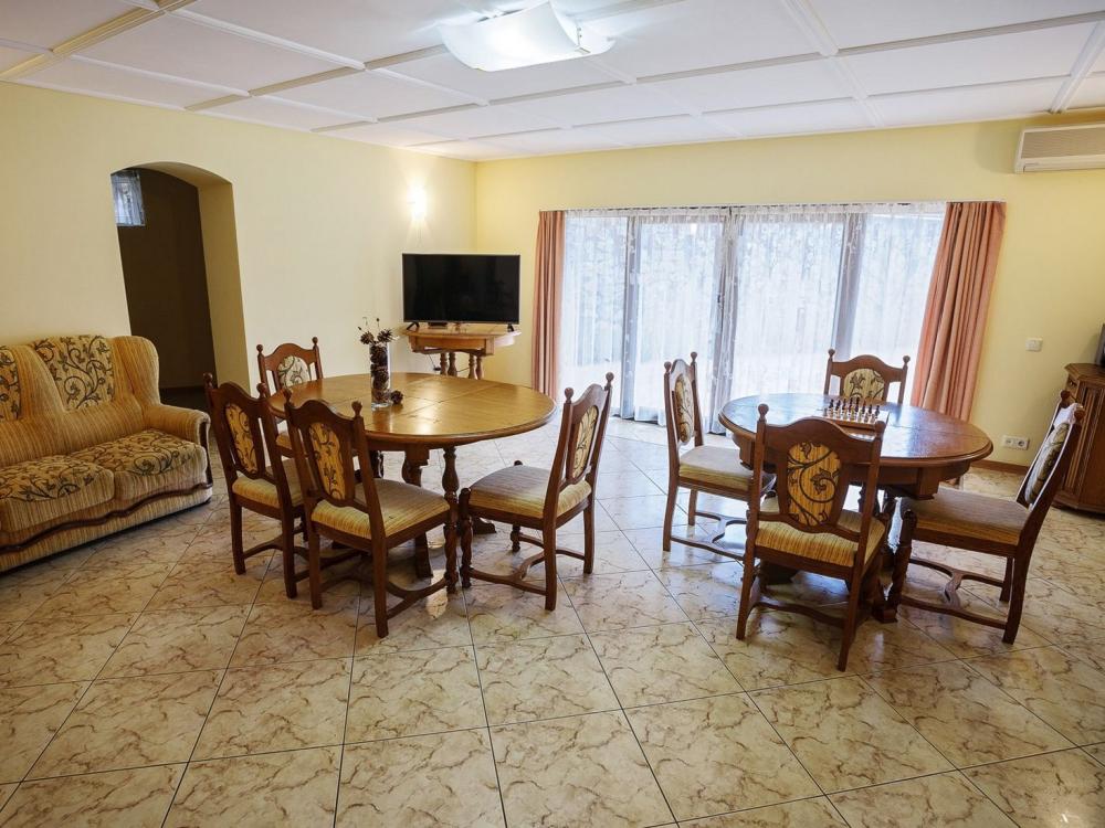 Максимальное количество гостей на вилле - 12 человек, дополнительно в залах расположены 2-х местные раскладные диваны. Вилла состоит из 3-х жилых этажей, каждый из которых располагает 2-мя спальнями с собственными санузлами, гостиной с плоским телевизором и раскладным диваном.