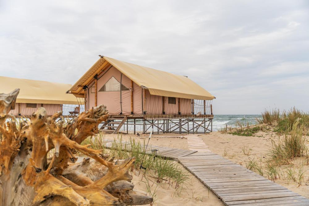 Уютный Тент-хаус в 50-ти метрах от воды на морском берегу с белоснежным песком и экологически чистой водой. Отлично подходит для романтического отдыха с любимым человеком или спокойного отдыха с семьей. Гостей ждет безумно красивый вид на море с личной террасы, песчаные дюны, шум волн и незабываемые алые закаты балтийского побережья. В шале персональный душ и туалет со всем необходимым для личной гигиены находится в самом Тент-хаусе. Внутри Тент-хауса удобный продуманный интерьер, включающий в себя: сундук с замком и вешалку для вещей; большую двуспальную кровать; диванчик с дополнительным спальным местом; столик со стульями; холодильник; бутилированная питьевая вода. Электроника: мини-холодильник. Ванная комната: унитаз, душевая кабина, раковина. Внешняя территория и вид из окон: терраса, вид на море. Отдельный вход в номер, панорамные окна. Высокие потолки. Кровать «Queen size», зеркало, стол, стулья, эксклюзивная мебель, шкаф для одежды. Бутилированная вода, стаканы.