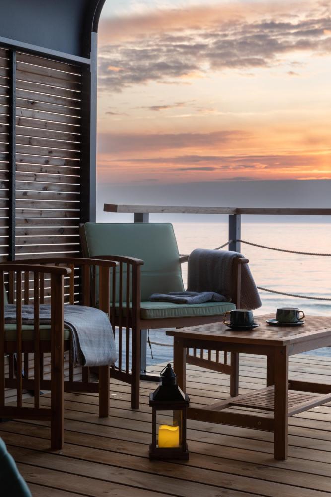 Уютное круглогодичное Бунгало на самом побережье Балтики всего в 50 метрах от моря. Отлично подходит для романтического отдыха с любимым человеком или спокойного отдыха с семьей. Гостей ждет безумно красивый вид на море с личной террасы, песчаные дюны, шум волн и незабываемые алые закаты балтийского побережья. Электроника: мини-холодильник. Ванная комната: унитаз, душевая кабина, раковина. Внешняя территория и вид из окон: терраса, вид на море. Высокие потолки. Отдельный вход в номер, панорамные окна. Кровать «Queen size», зеркало, стол, стулья, эксклюзивная мебель, шкаф для одежды. Бутилированная вода, стаканы.