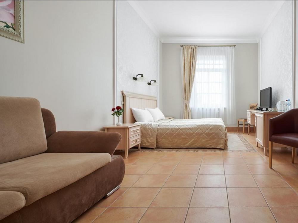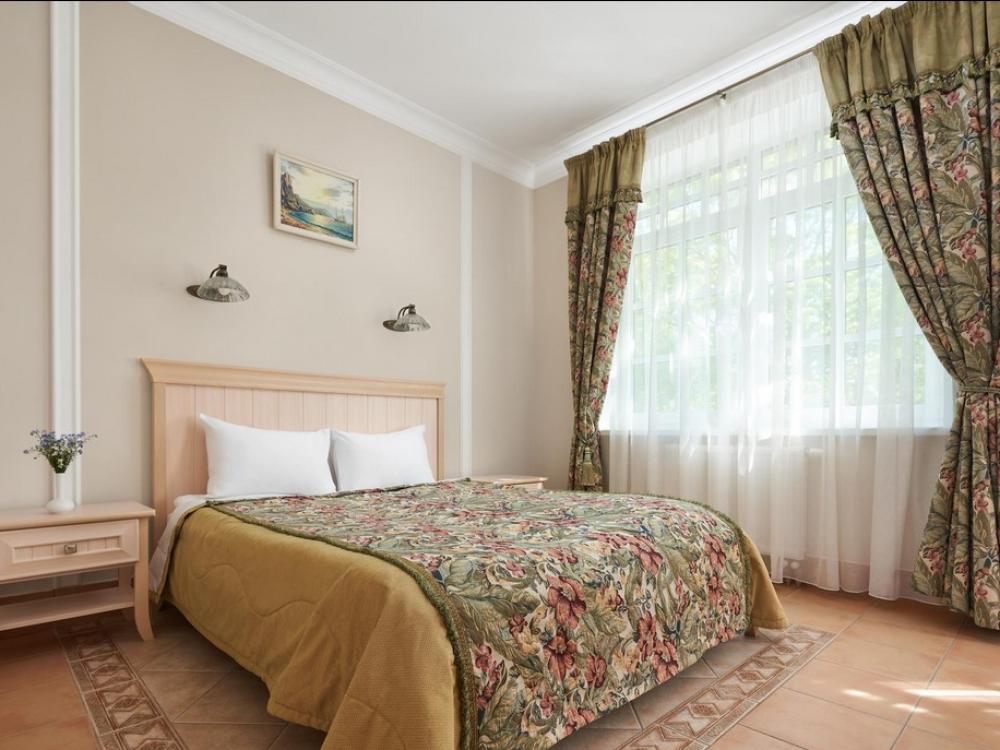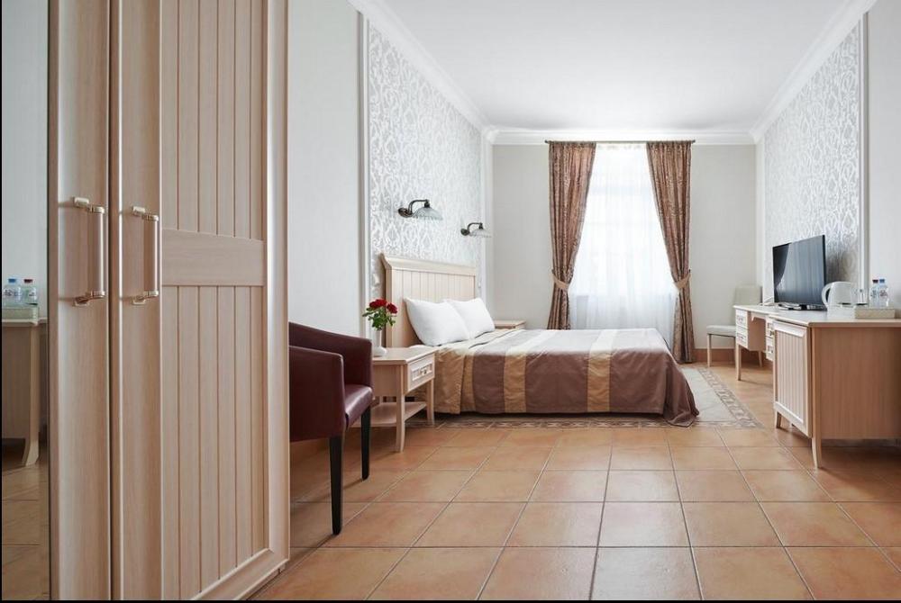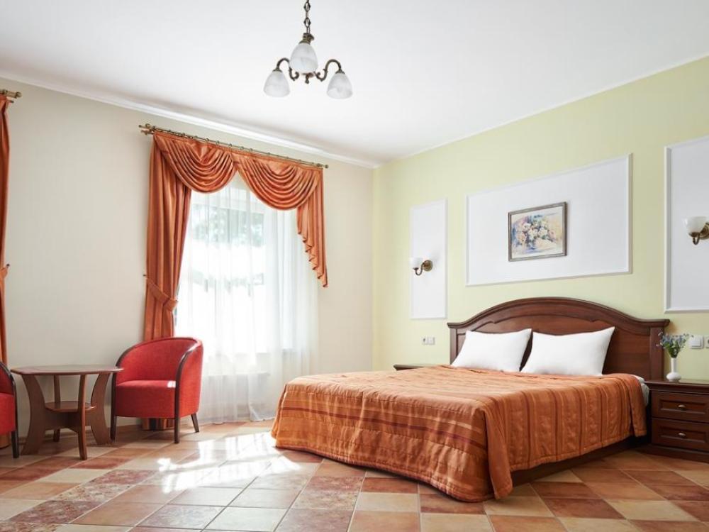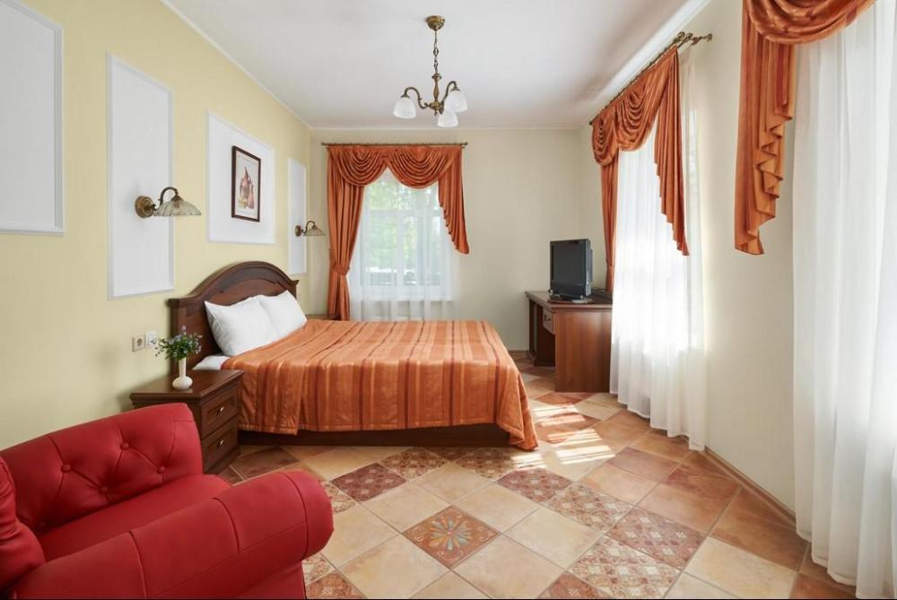 Стандартный двухместный номер состоит из комнаты, прихожей и ванной комнаты, площадь 30-35 кв.м. Номер меблирован по евростандарту и оборудован всем необходимым для комфортного отдыха. Двуспальная кровать, прикроватные тумбочки, кресло, журнальный столик, телевизор, телефон, холодильник, бесплатный Wi-Fi. В прихожей имеется шкаф для одежды, зеркало, губка для обуви, тапочки. В ванной комнате: расширенный набор полотенец, фен, шапочка для душа, мыло, гель для тела, шампунь, мыло, туалетная бумага.