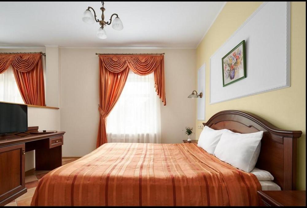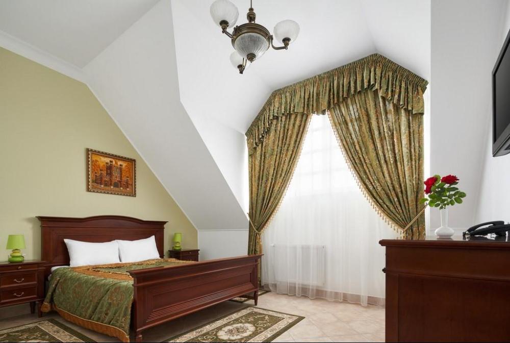 Двухместный стандартный номер состоит из комнаты, прихожей и ванной комнатой, площадь 30-35 кв. м. Номер меблирован по евростандарту и оборудован всем необходимым для комфортного отдыха. Номер оборудован одной двуспальной кроватью, прикроватными тумбочками, креслом, журнальным столиком, телевизором, телефоном, холодильником, бесплатный Wi-Fi. В прихожей имеется шкаф для одежды, зеркало, губка для обуви, тапочки. В ванной комнате: расширенный набор полотенец, фен, шапочка для душа, мыло, гель для тела, шампунь, мыло, туалетная бумага.