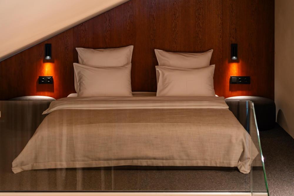 Двухместный двухуровневый дизайнерский номер мансардного типа общей площадью 30 кв.м., выполненный из натуральных, экологичных и безопасных материалов премиального качества. Оборудован мини-кухней с микроволновой печью, кофемашиной, чайником, набором посуды. В номере окна только мансардные в потолок.