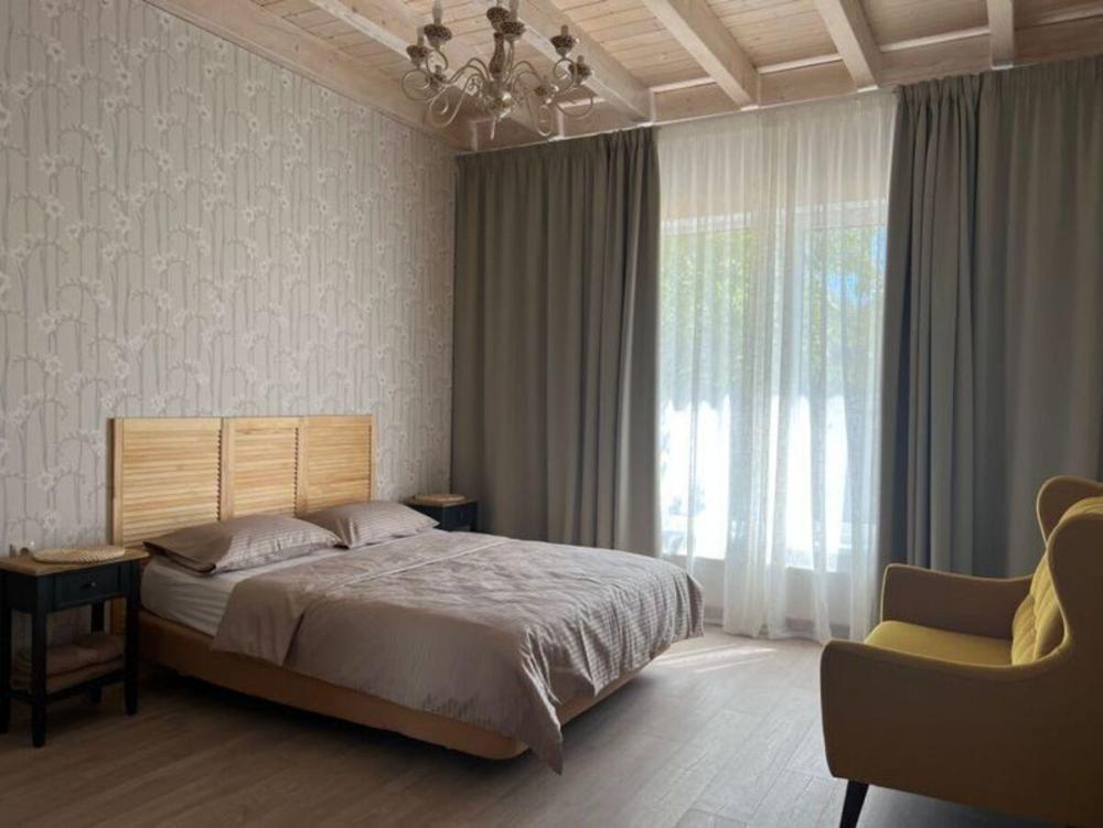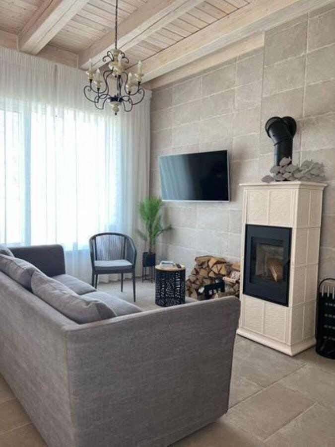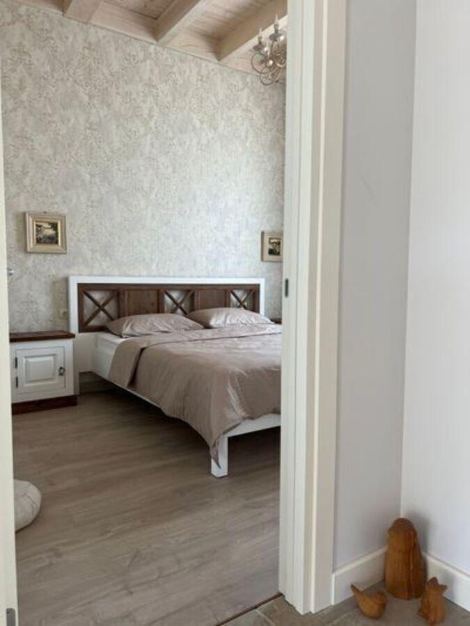 Уютный коттедж для семейного отдыха. В доме открытая терраса, кухня-столовая, 2 спальни, ванная комната. Кухня оборудована техникой: плита, микроволновая печь, холодильник, чайник, посуда, столовый текстиль. Дополнительные удобства и услуги: зона барбекю, два шезлонга, бесплатный Wi-Fi, бесплатная парковка на 2 машины, сушилка для одежды, утюг и гладильные принадлежности.