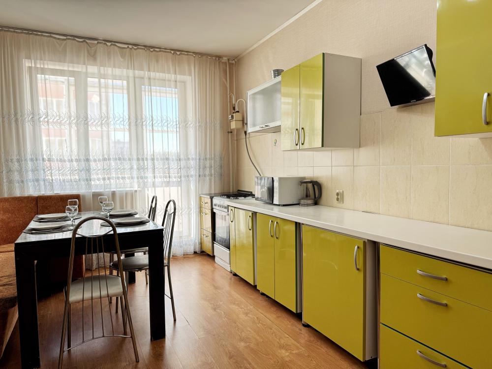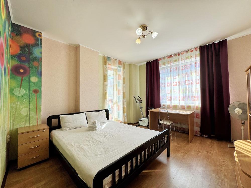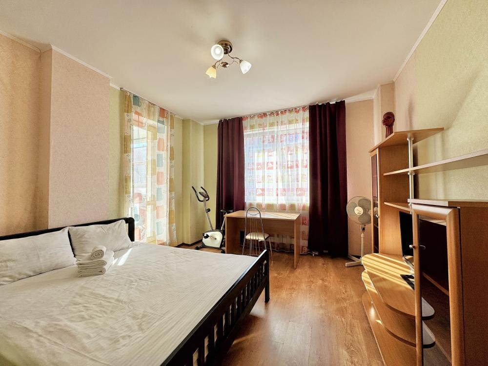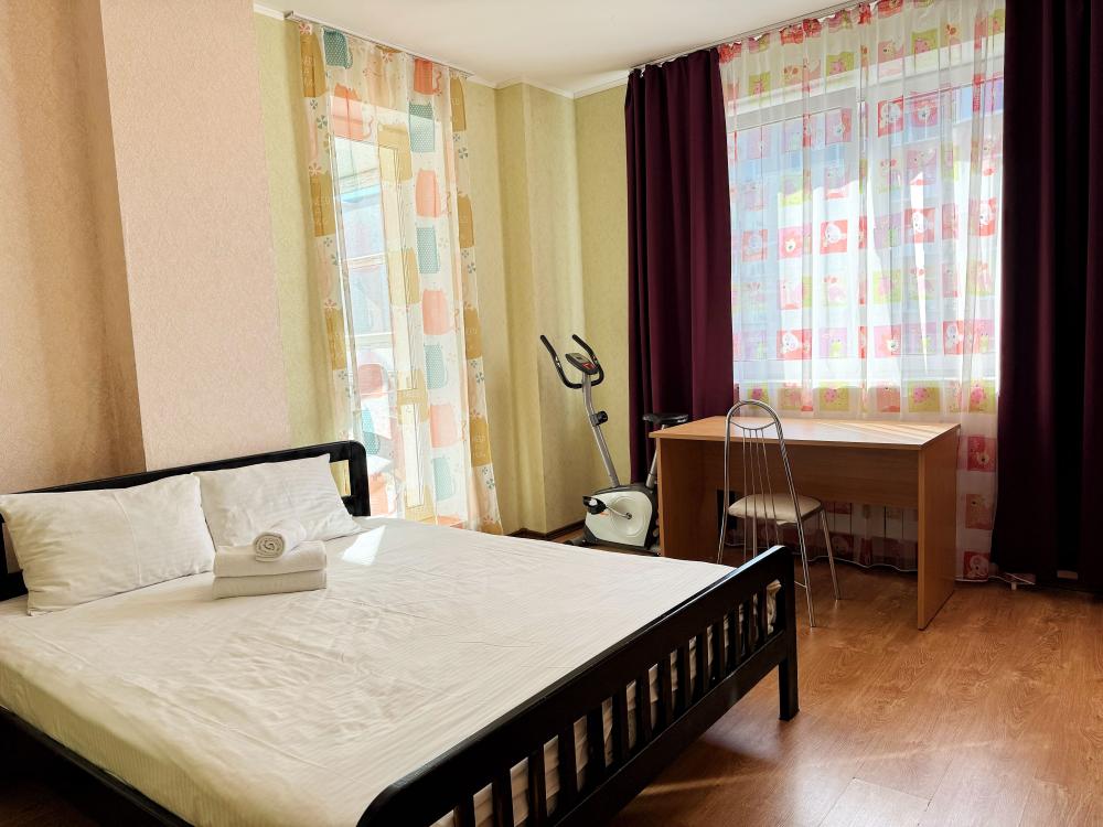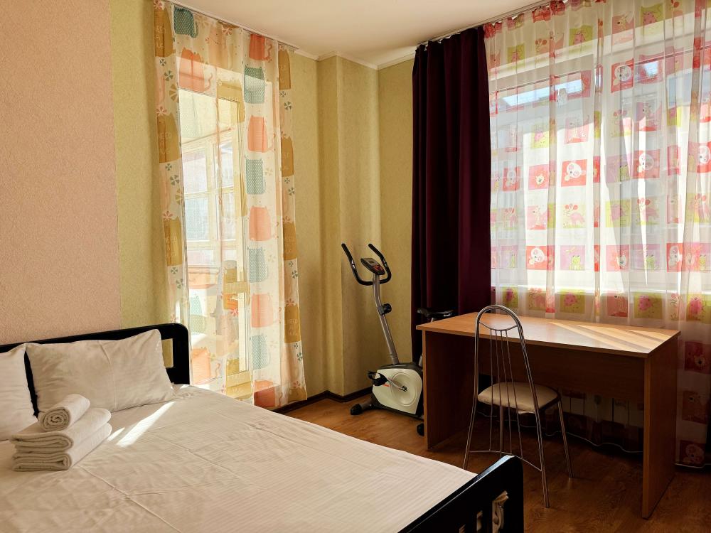 Просторные 3-комнатные апартаменты 98м2, в самом центре города. В квартире есть большой ЖК телевизор со стерео-системой, тренажерный велосипед, рабочее место, кондиционер, два просторных балкона. Этаж 4 из 9. Кухня имеет полное техническое оснащение: холодильник, плита, микроволновая печь, посудомоечная машина, чайник. Кухня имеет все самое необходимое для приготовления пищи, посуду и столовые приборы. Рабочий кабинет с выходом на просторный балкон оснащен рабочим столом, компьютерным креслом, диван-кроватью. Гостиная комната с ЖК телевизором со стерео-системой, оборудована кондиционером -пожалуй, создана специально для тёплых семейных вечеров за просмотром любимых фильмов! Мебель в зоне мини-кинозала: диван-кровать, уютные кресла и журнальный столик. Спальная комната с комфортной двуспальной кроватью с выходом на балкон. Характеристики: 3 комнаты, кухня с обеденной зоной, большой гардеробный шкаф, 2 балкона, ванная комната, дополнительный гостевой туалет. 8 спальных мест: 2 Двуспальных кровати 160 см в изолированных комнатах ,заправленные чистым бельем из прачечной, 2 диван-кровати и евро-раскладушка. Круглосуточное бесконтактное заселение. Во всех наших апартаментах предусмотрено самостоятельное удаленное заселение. После внесения предоплаты мы отправим подробную инструкцию по заселению на WhatsApp. Время заселения начинается с 14 часов. Время выезда до 12 часов. При бронировании Вы можете указать удобное для Вас время заезда и выезда. При возможности, мы рассмотрим Ваши пожелания). Обязателен залог за квартиру 3000p возвращается в день выезда. Бронирование осуществляется по частичной предоплате. Для оформления бронирования необходимо предъявить действительное удостоверение личности с фотографией. Апартаменты подходят для мало-мобильных групп. Заселение возможно с 21 года. *проживание с животными согласовывается дополнительно. При проживании с животными взимается дополнительный сервисный сбор