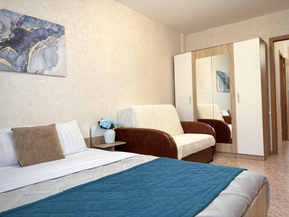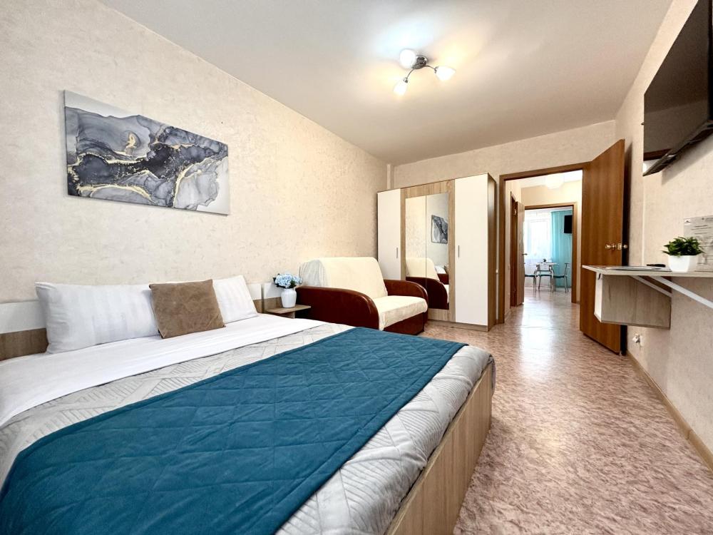 Просторная квартира с одной спальней и кухней-гостиной расположена в новом огороженном доме рядом с Волгой. В апартаментах есть все необходимое для комфортного проживания: постельное белье, полотенца, бесплатный WiFi, телевизор, фен, мультиварка, электрочайник, индукционная плита, утюг, гладильная доска, стиральная машина, микроволновая печь, холодильник, мини-аптечка.