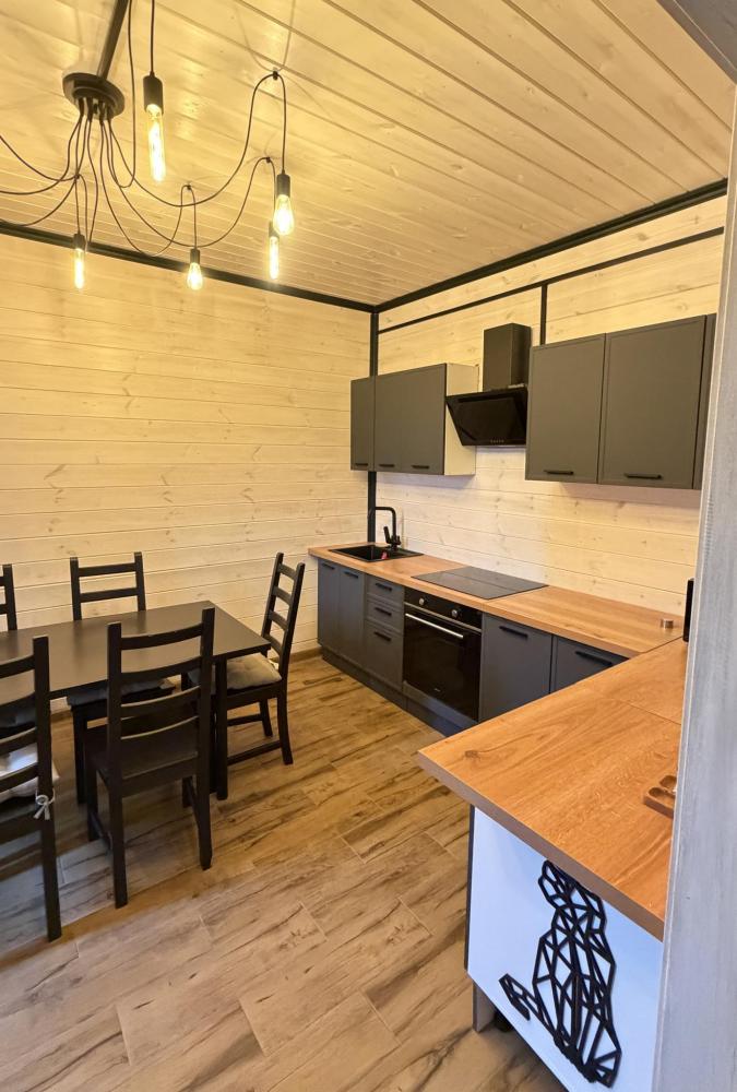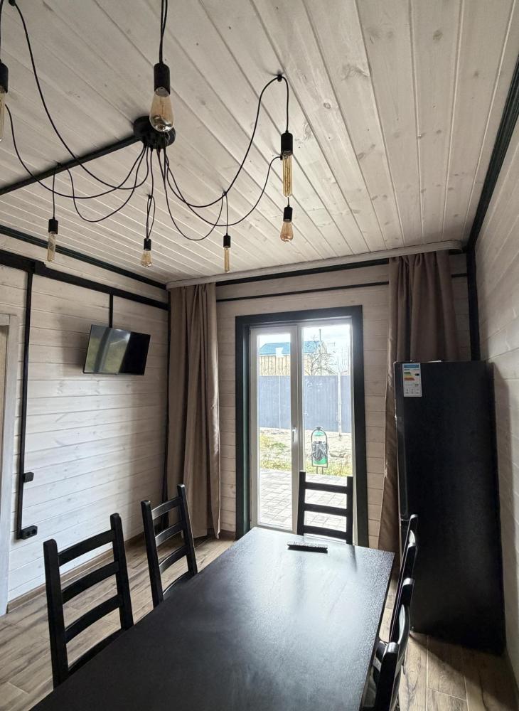 Шале для проживания 4 человек. В шале : двуспальная кровать, 2 кресло-кровати, санузел, холодильник, чайник, вентилятор, смарт ТВ , Wi-Fi, постельное белье, полотенца, предметы личной гигиены, вода, чай, сахар. В шале имеется камин. Рядом находится беседка и мангал
