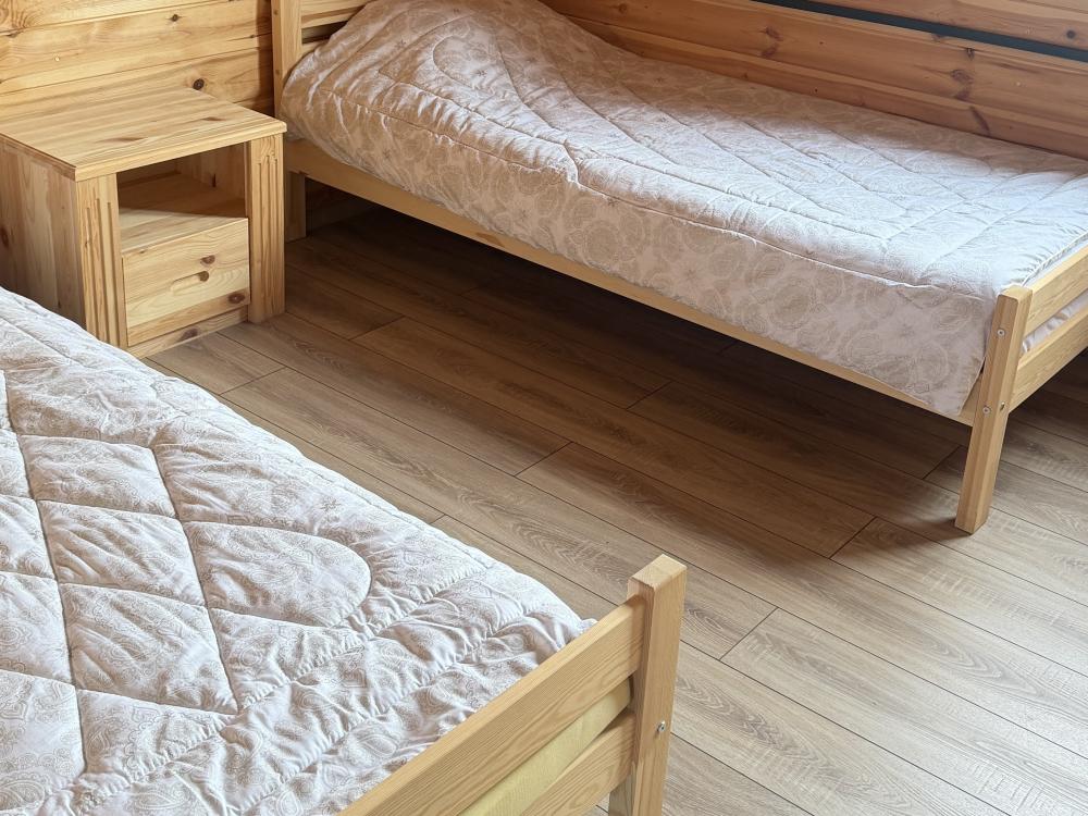 Коттедж стандарт с баней - 125 кв.м. Размещение возможно до 12 человек. В доме на первом этаже баня, на втором две комнаты. В доме имеется двуспальная кровать, четыре односпальные кровати, холодильник, чайник, микроволновка, смарт ТВ , Wi-Fi, постельное белье, полотенца, предметы личной гигиены, вода, чай, сахар. Рядом находится беседка и мангал