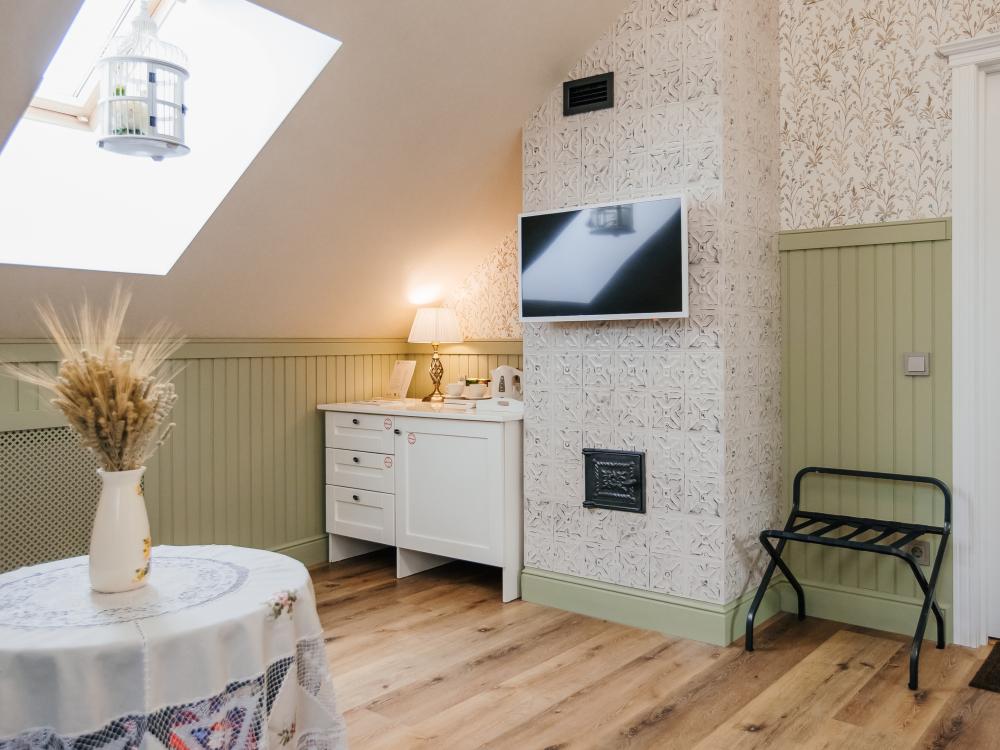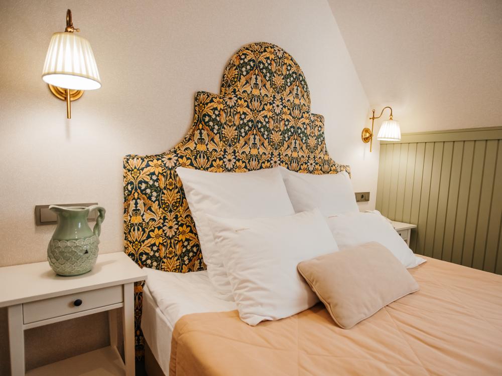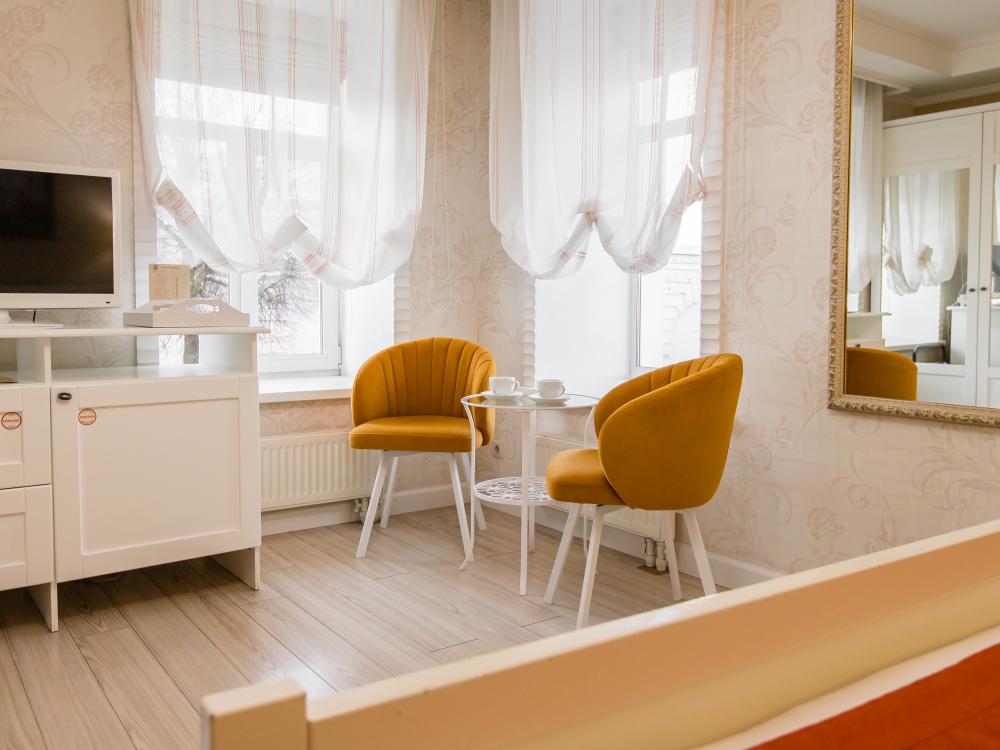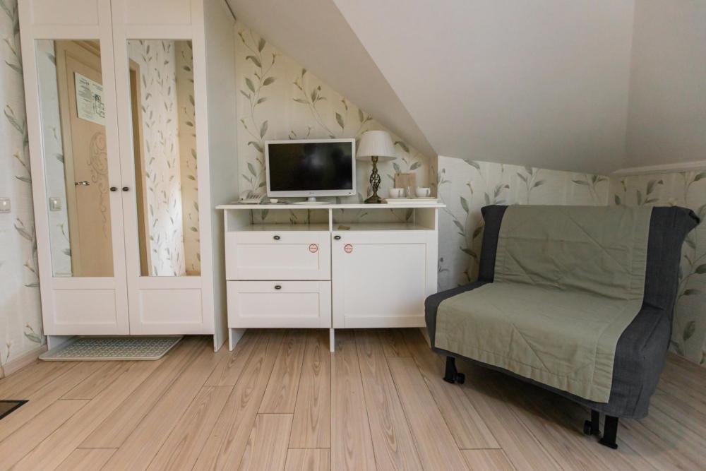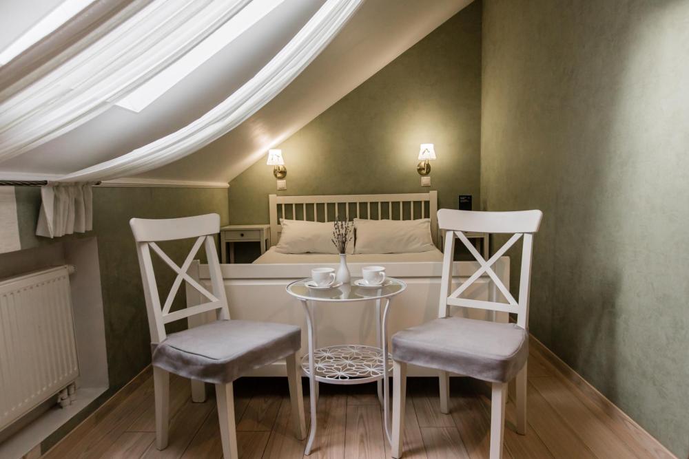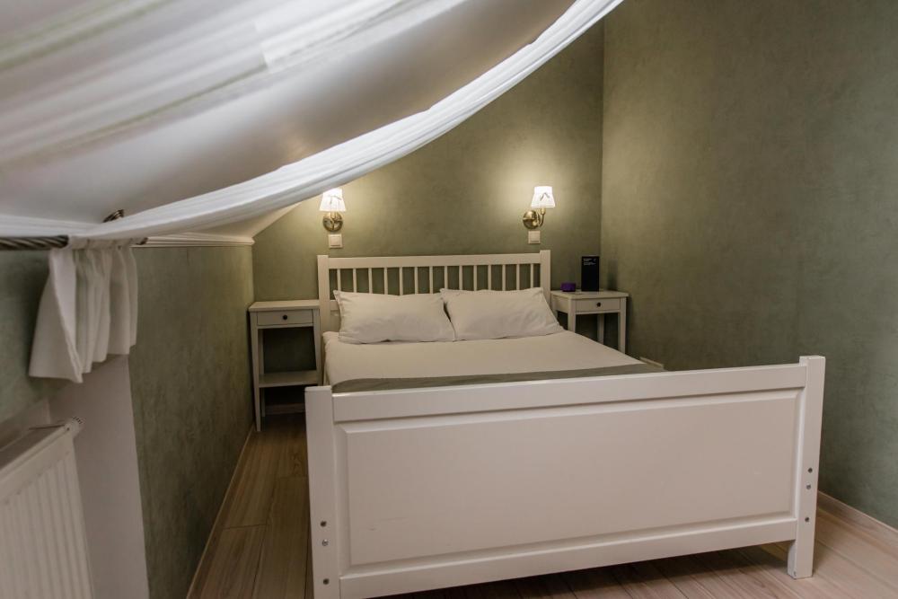 Светлый двухкомнатный номер включает в себя спальню с широкой двуспальной кроватью и гостиную комнату. Расположен на третьем (мансардном) этаже отеля. Площадь номера: 27 кв. м. Размер кровати - 160*200 см. В номере: кондиционер и телевизор с плоским экраном (в каждой комнате), шкаф, холодильник, мини-бар, электрочайник, телефон, доступ в Интернет Wi-Fi или сетевое подключение, раскладной диван, халаты и тапки. Современная ванная комната оснащена ванной, феном, косметическими принадлежностями, индивидуальным водонагревателем. В номере возможно размещение четырех человек: 2 - на основном месте и 2 - на дополнительном месте - раскладном двуспальном диване.