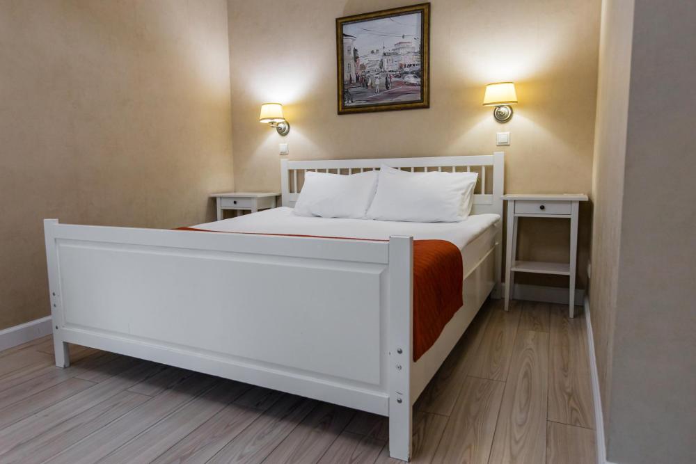 Светлый номер с двуспальной кроватью. Эти номера расположены на первом и втором этажах отеля. Площадь номера: 15 кв. м. Размер кровати - 140*200 см/160*200 см. В номере: кондиционер, телевизор с плоским экраном, шкаф, холодильник, мини-бар, телефон, доступ в Интернет Wi-Fi или сетевое подключение, тапки. Современная ванная комната оснащена душевой кабиной, феном, косметическими принадлежностями, индивидуальным водонагревателем. В номере возможно размещение третьего человека (ребенок старше 3-х лет или взрослый) на дополнительном месте - еврораскладушке (стоимость составляет 2 000 руб./сутки).