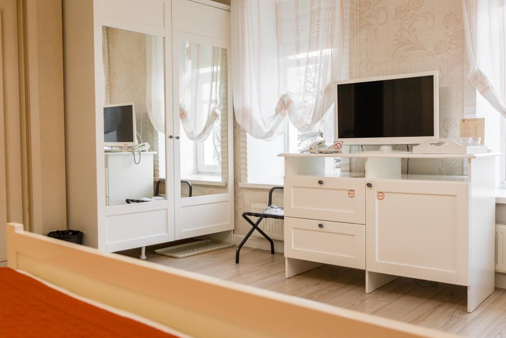 Светлый номер с раздельными кроватями. Этот номер расположен на первом этаже отеля. Площадь номера: 15 кв. м. Размер кроватей - 90*200 см. В номере: кондиционер, телевизор с плоским экраном, шкаф, холодильник, мини-бар, телефон, доступ в Интернет Wi-Fi или сетевое подключение, тапки. Современная ванная комната оснащена душевой кабиной, феном, косметическими принадлежностями, индивидуальным водонагревателем. В номере возможно размещение третьего человека (ребенок старше 3-х лет или взрослый) на дополнительном месте - еврораскладушке (стоимость составляет 2 000 руб./сутки).