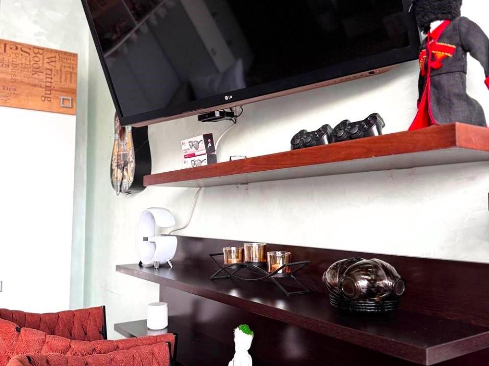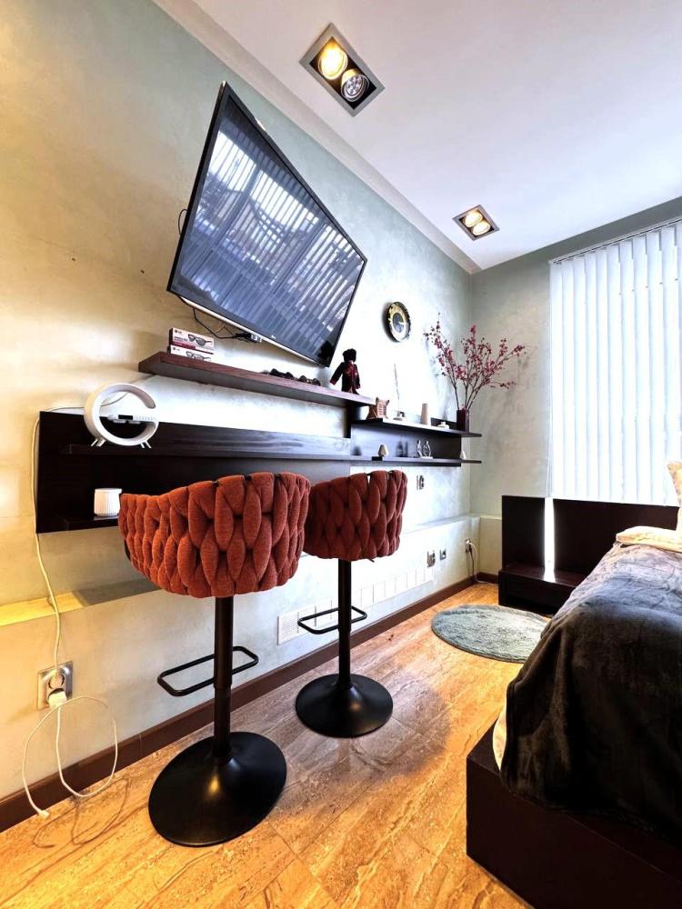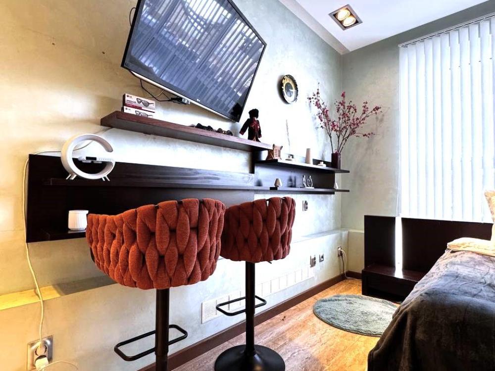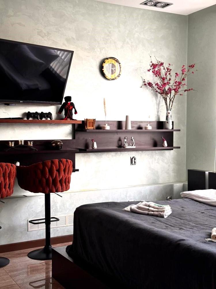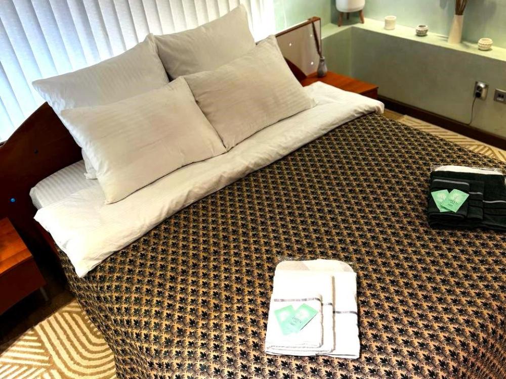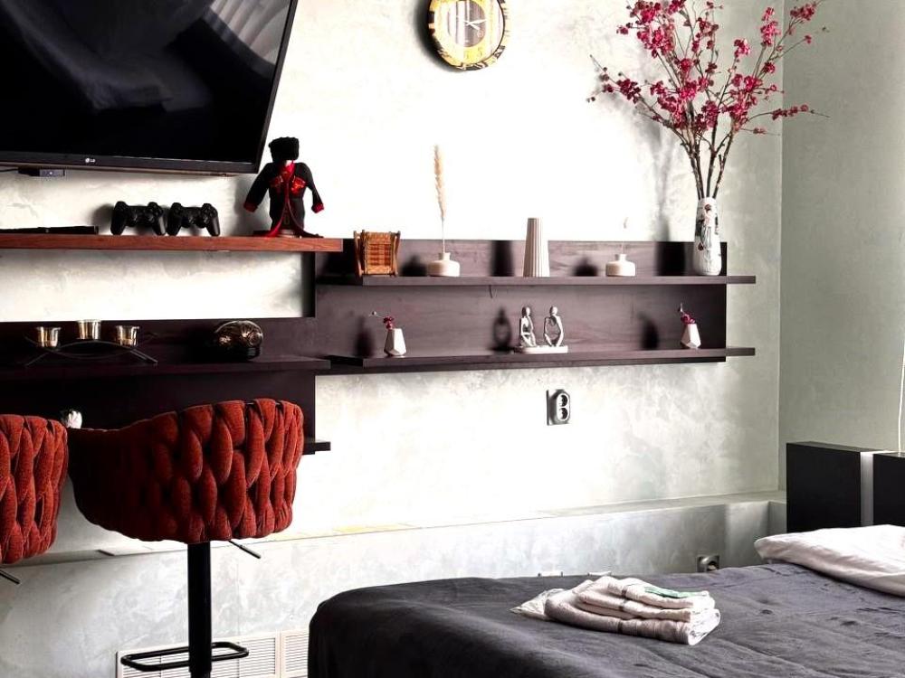 Комната - "LONDON". Подходит для размещения до 2х человек. Комната со стилистикой Лондона, с большой кроватью 180/200, с матрацом ортопедическим принимающим форму вашего тела , большим телевизором 41 дюйма, столиком и креслами из кожи. Общий санузел
