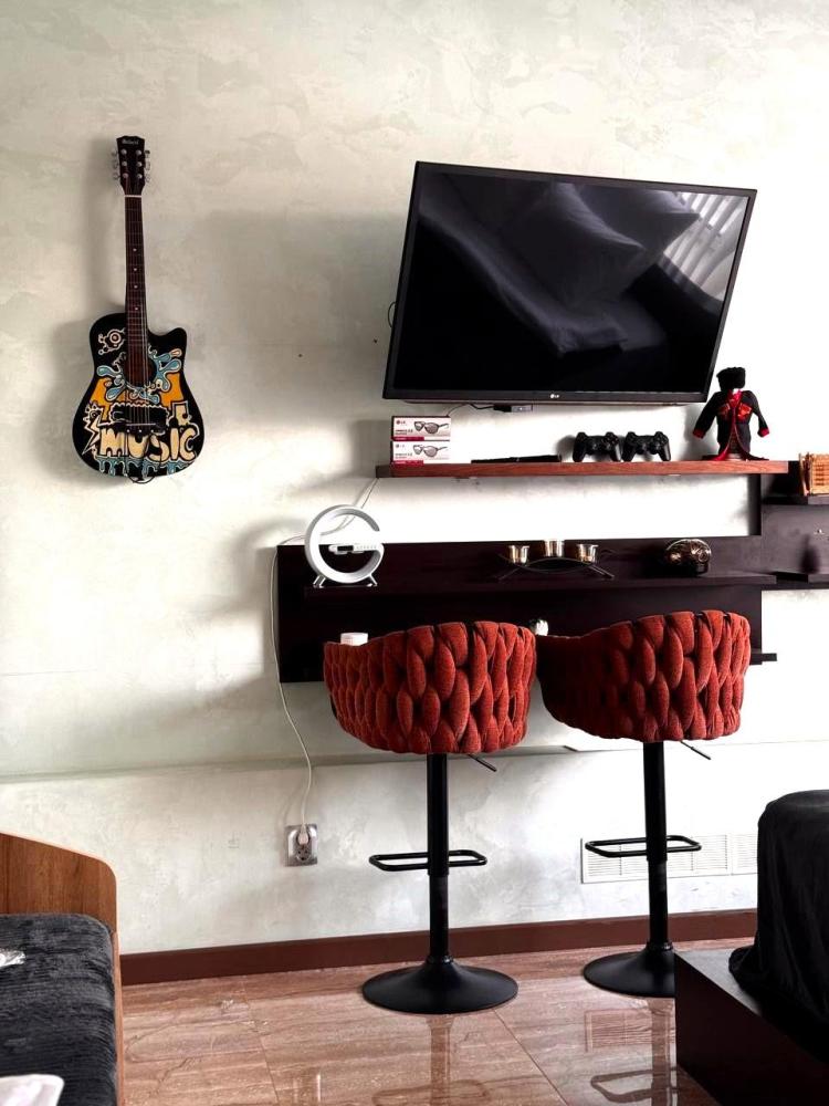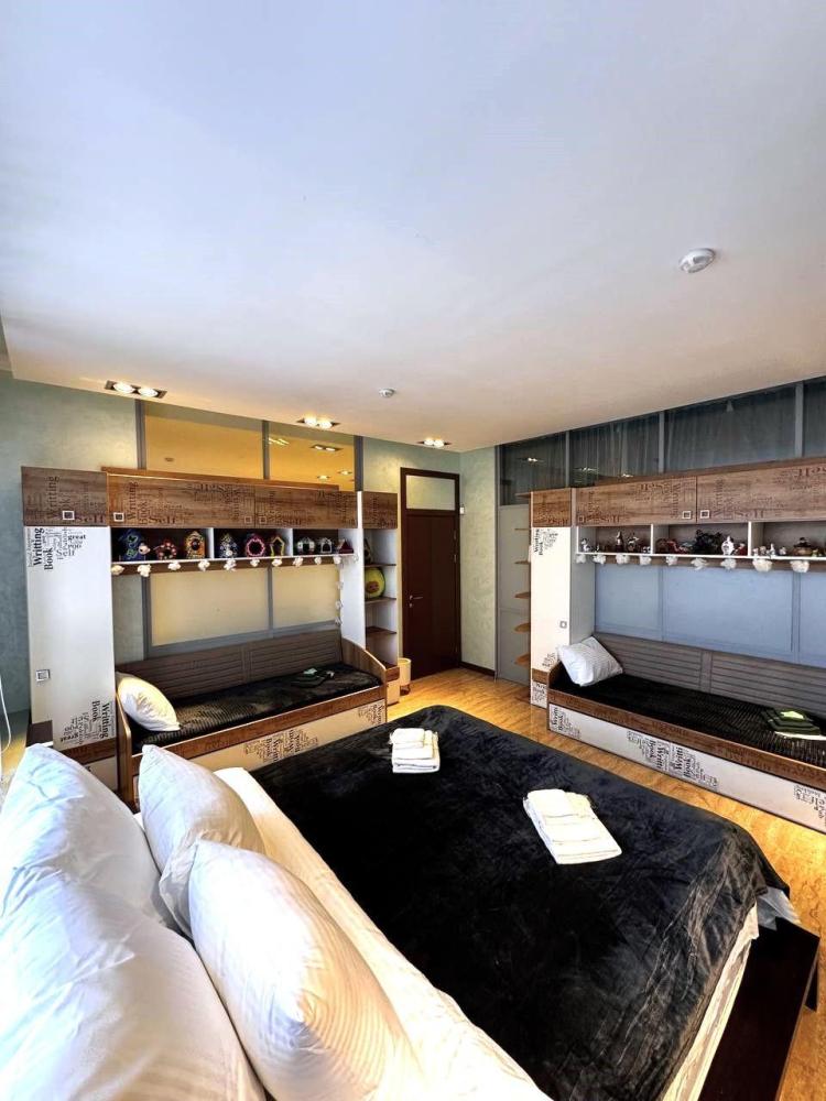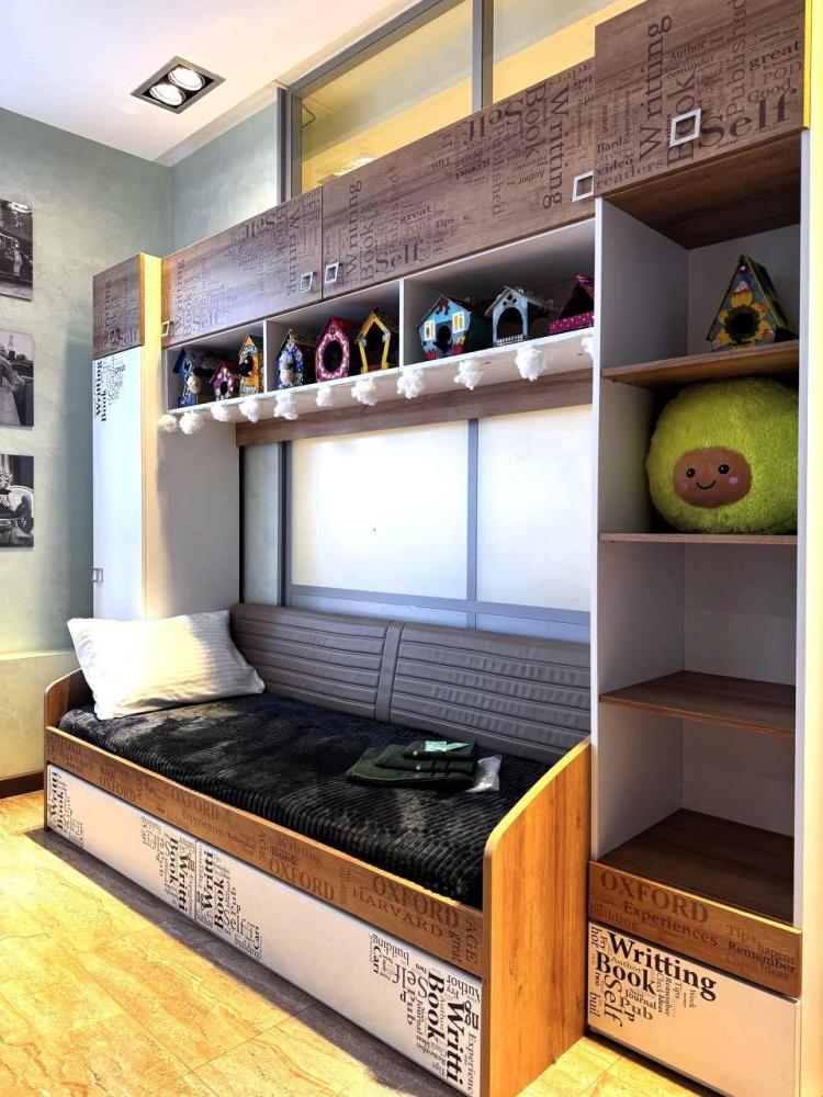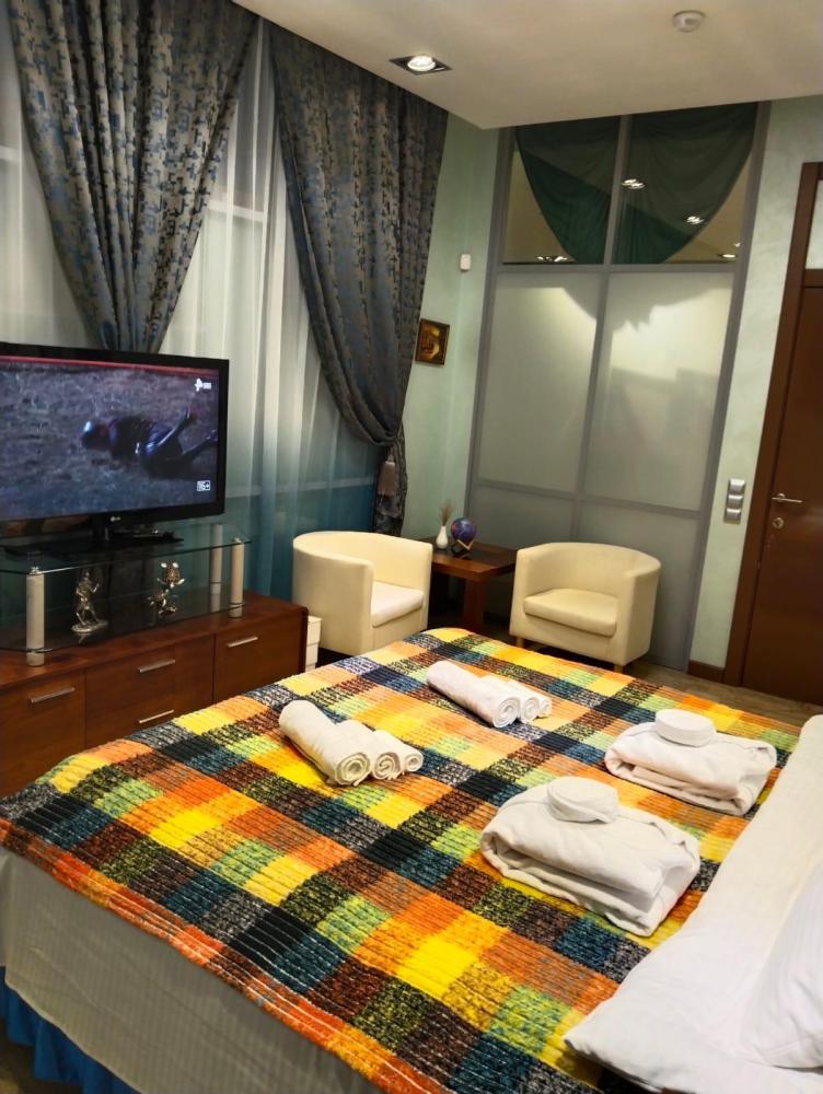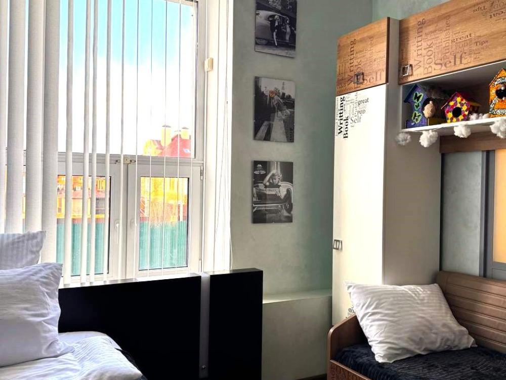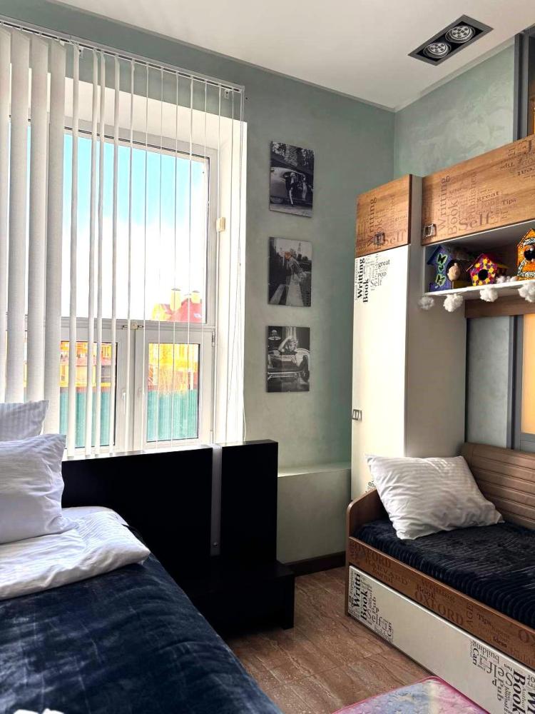 Комната - "OXFORD". Подходит для размещения до 4х человек. В комнате: мебель серии оксфорд с итальянским спальным гарнитуром с подсветкой , кроватью180/200, и две кровати 90/200, большим телевизором 47 дюйма, мини барной стойкой и 2 барными стульями, личным холодильником . Общий санузел