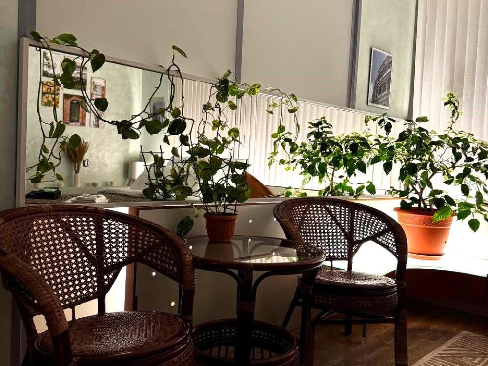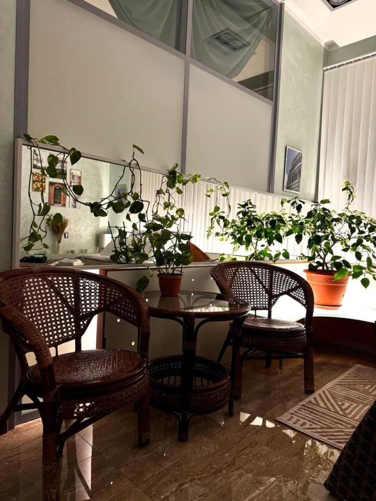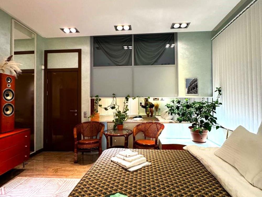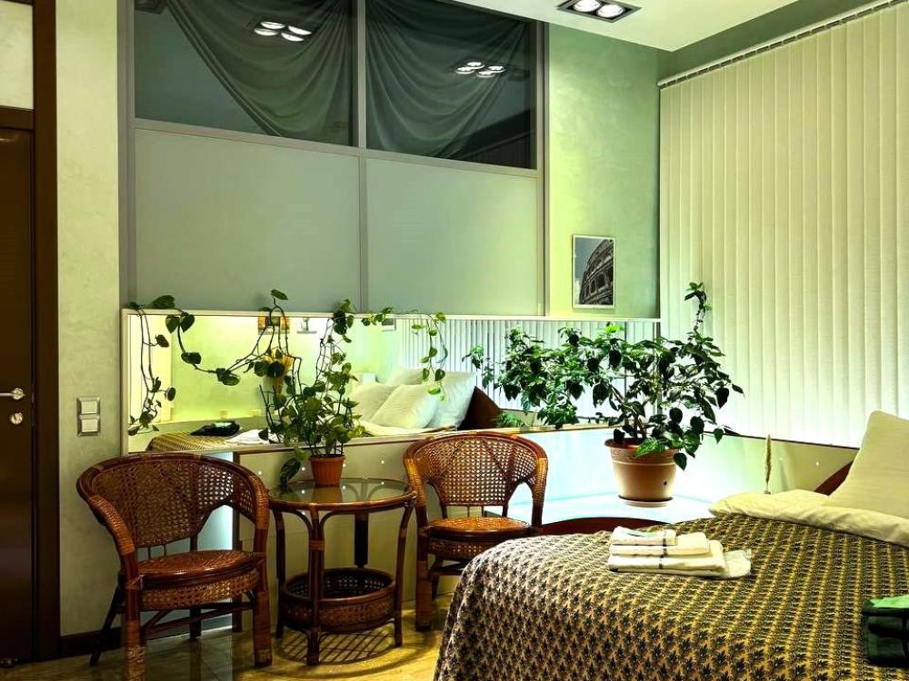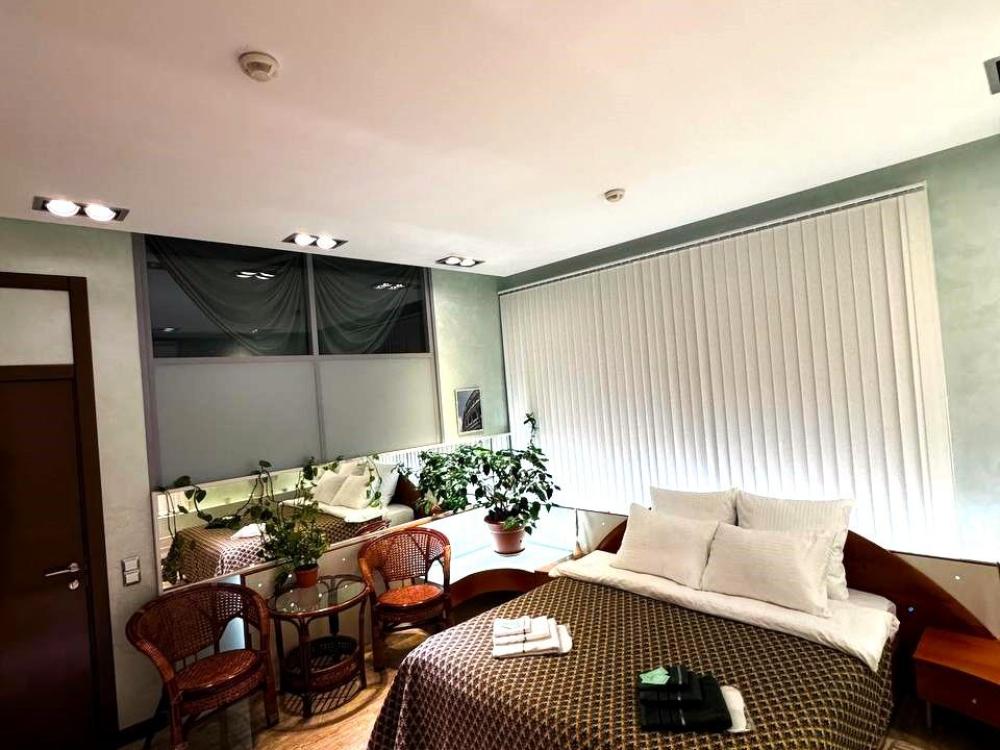 Комната - "ITALY". Подходит для размещения до 2х человек. Комната в итальянском стиле с итальянским спальным гарнитуром с подсветкой , кроватью 160/200 , большим телевизором 52 дюйма, столиком и креслами из нат. ротанга, холодильником, живыми цветами. Общий санузел