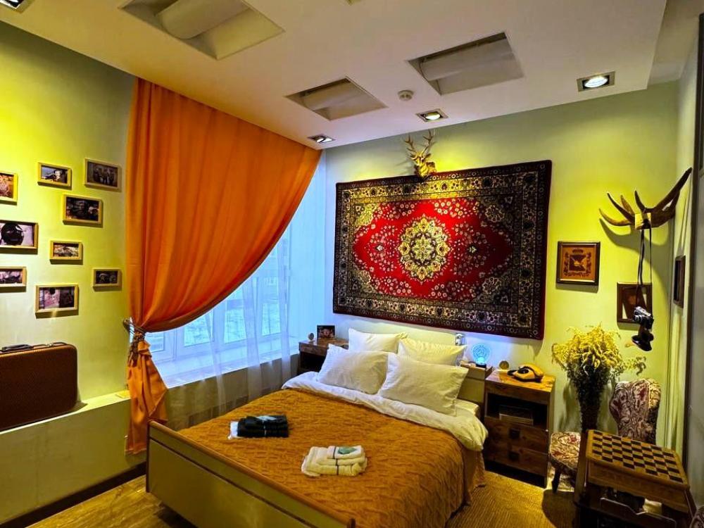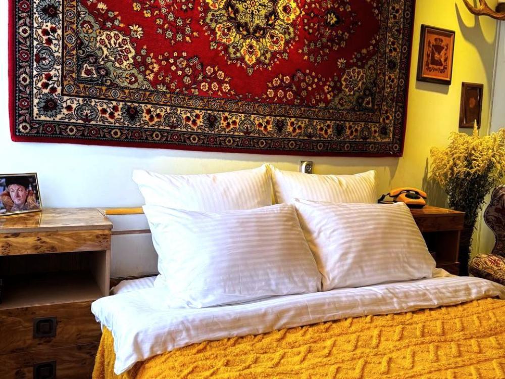 Комната "СССР". Подходит для размещения до 2х человек. Комната в стиле СССР с советским спальным гарнитуром и атрибутикой, советской кроватью 140/200 , советским телевизором ГОРИЗОНТ, столиком и креслами в советском стиле. Удобства общие.