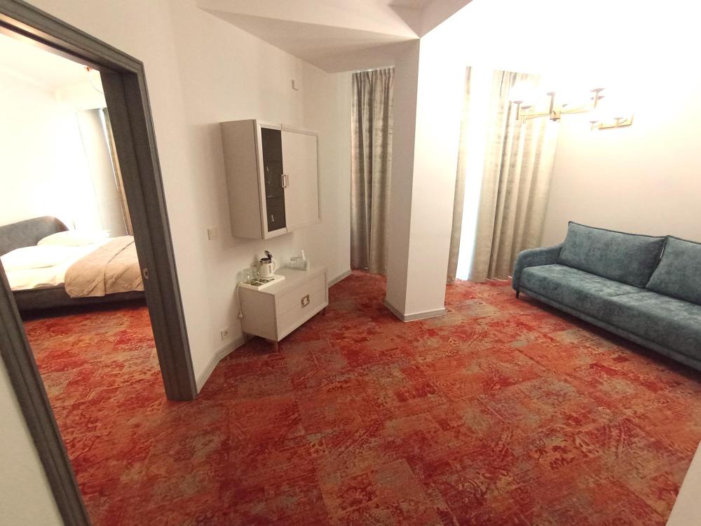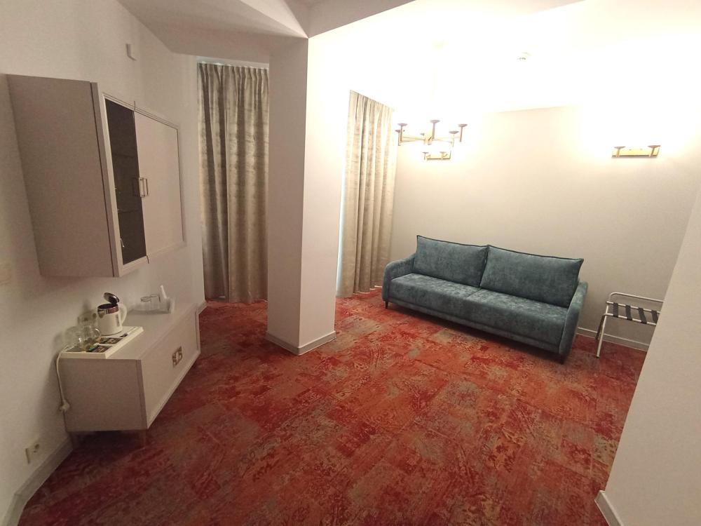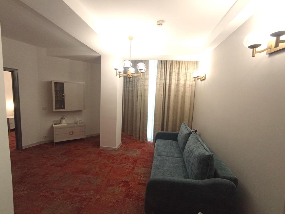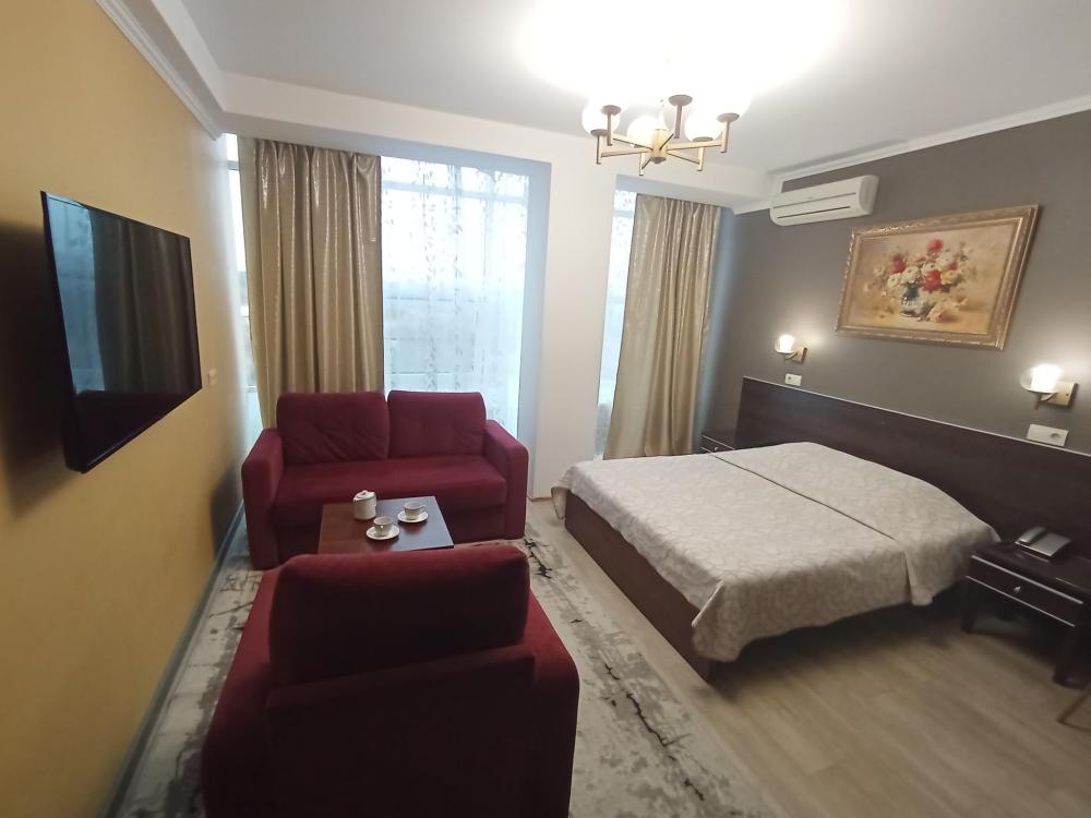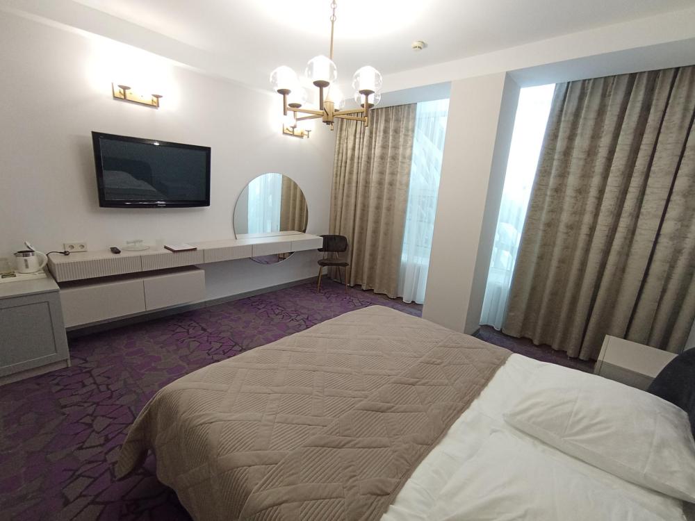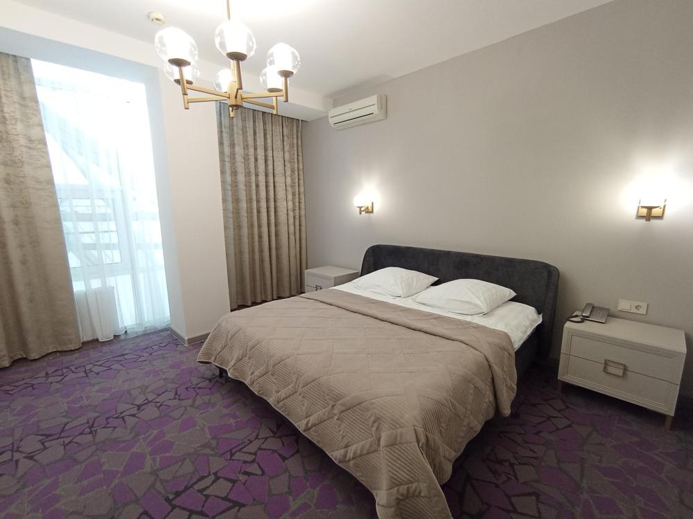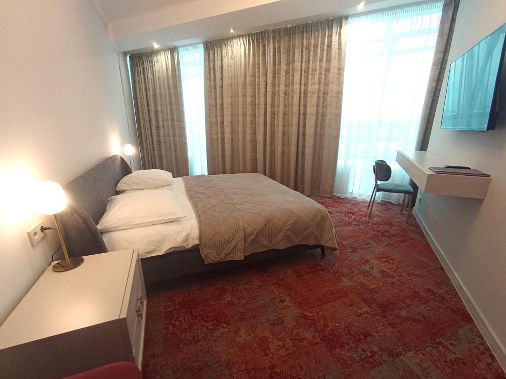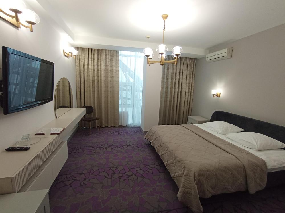 Номер Джуниор Сьют с балконом, большой двуспальной кроватью «Queen Size» и диваном. Площадь номера 36 кв./м. В номере: письменный стол и стул, телевизор LCD, телефон, мини-бар, сейф, кондиционер с индивидуальным контролем температурного режима, ванная, фен, три полотенца, тапочки, халат, набор косметических аксессуаров (мыло, гель, шампунь), бесплатный беспроводной доступ в Интернет.