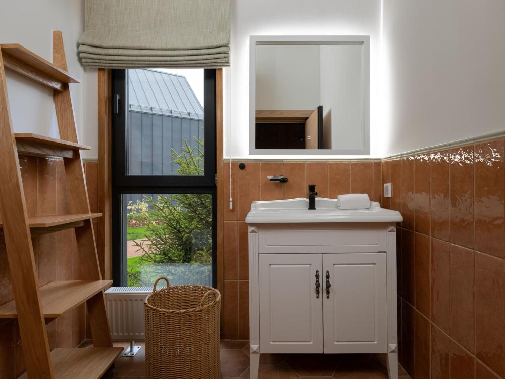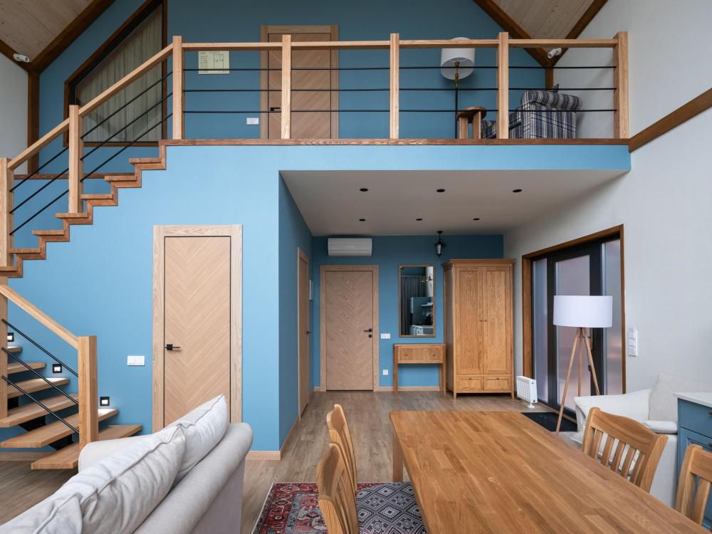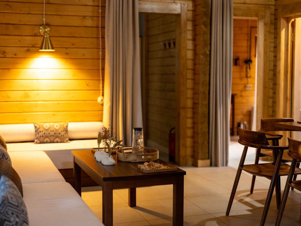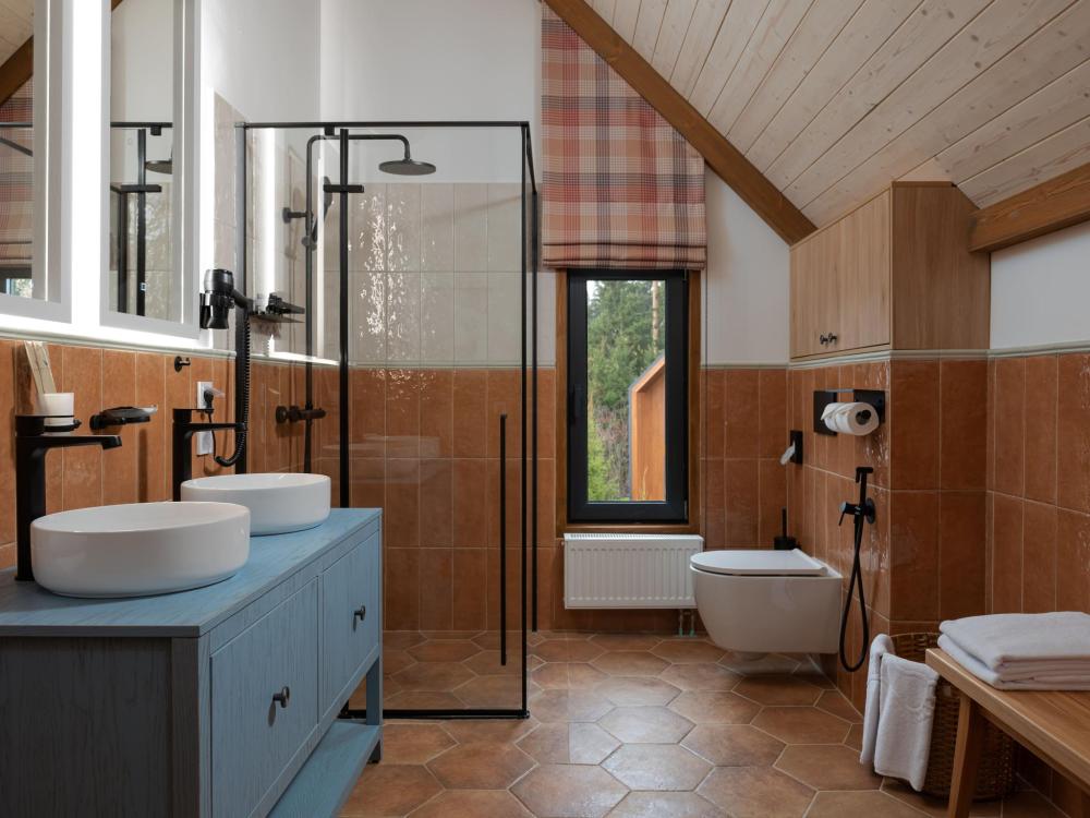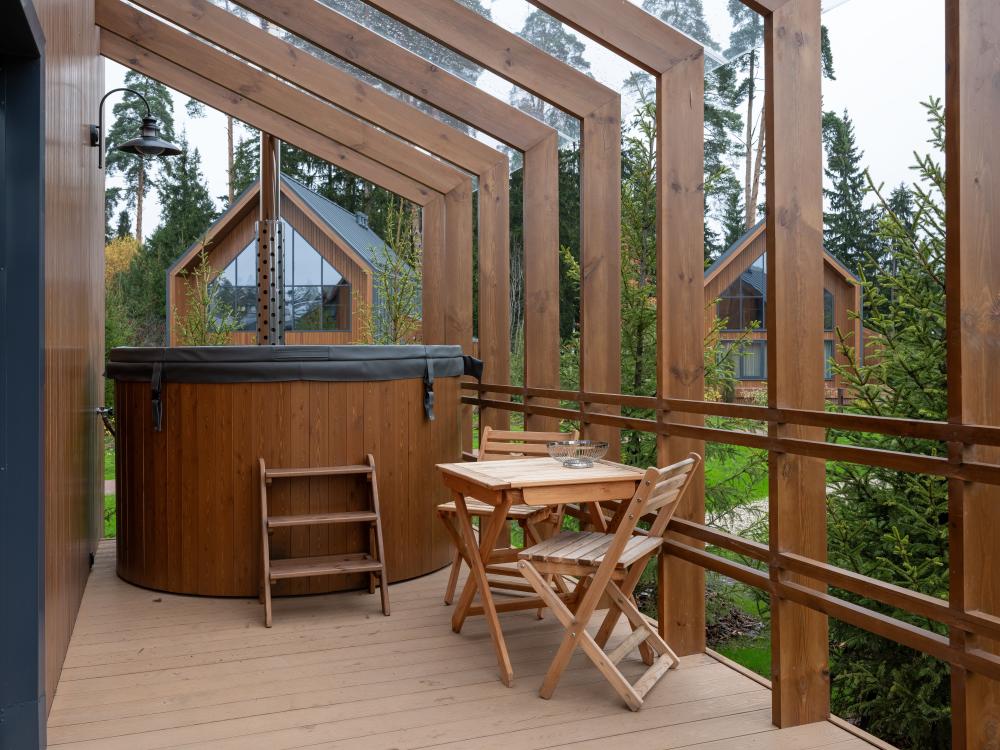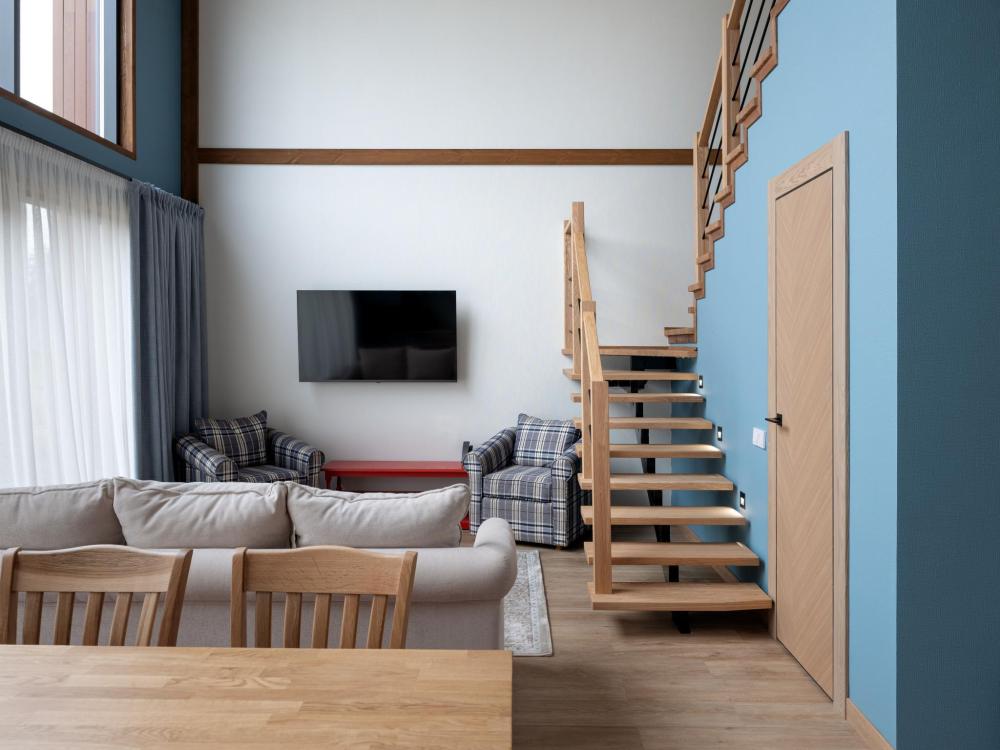 Этот дом — идеальное пространство для отдыха, где уютный интерьер гармонично сочетается с просторной террасой и подогреваемой купелью под открытым небом. Двухэтажный дом включает две комфортабельные спальни с индивидуальными ванными комнатами и просторную гостиную с кухонной зоной. Дровяная купель с подогревом превращает обычный вечер в настоящий спа-ритуал. В распоряжении гостей — кровати на выбор с анатомическими матрасами, а также меню подушек для индивидуального комфорта. Для приятного начала дня или уютного вечера в номере есть всё необходимое для приготовления чая и кофе.