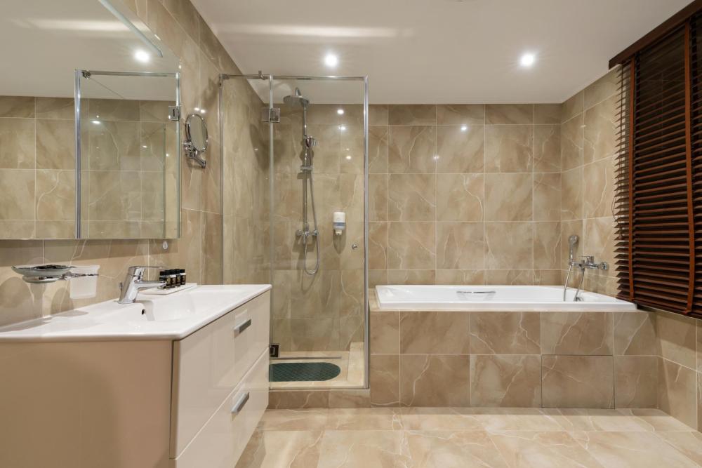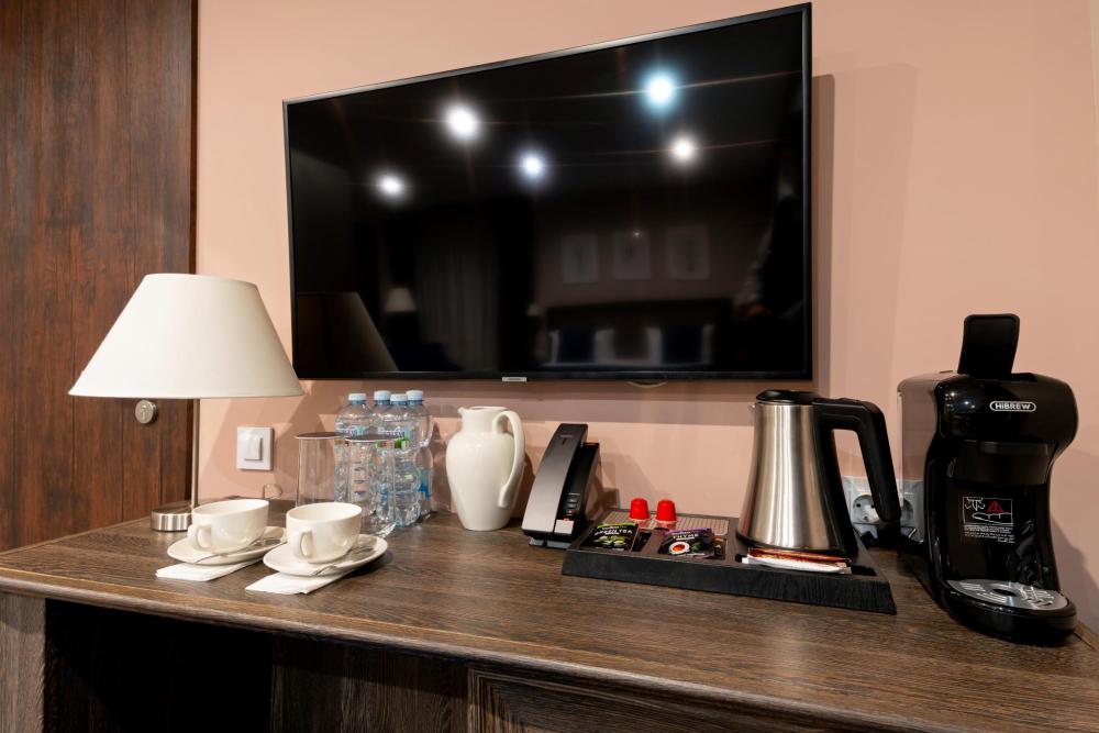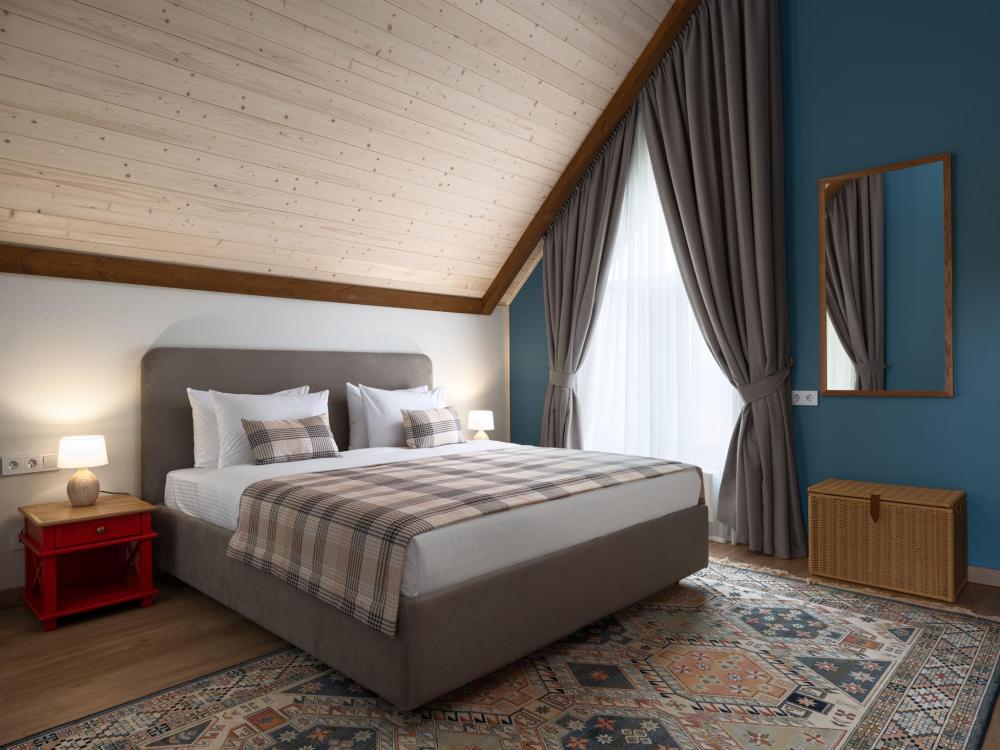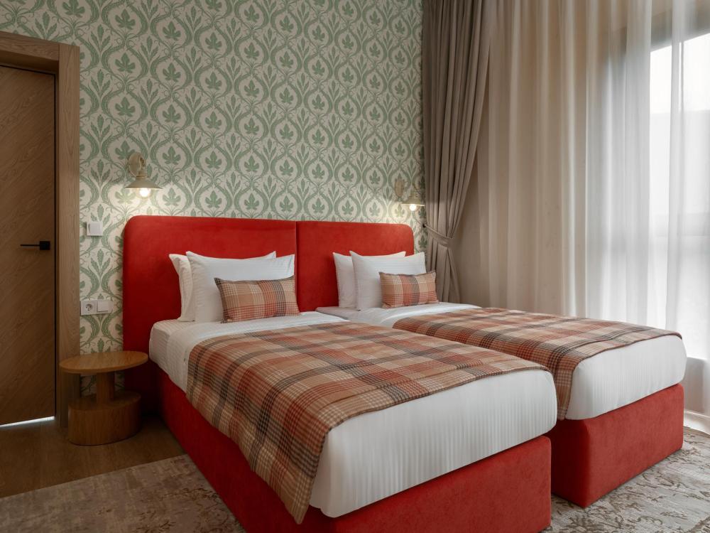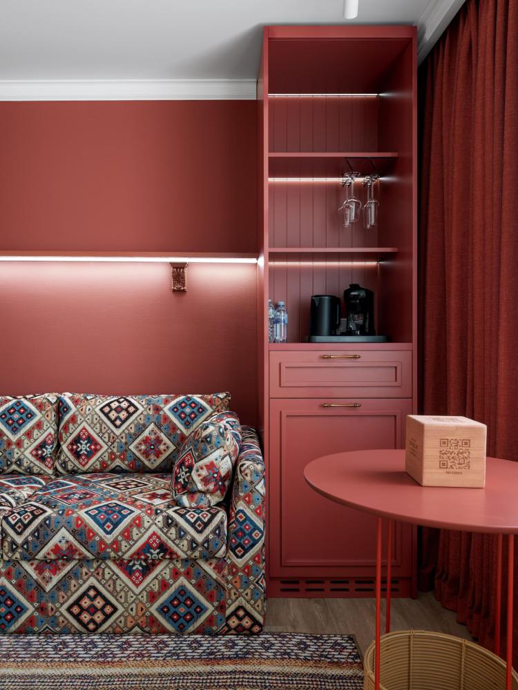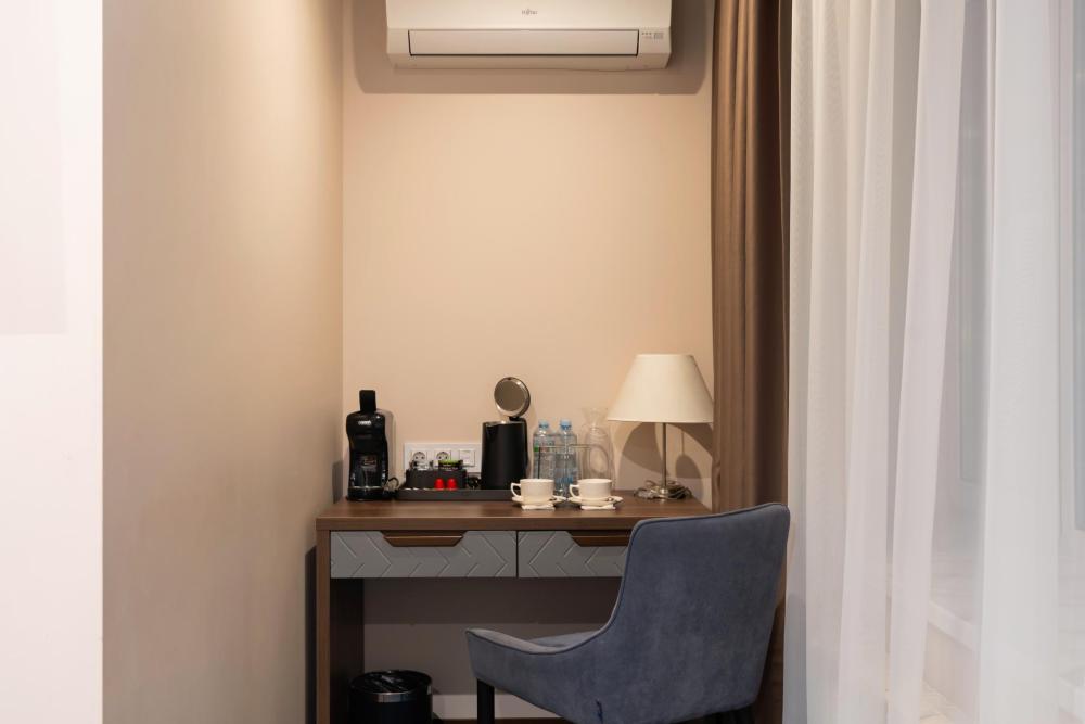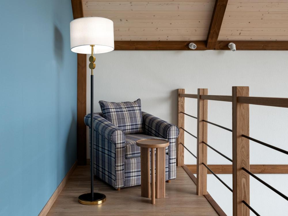 Интерьер номера сочетает атмосферу домашнего уюта с функциональностью и комфортом премиального уровня. Пространство зонировано на отдельную спальню и уютную гостиную. Оформление выполнено в современном стиле с использованием натуральных материалов. В распоряжении гостей — кровати на выбор с анатомическими матрасами, а также меню подушек для индивидуального комфорта. Рабочая зона с письменным столом и удобным креслом позволяет с комфортом поработать или провести вечер за книгой. Для приятного начала дня или уютного вечера предусмотрено всё необходимое для приготовления чая и кофе.