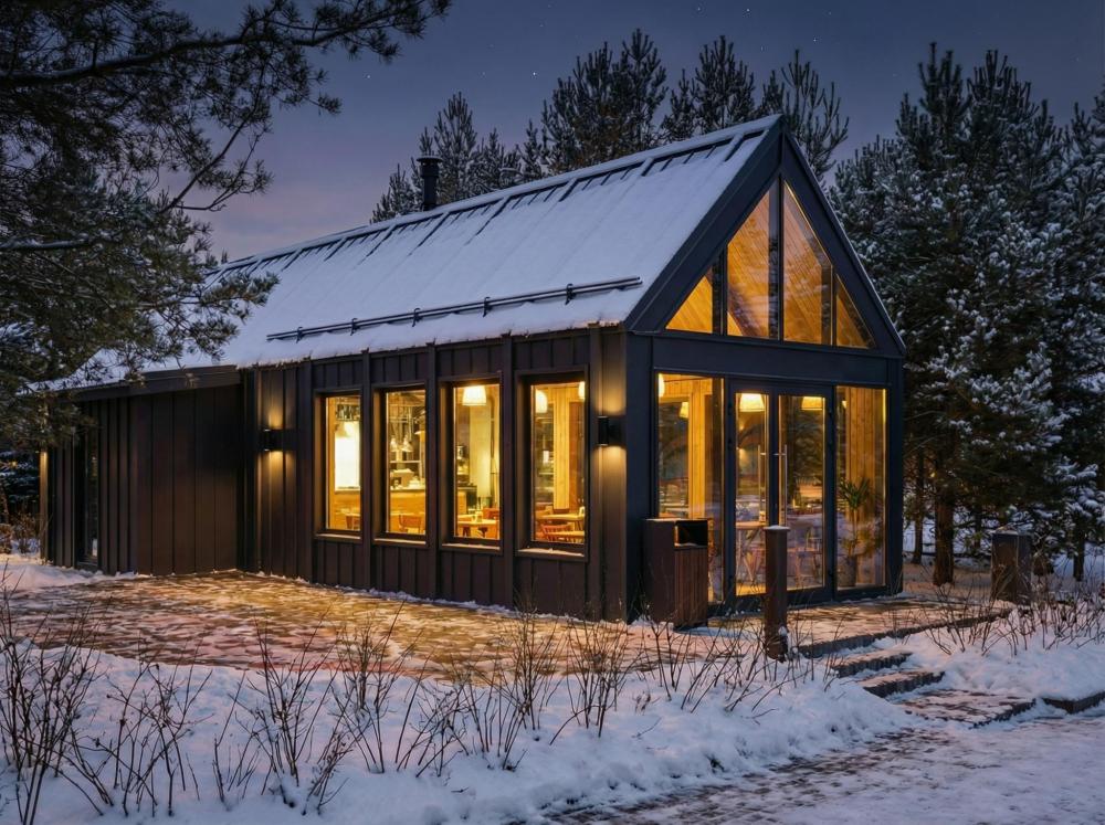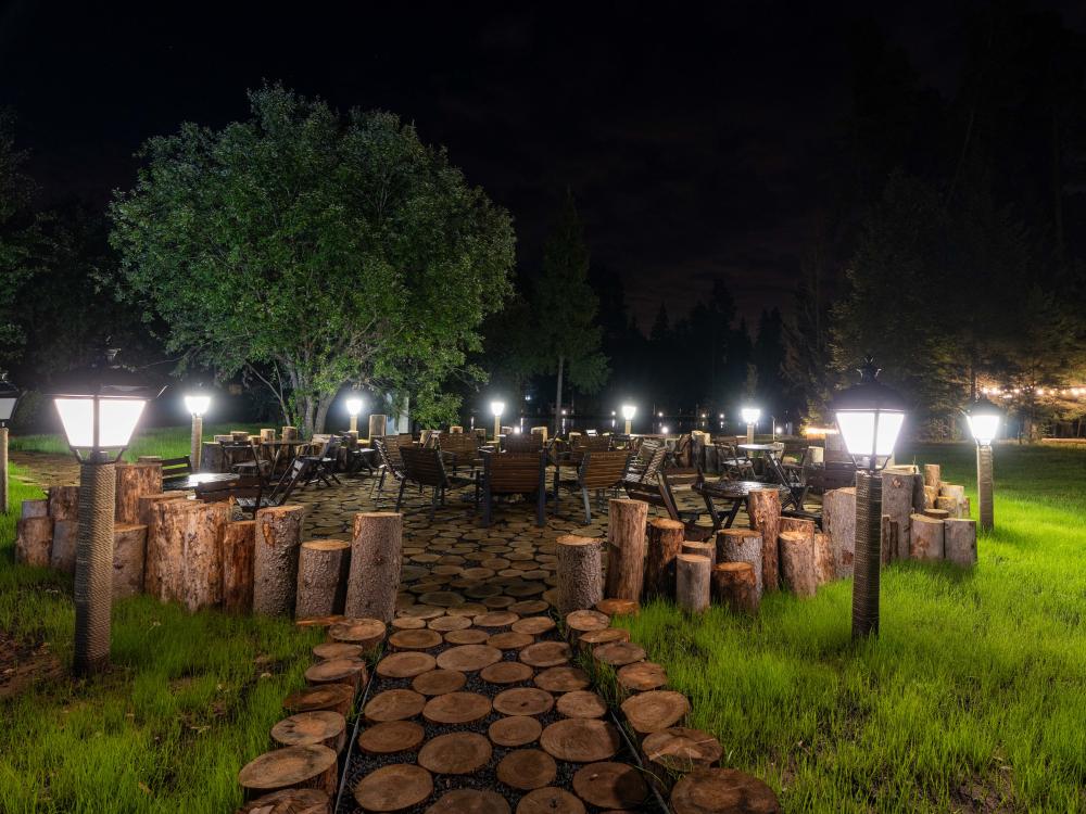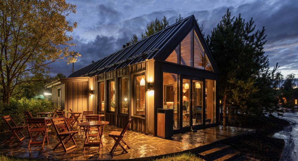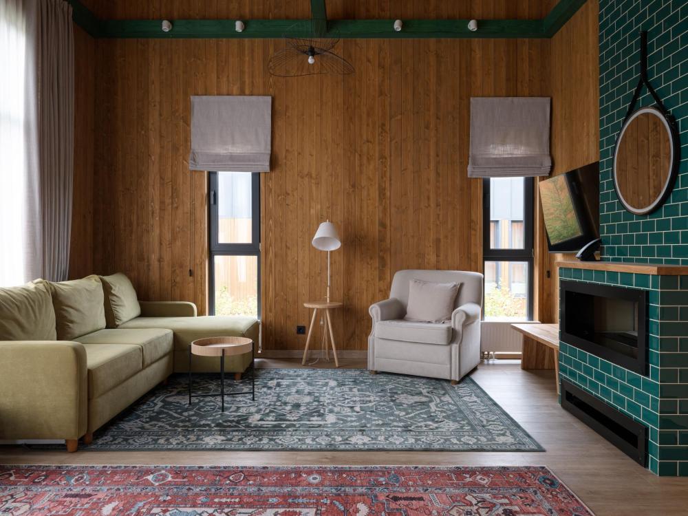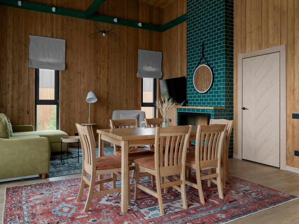 Просторный одноэтажный дом с двумя спальнями, каждая из которых оформлена в индивидуальном стиле. В центре дома — уютная гостиная с панорамными окнами, наполняющими пространство естественным светом и открывающими живописный вид на окружающий ландшафт. Атмосферу тепла и уюта дополняет современный биокамин: живое пламя без лишних хлопот становится стильным и функциональным элементом интерьера. Гостиная словно приглашает собраться всей семьёй за большим обеденным столом — в окружении света, тепла и спокойствия. В распоряжении гостей — кровати на выбор с анатомическими матрасами, а также меню подушек для индивидуального комфорта. Для приятного начала дня или уютного вечера в номере есть всё необходимое для приготовления чая и кофе.