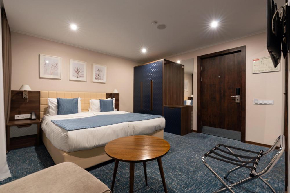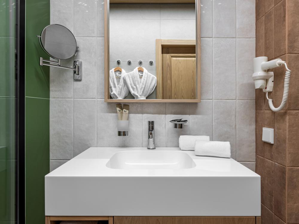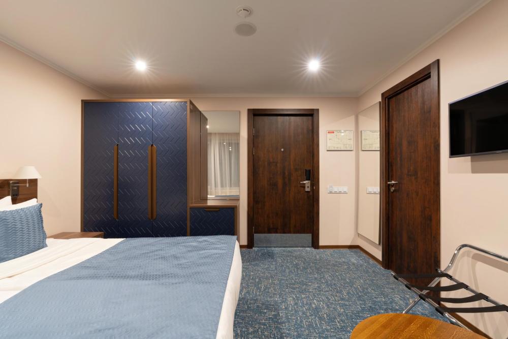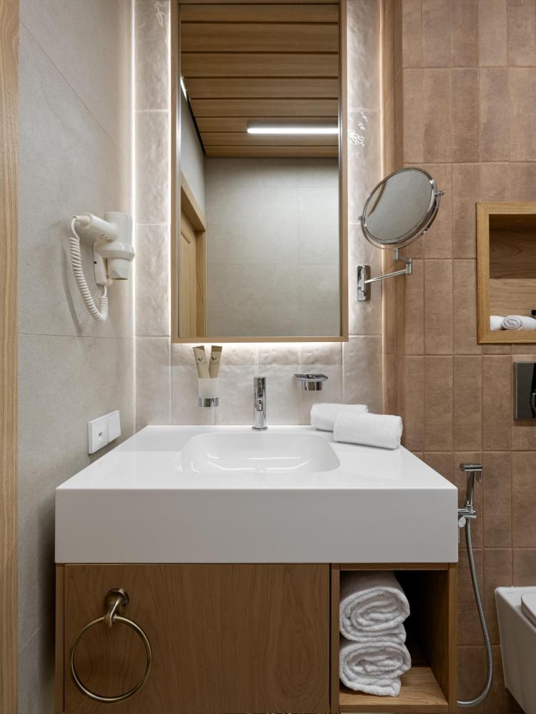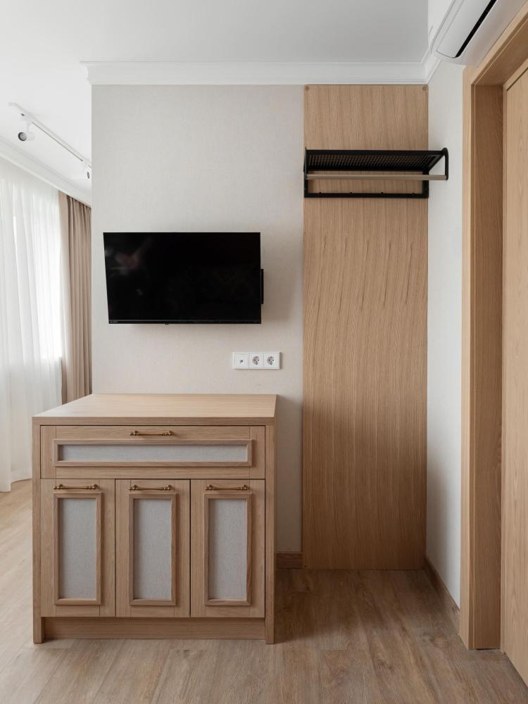 Уютный и функциональный номер, спроектированный с особым вниманием к комфорту и свободе передвижения. Пространство продумано до мелочей: широкие проходы обеспечивают легкость перемещения, а эргономичная мебель и современная сантехника учитывают потребности гостей с ограниченными возможностями. Каждая деталь интерьера направлена на то, чтобы сделать пребывание максимально удобным и безопасным. В распоряжении гостей — кровати на выбор с анатомическими матрасами, а также меню подушек для индивидуального комфорта. Для приятного начала дня или уютного вечера в номере есть всё необходимое для приготовления чая и кофе.
