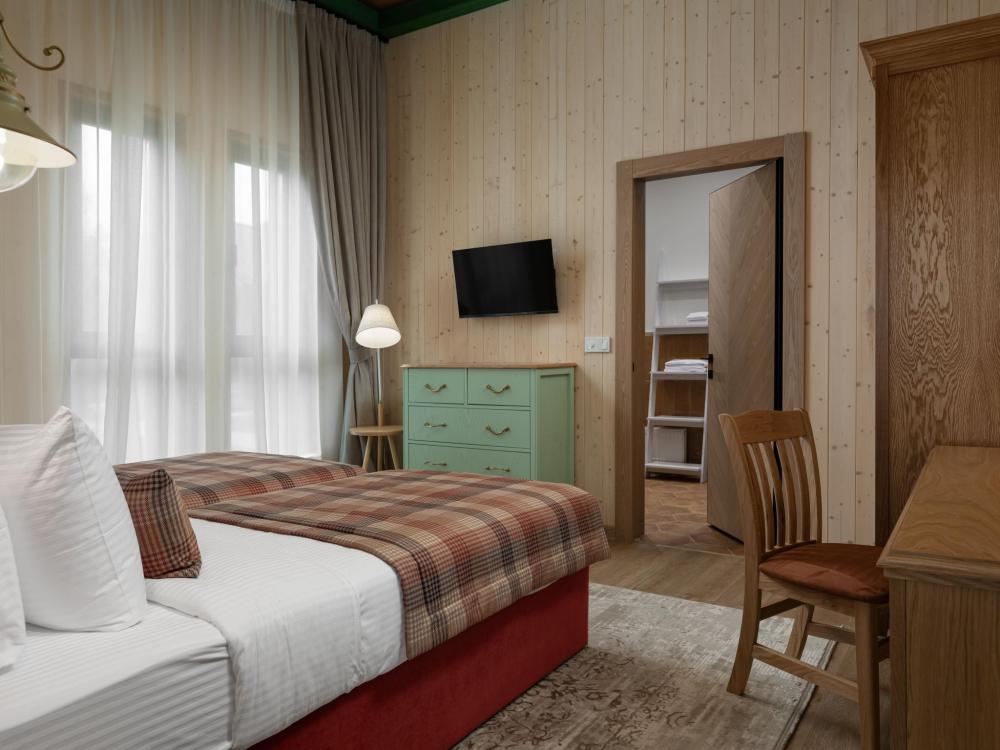 Уютные однокомнатные номера для двухместного и трехместного размещения. Некоторые номера могут быть объединены в «коннект» с соседними номерами «люкс», что позволит комфортно разместиться семьям от 4 до 6 человек.